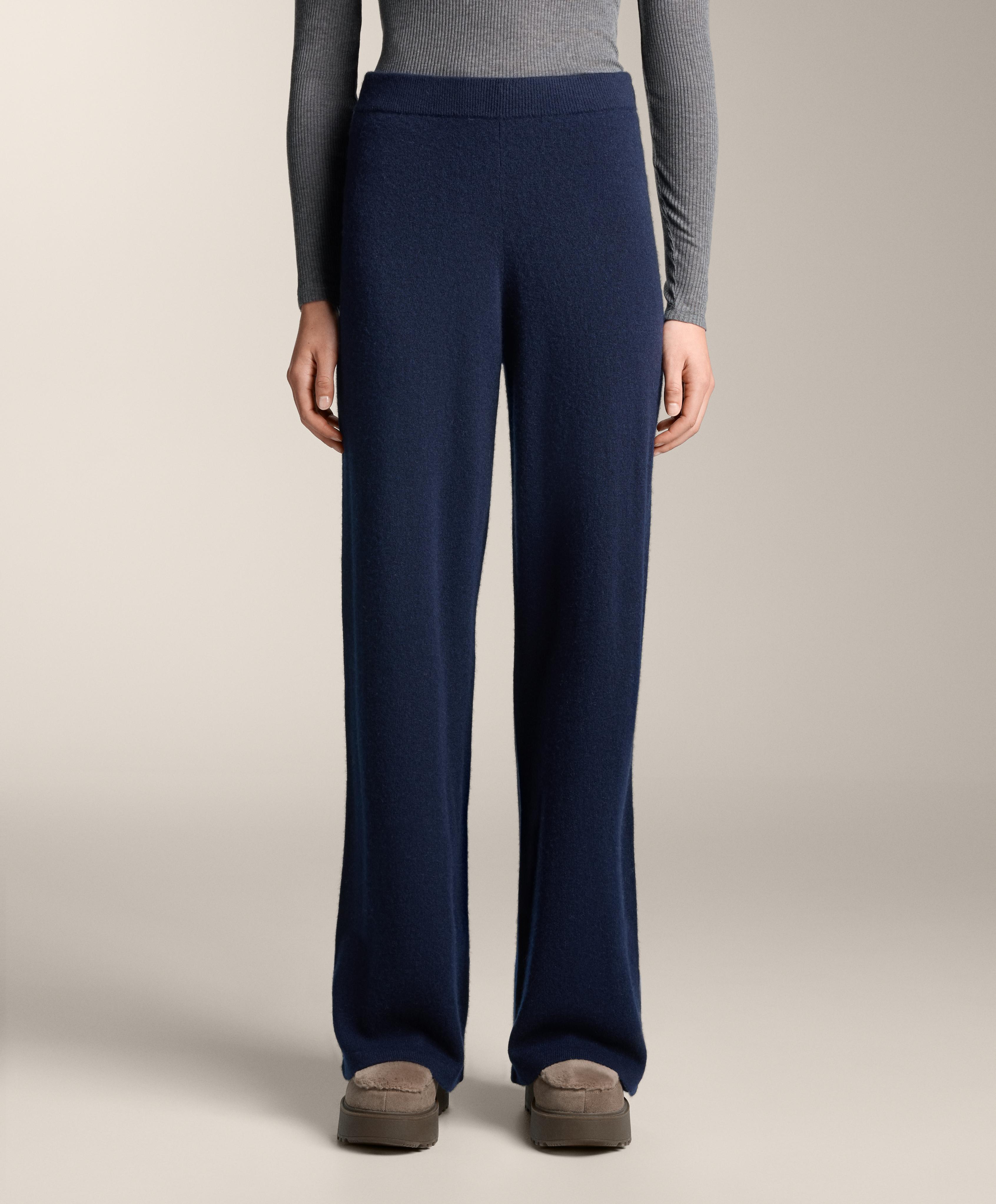 OYSHO Брюки прямого кроя из 100% кашемира, темно-синий