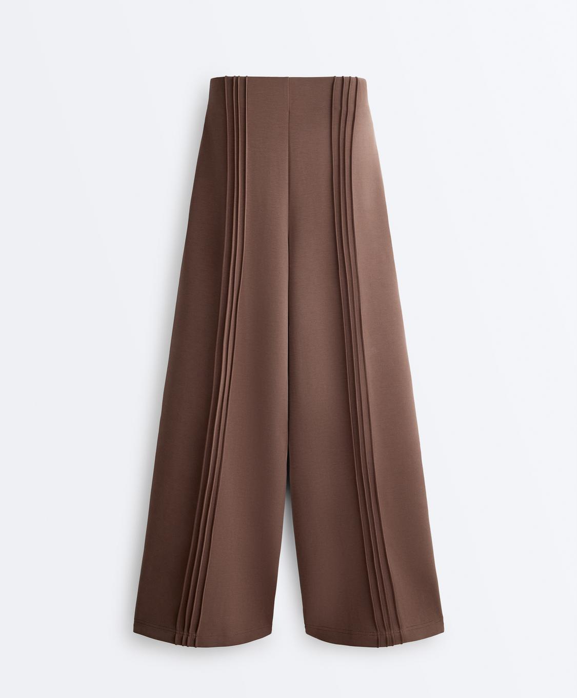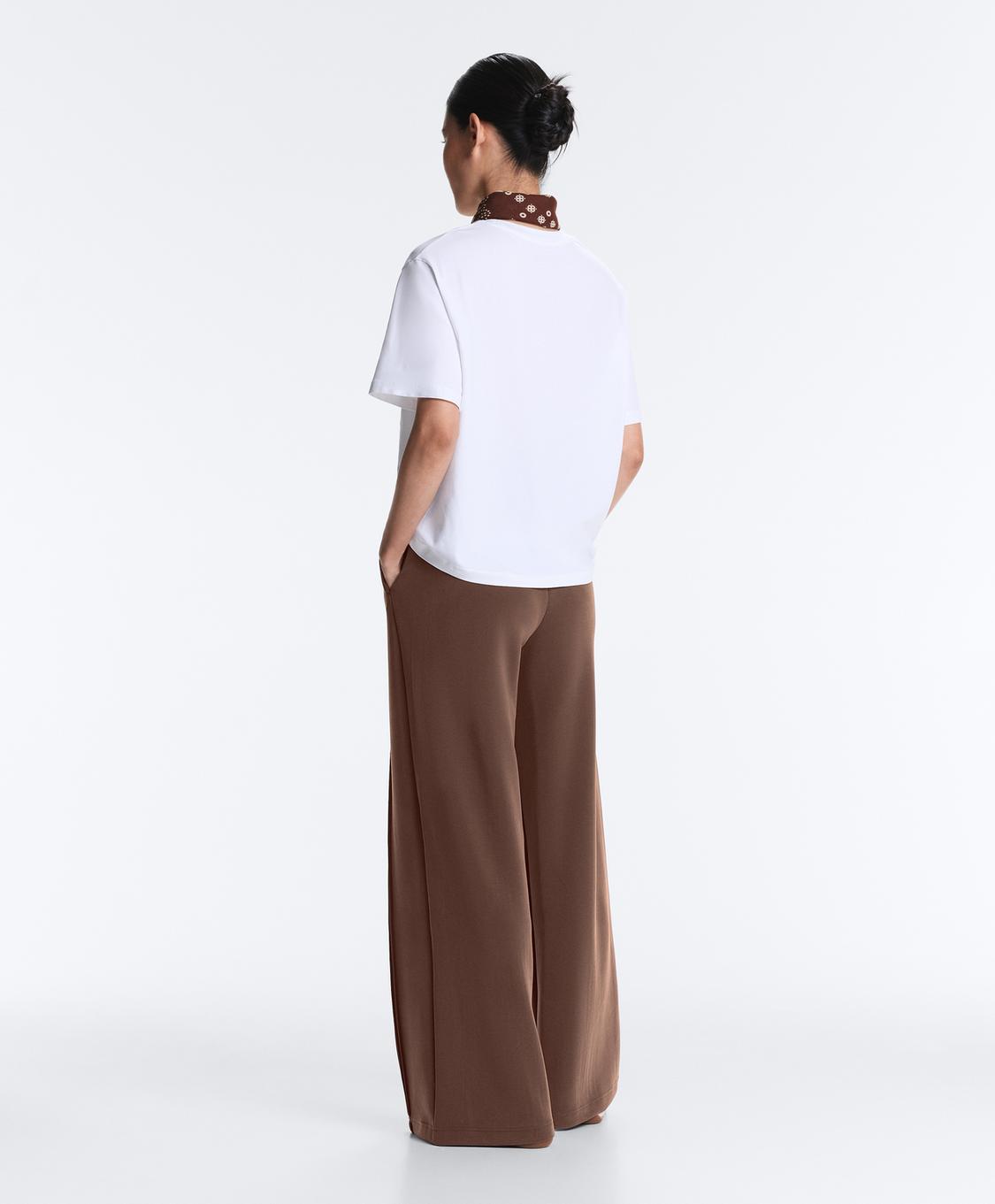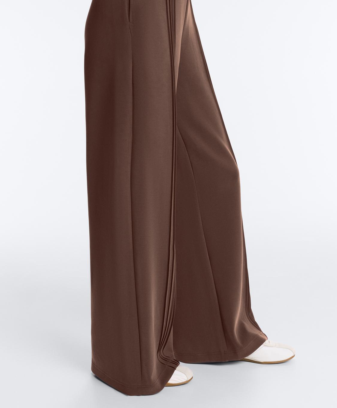 Oysho Брюки прямого кроя из мягкого модала с кантом, коричневый