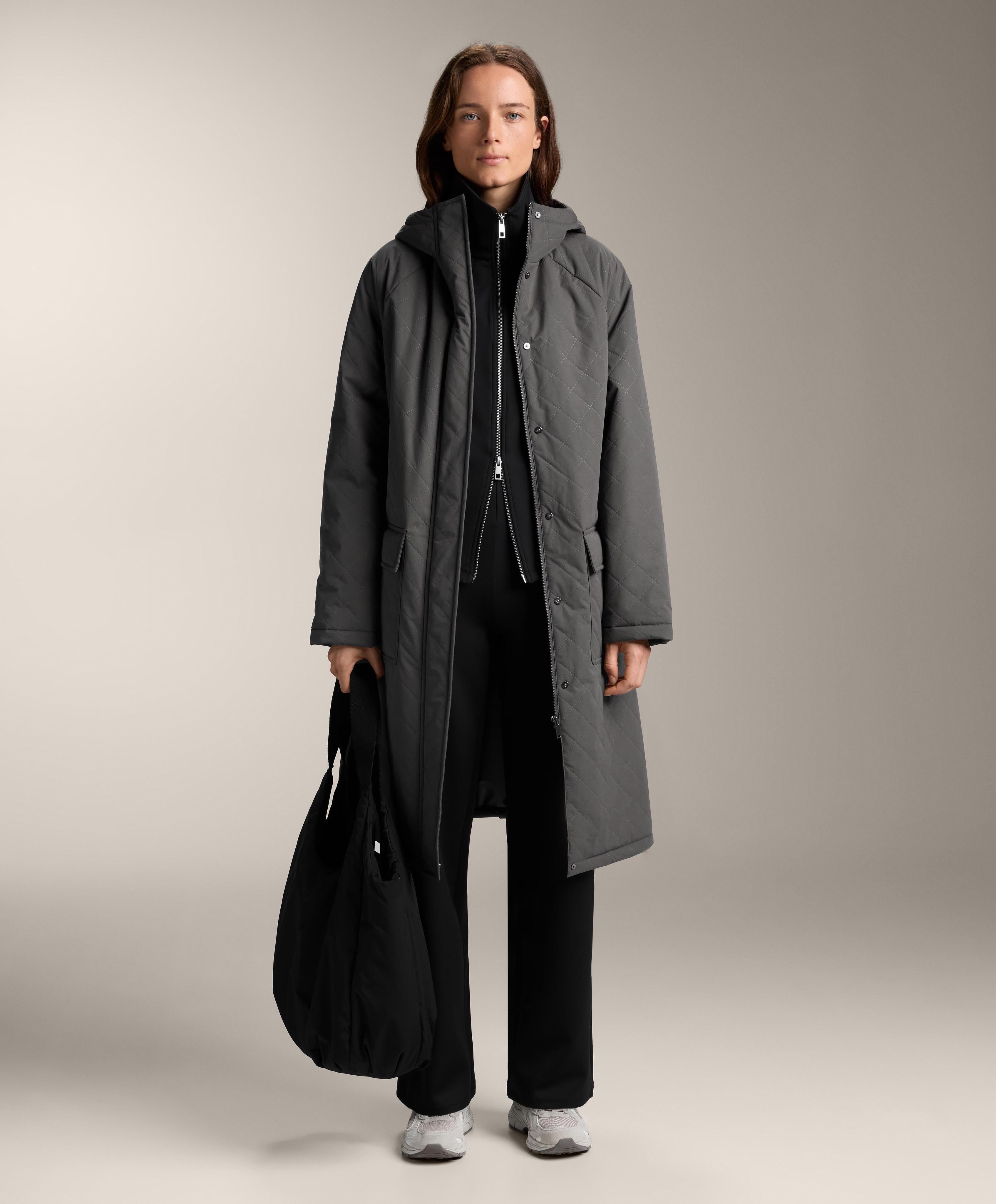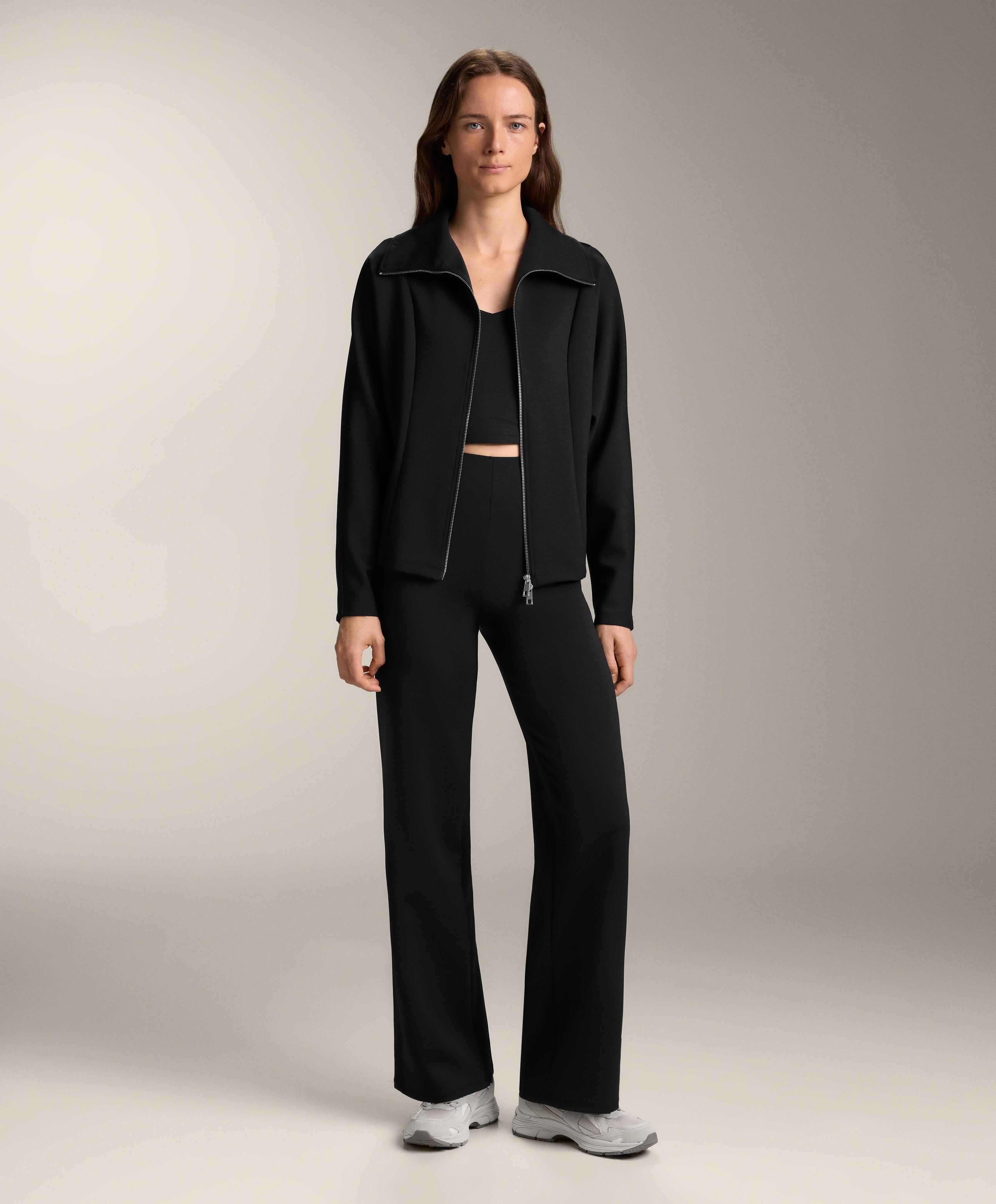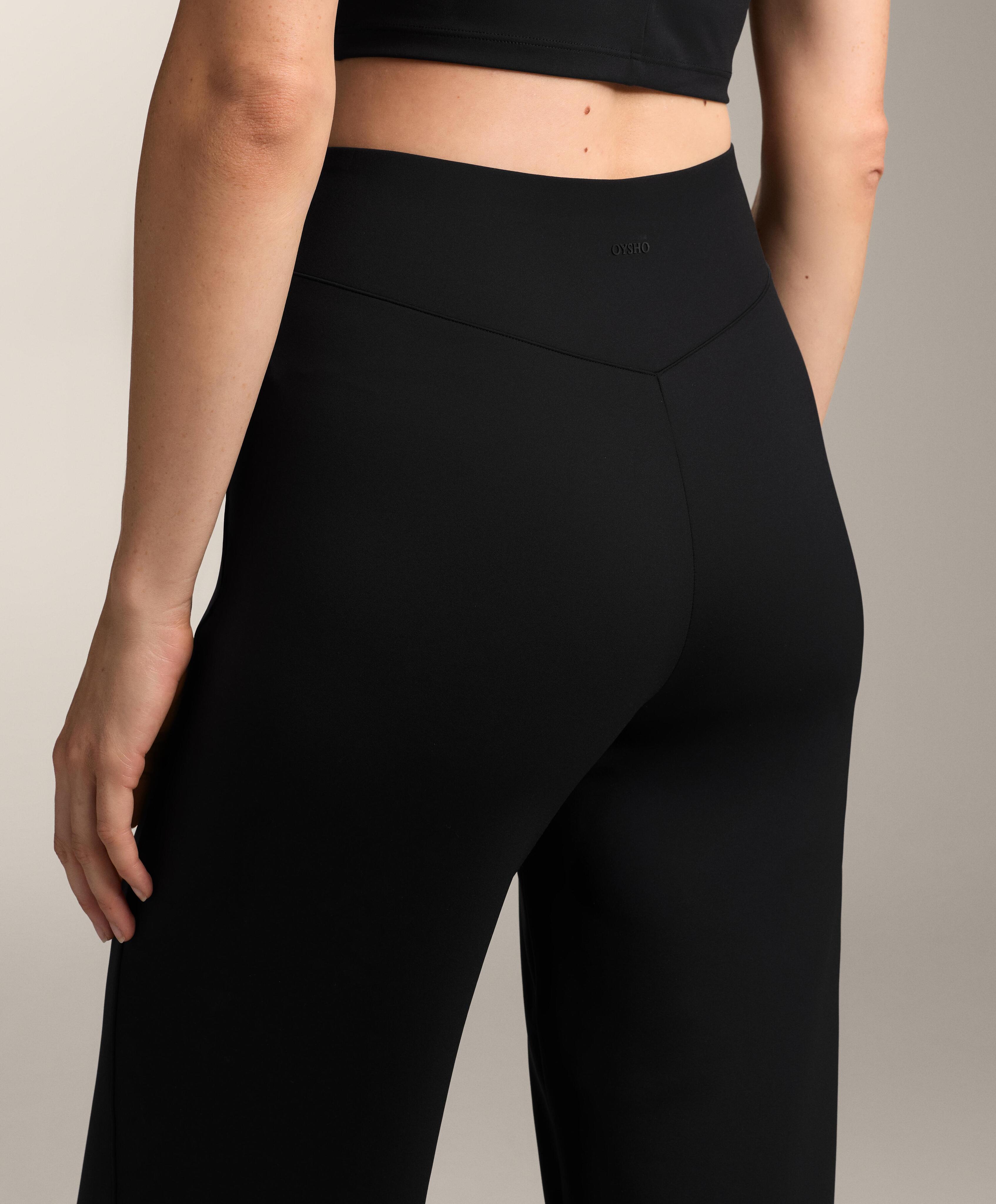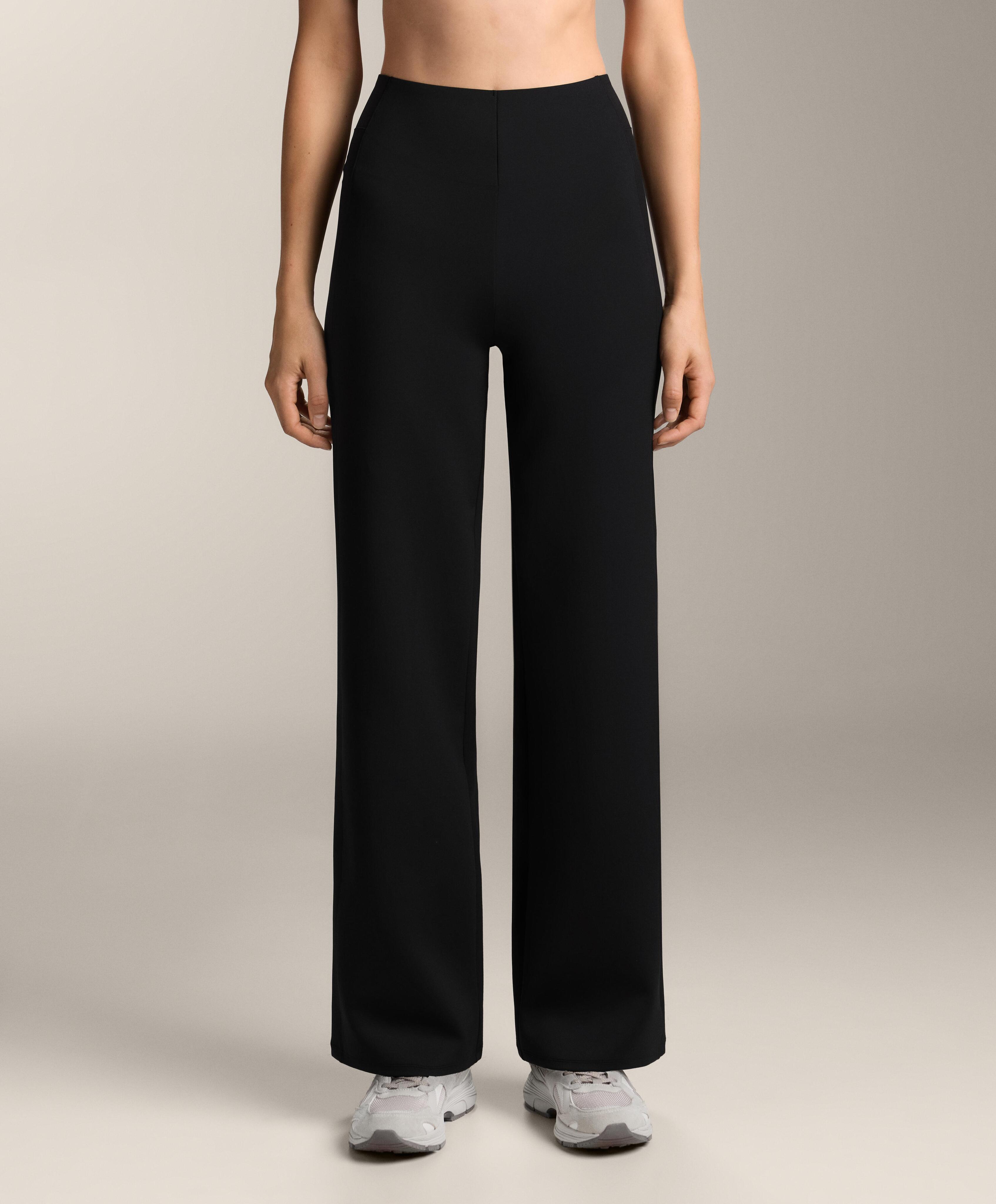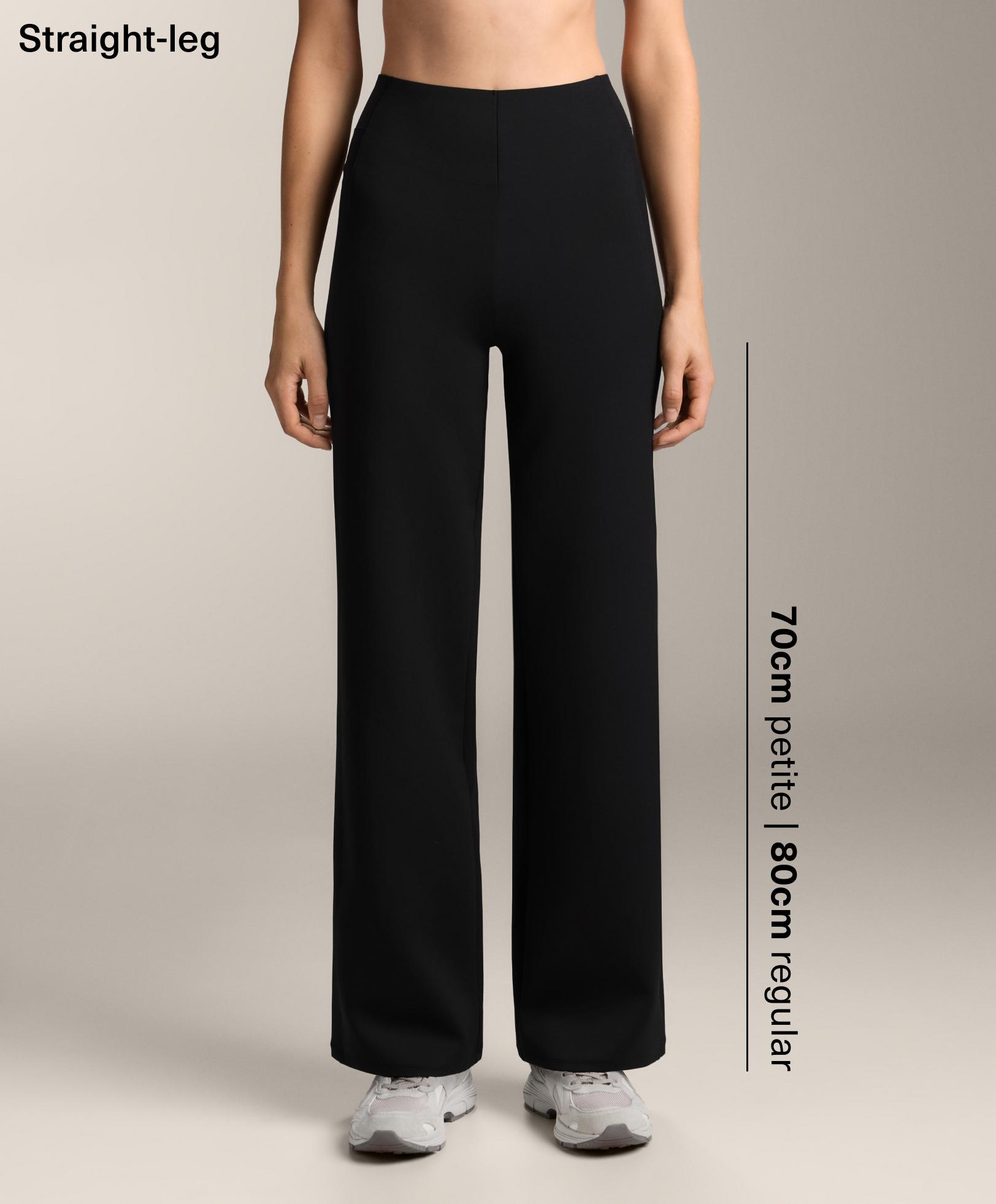 Прямые брюки с высокой талией и эффектом неопрена. Дышащая, высокопрочная ткань.