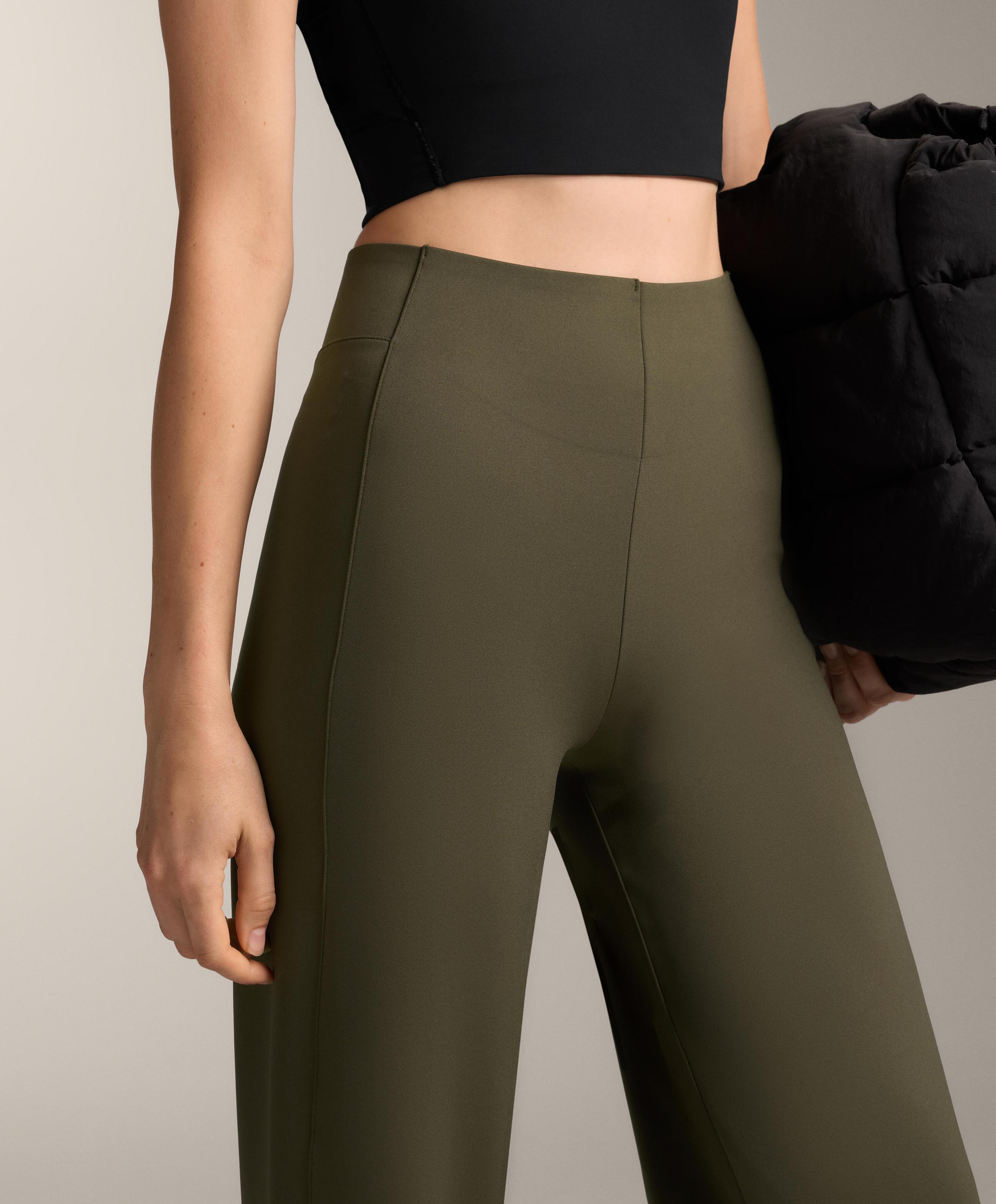 Прямые брюки с высокой талией и эффектом неопрена. Дышащая, высокопрочная ткань.