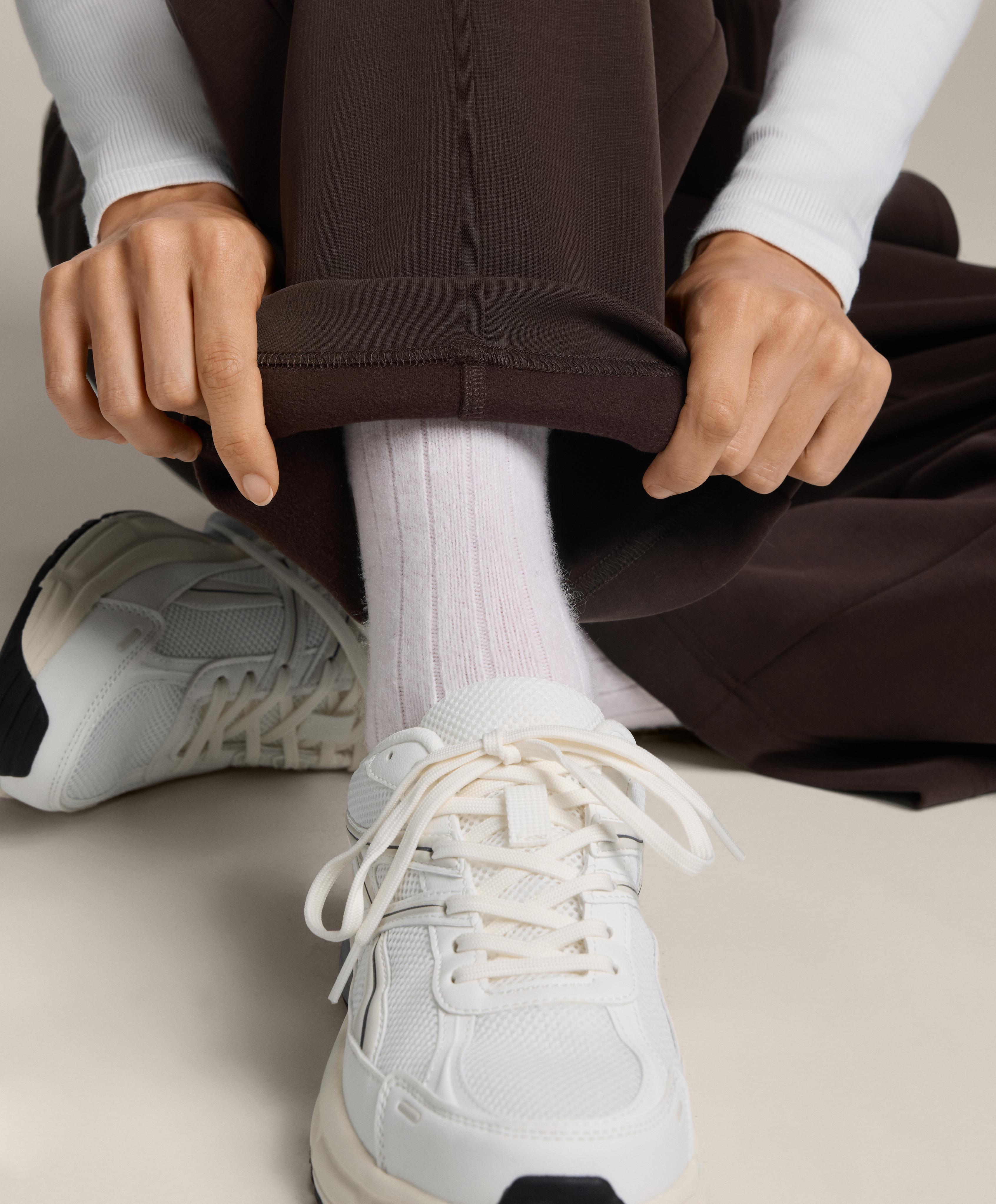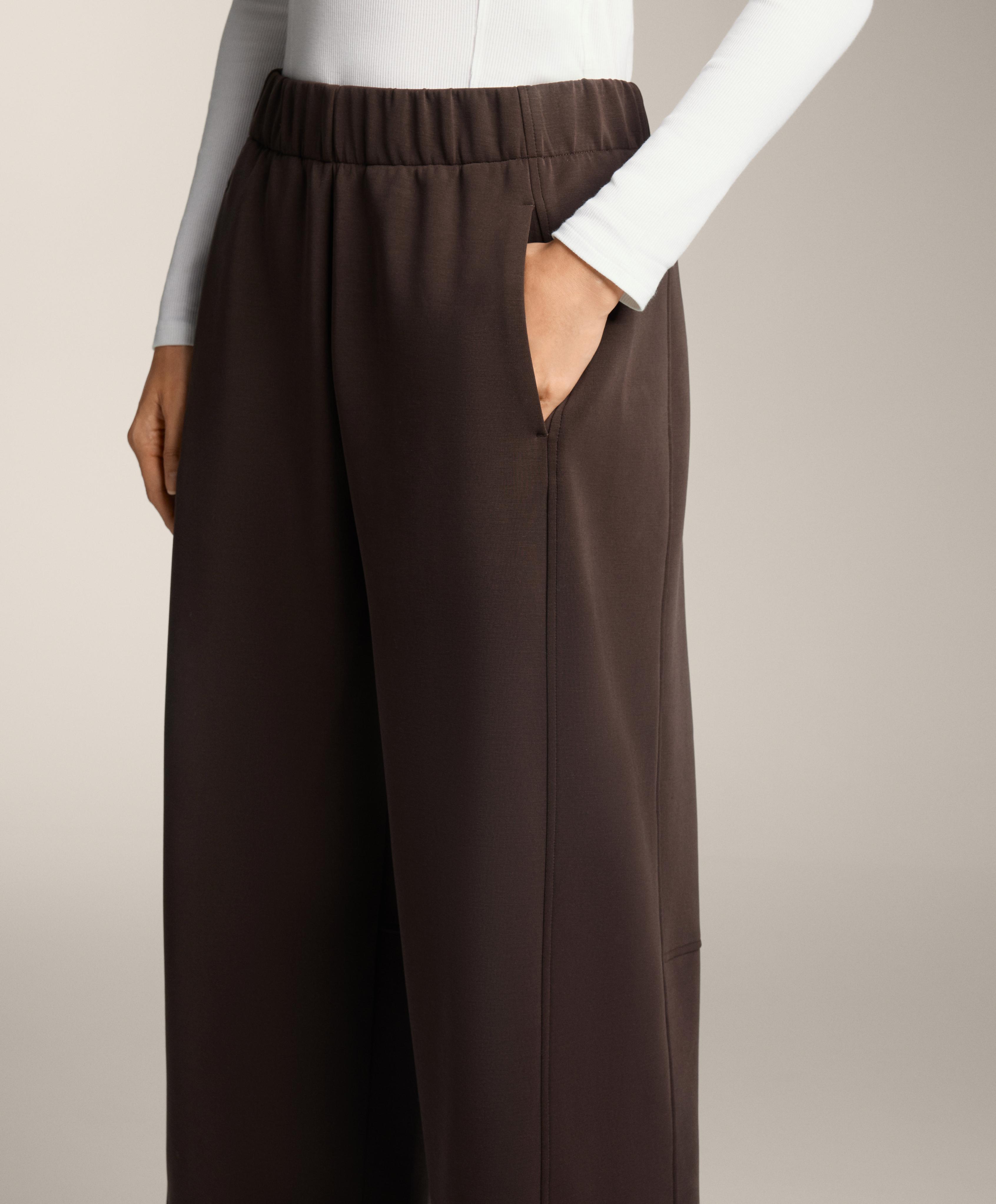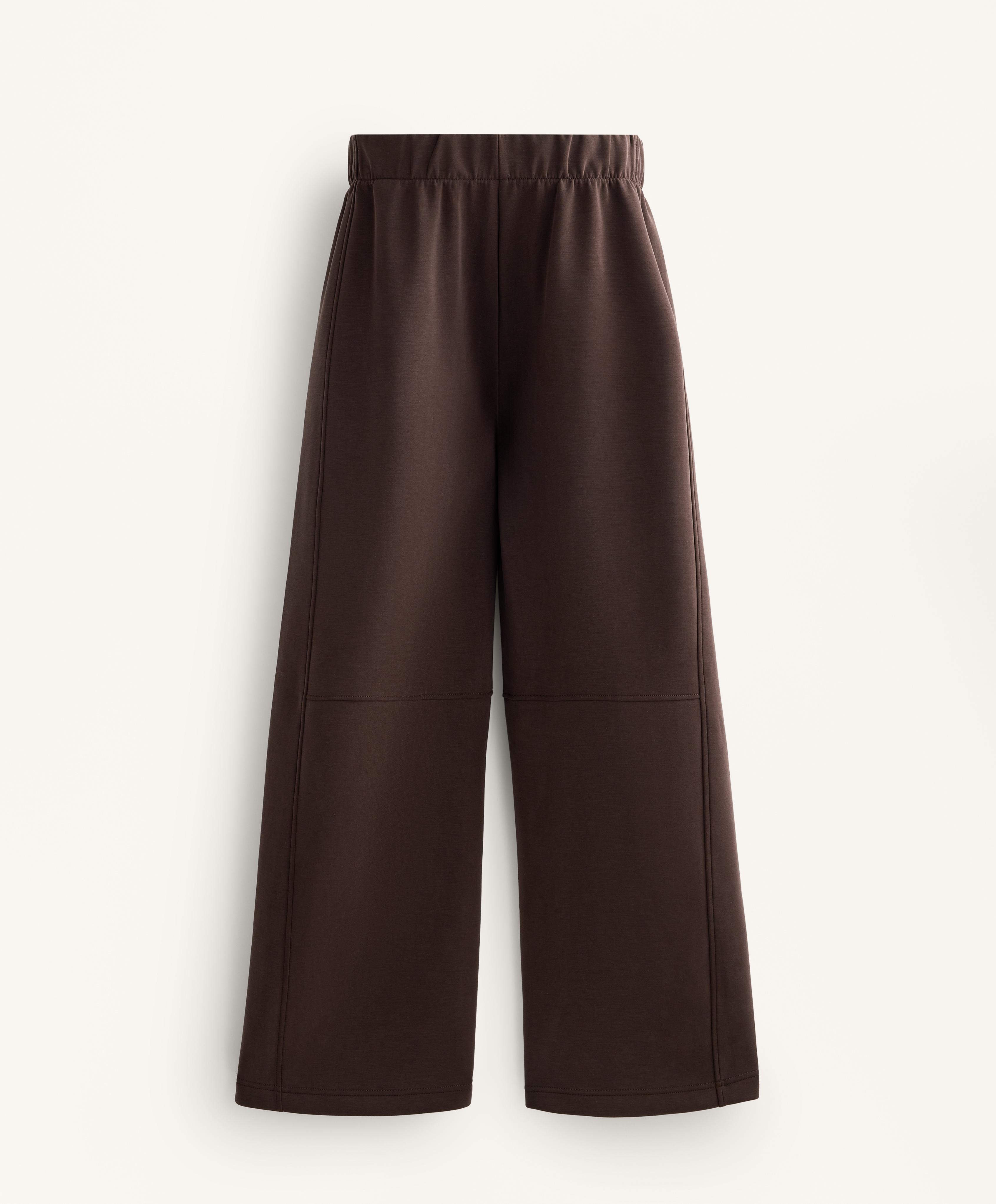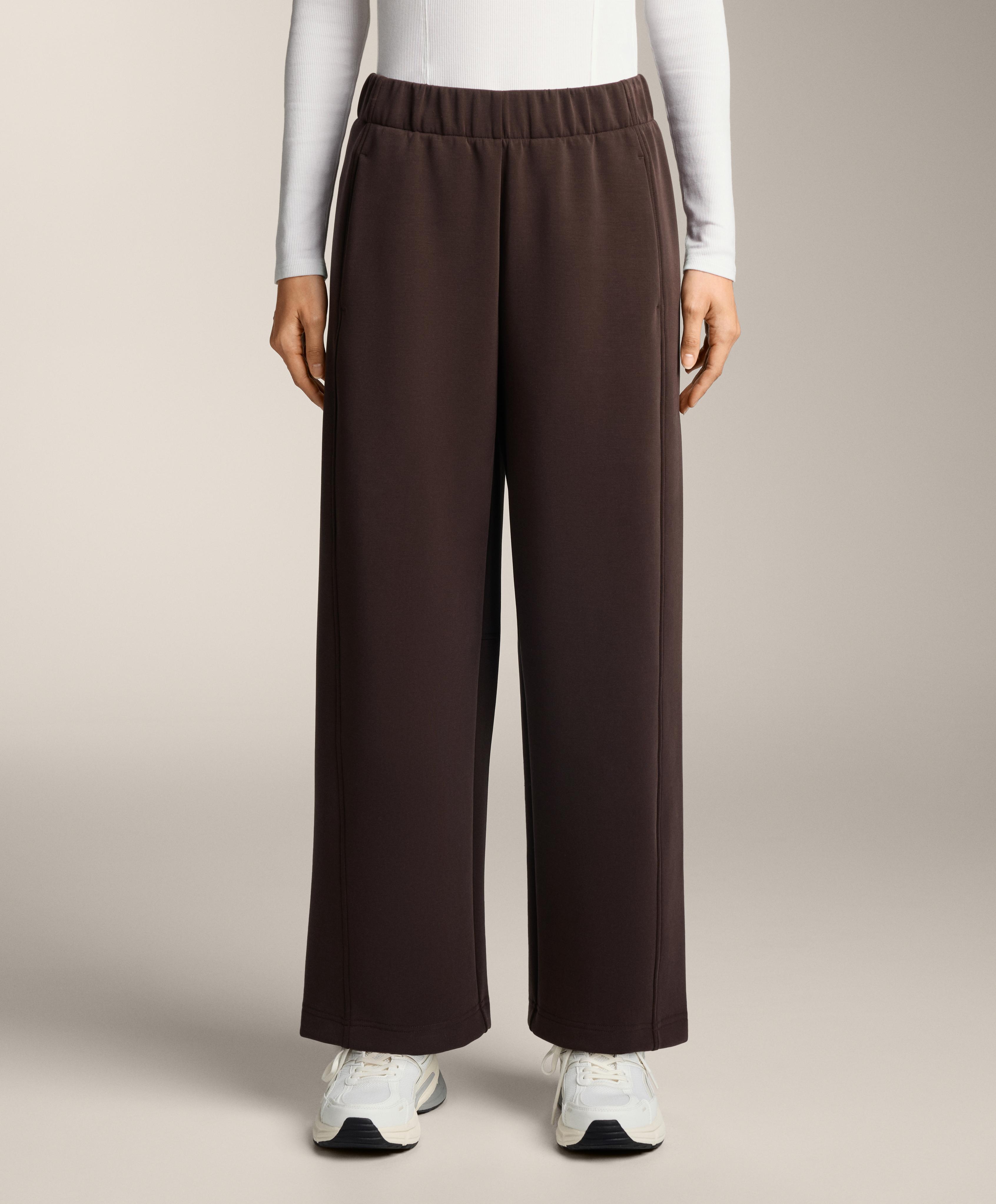 Длинные прямые брюки с регулируемой резинкой на талии и передними карманами. Дышащая ткань на основе модала с начесом внутри.