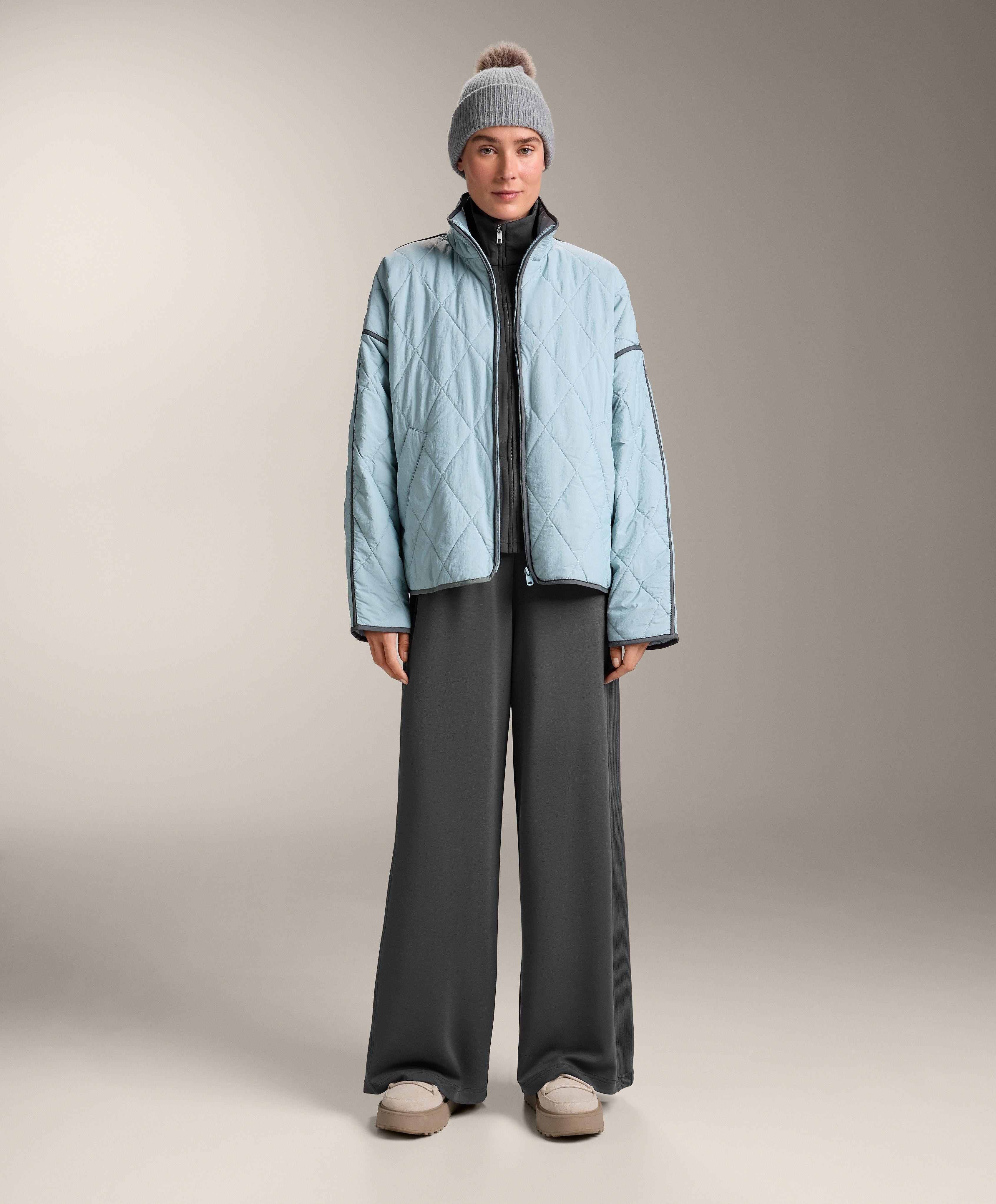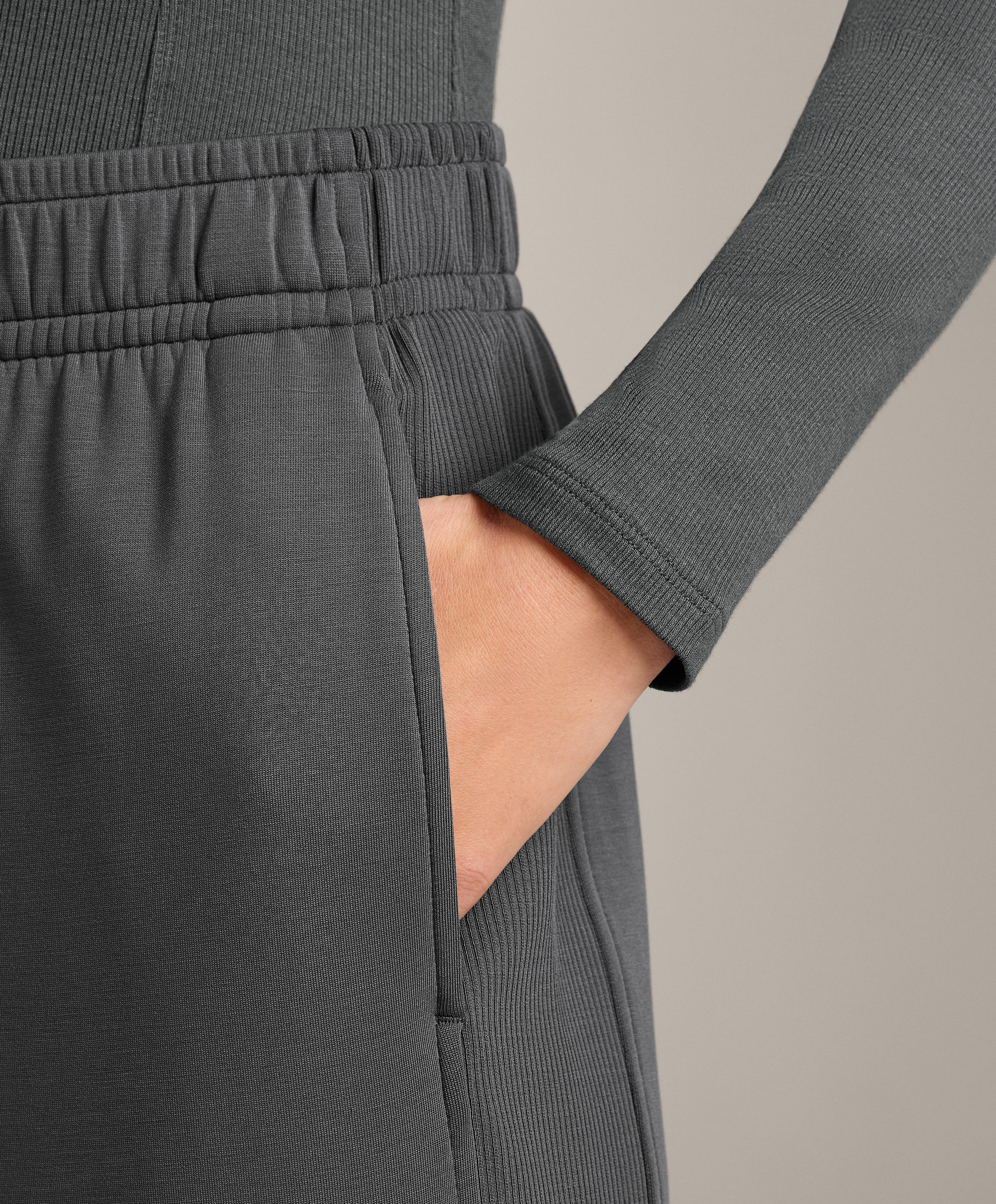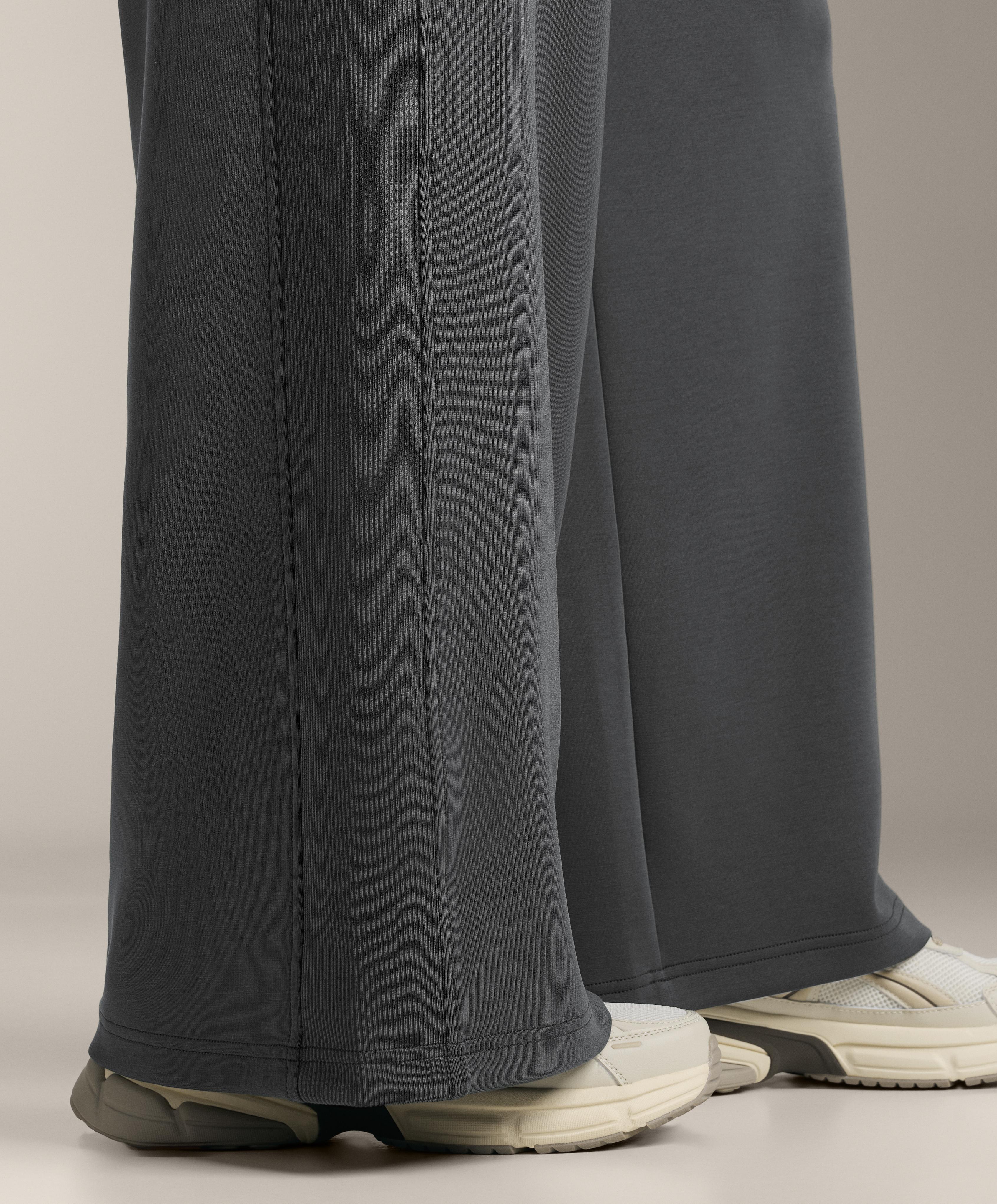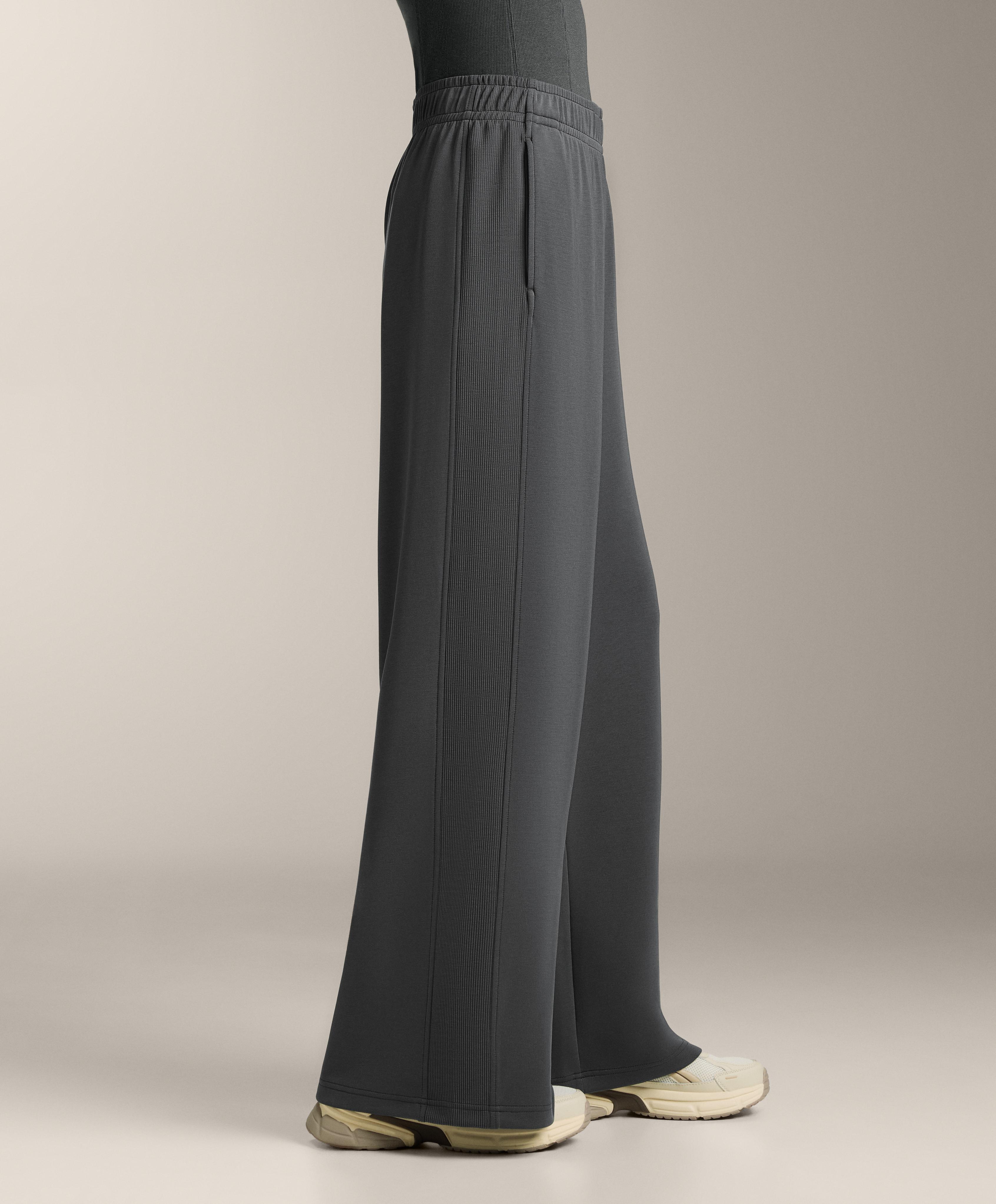 Широкие прямые брюки с ребристой отделкой по бокам. Регулируемый эластичный пояс и передние карманы. Дышащая ткань из модала, очень мягкая на ощупь.