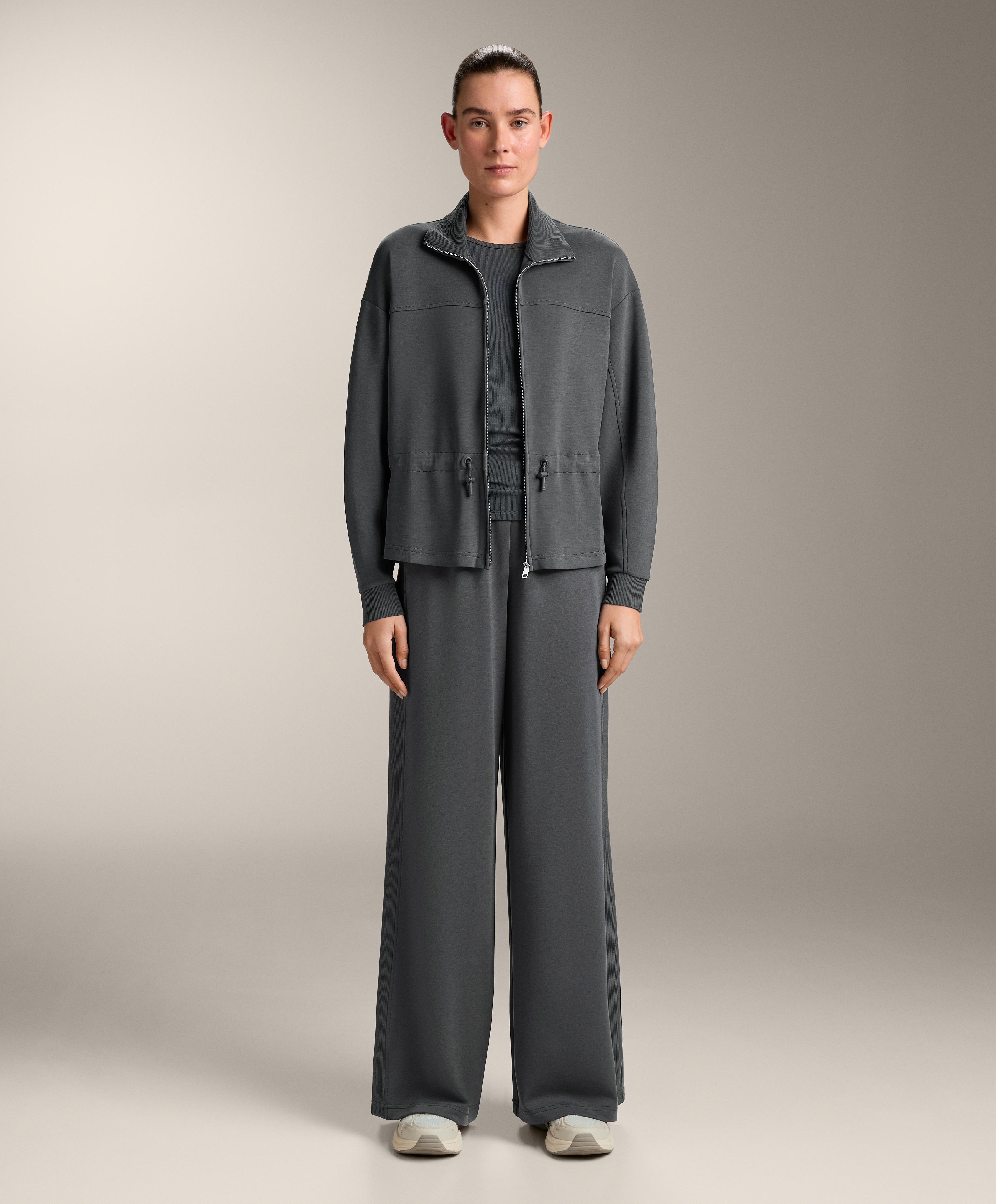 OYSHO Брюки прямого кроя с ребристой отделкой и модала, асфальтовый