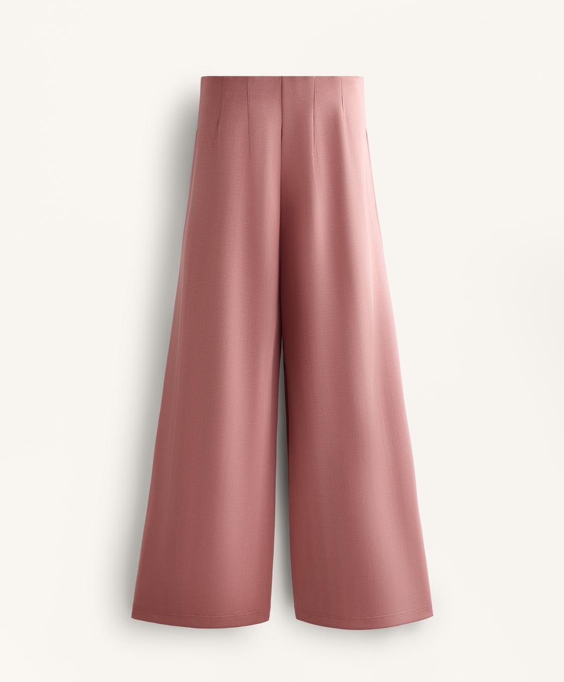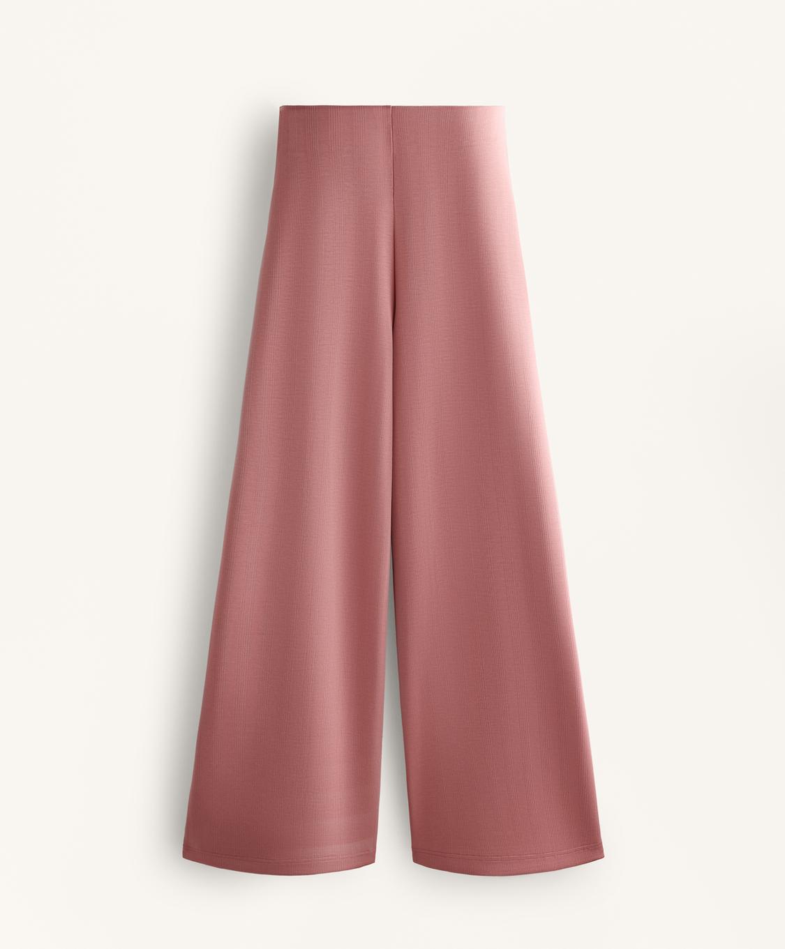 Широкие брюки с высокой посадкой, эластичным поясом и передними карманами. Украшены едва заметными вертикальными полосками.