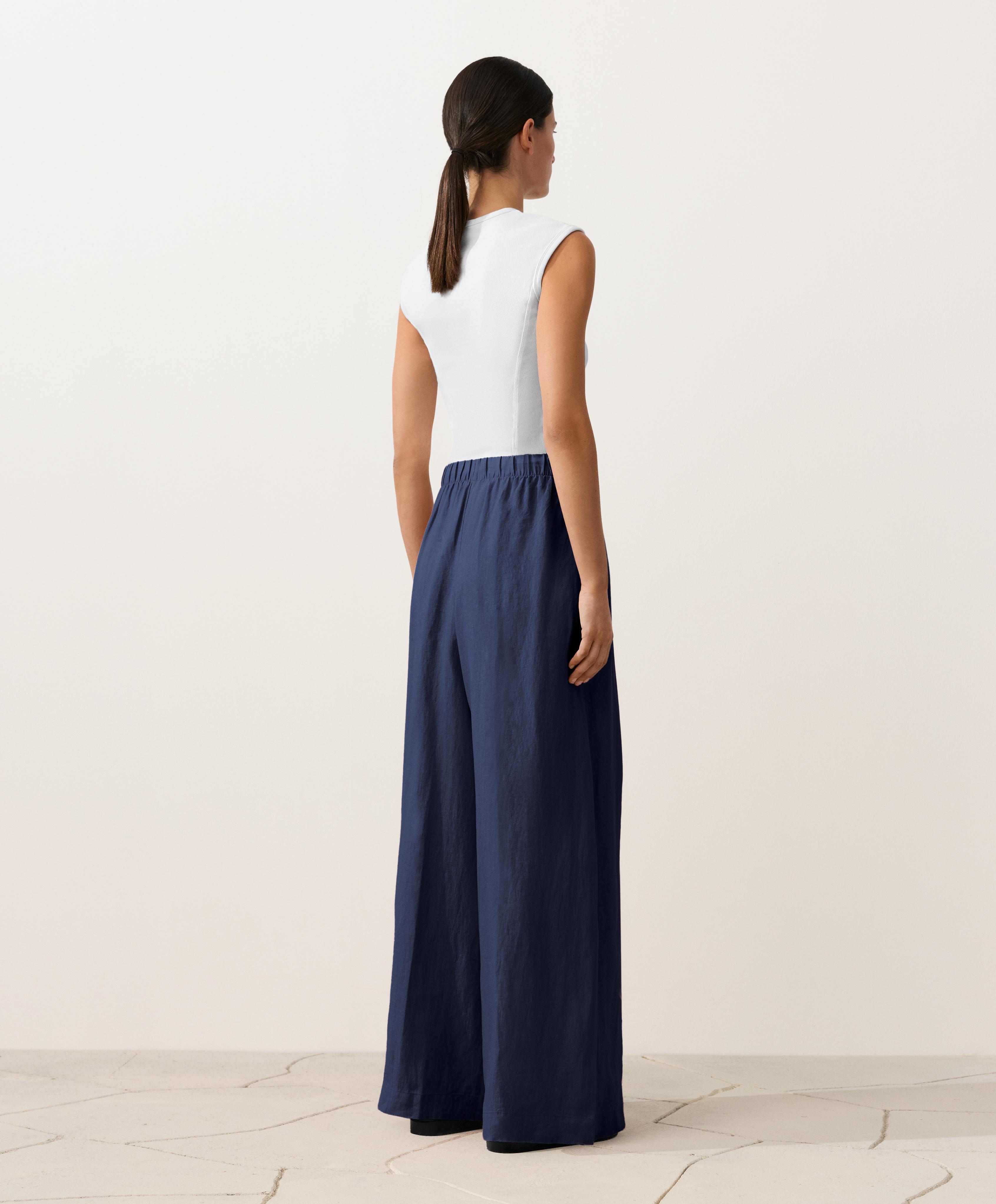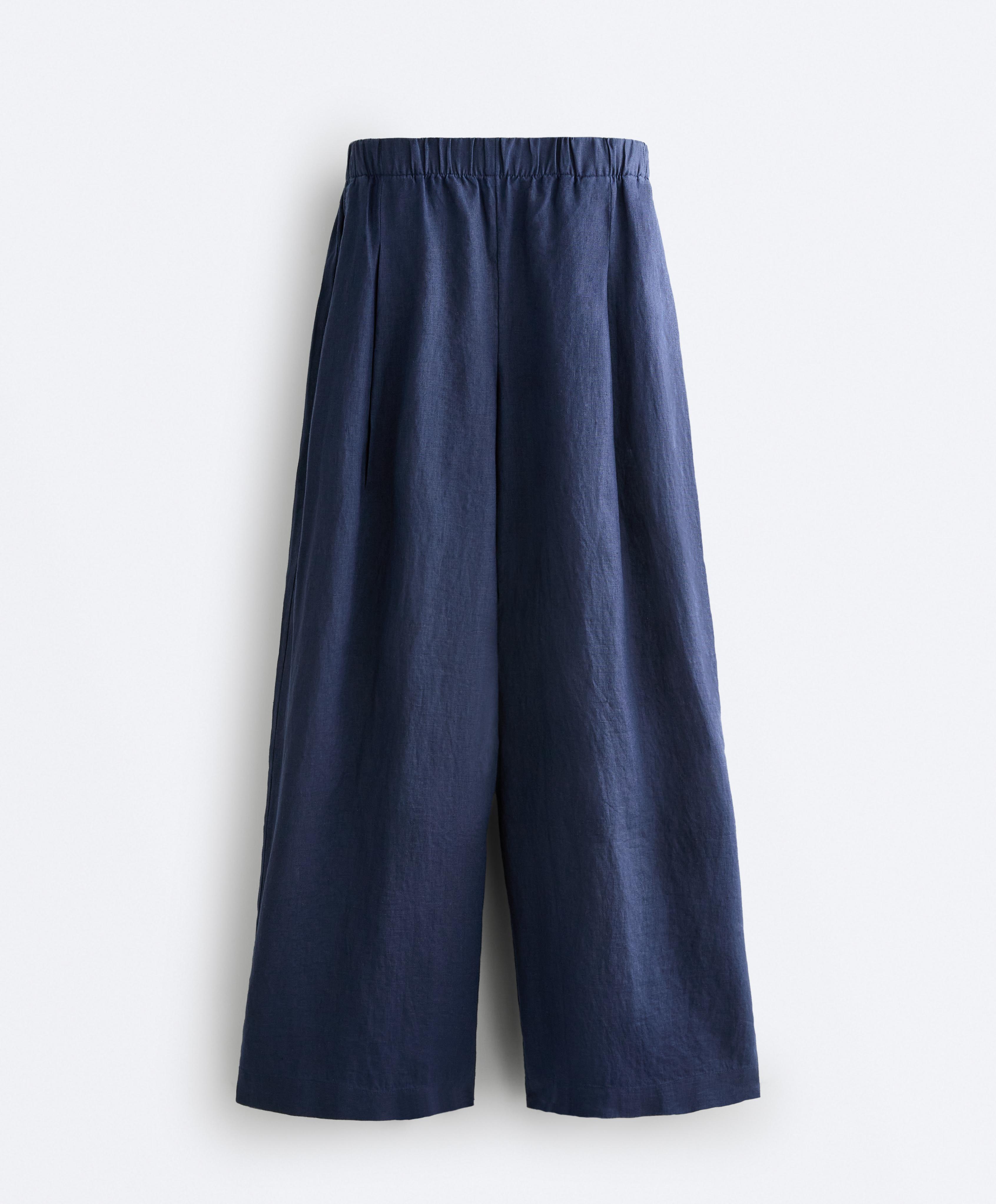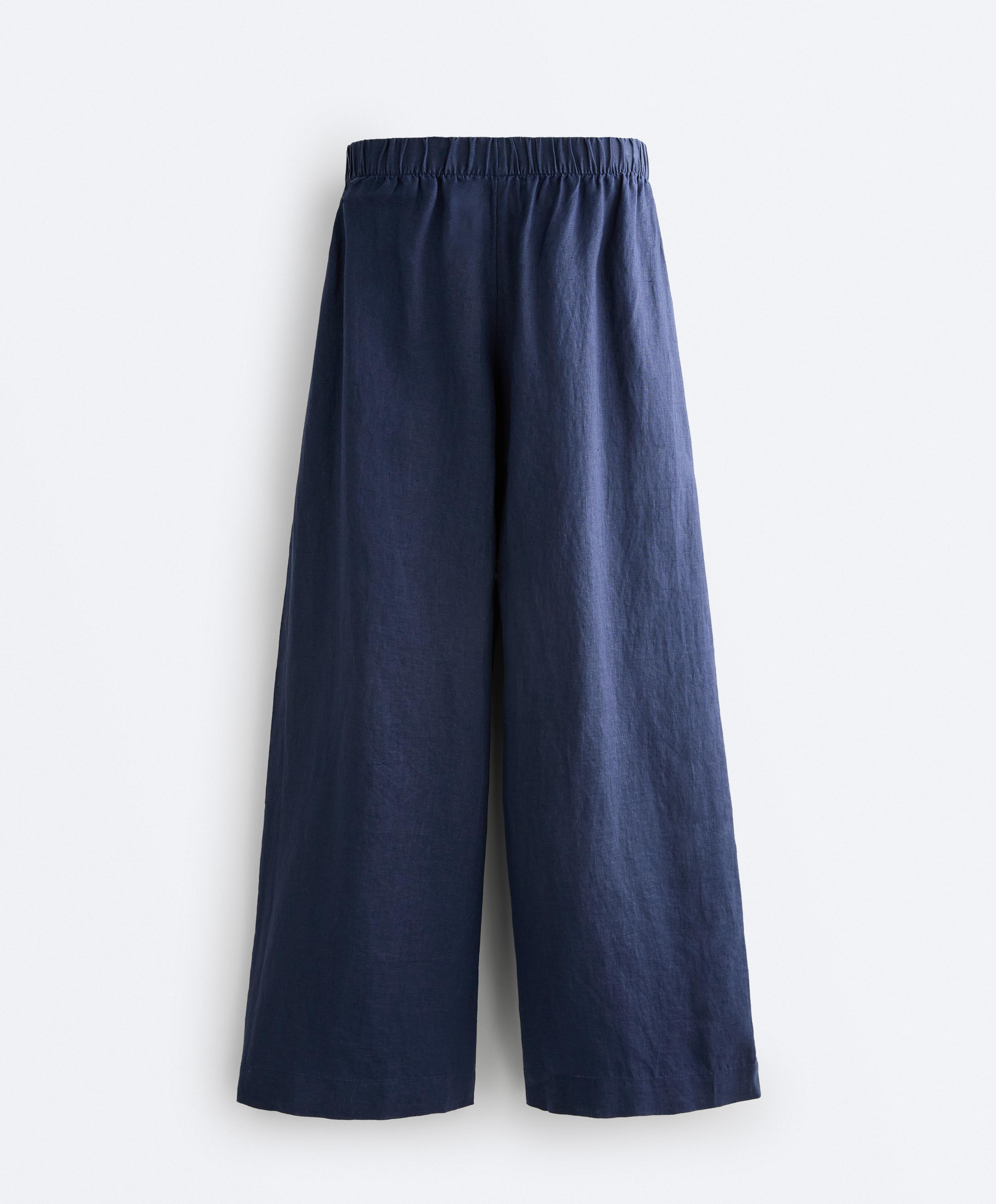 Широкие брюки с регулируемым эластичным поясом. Ткань: 100% лён.