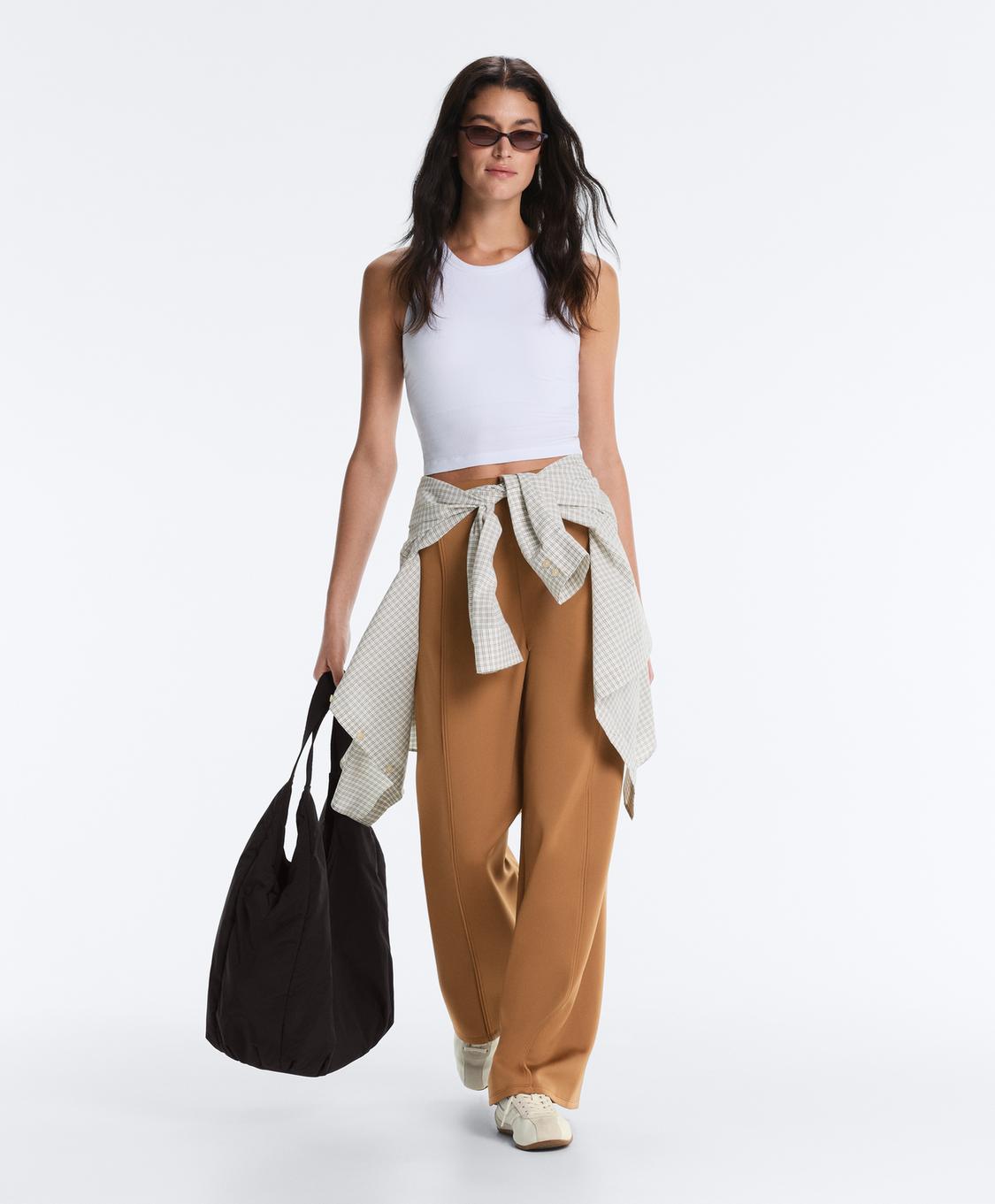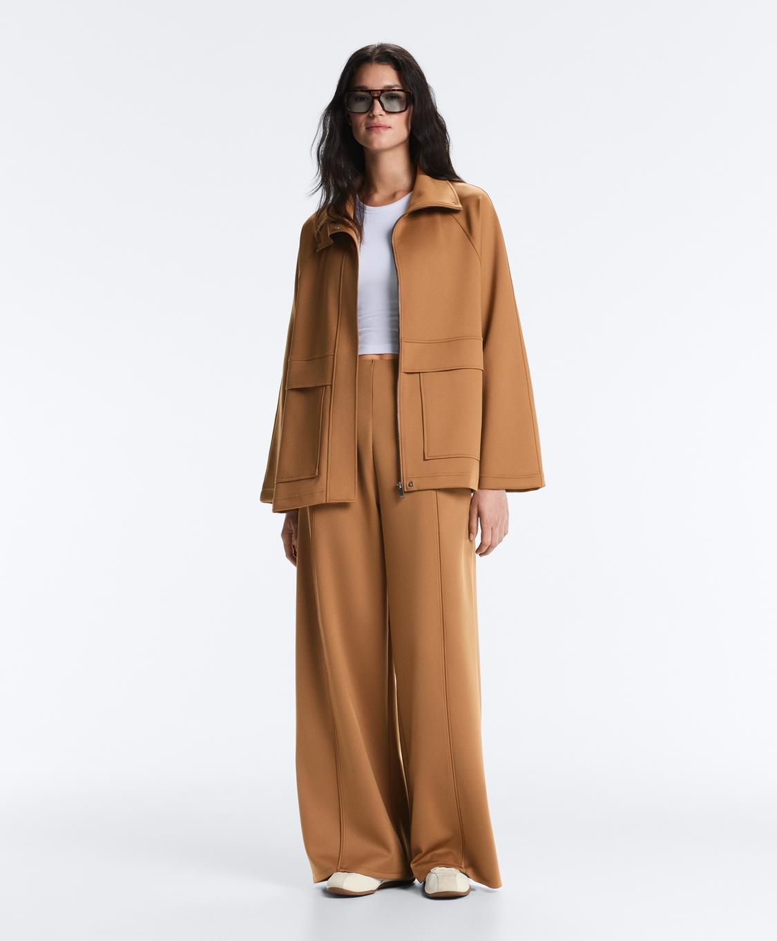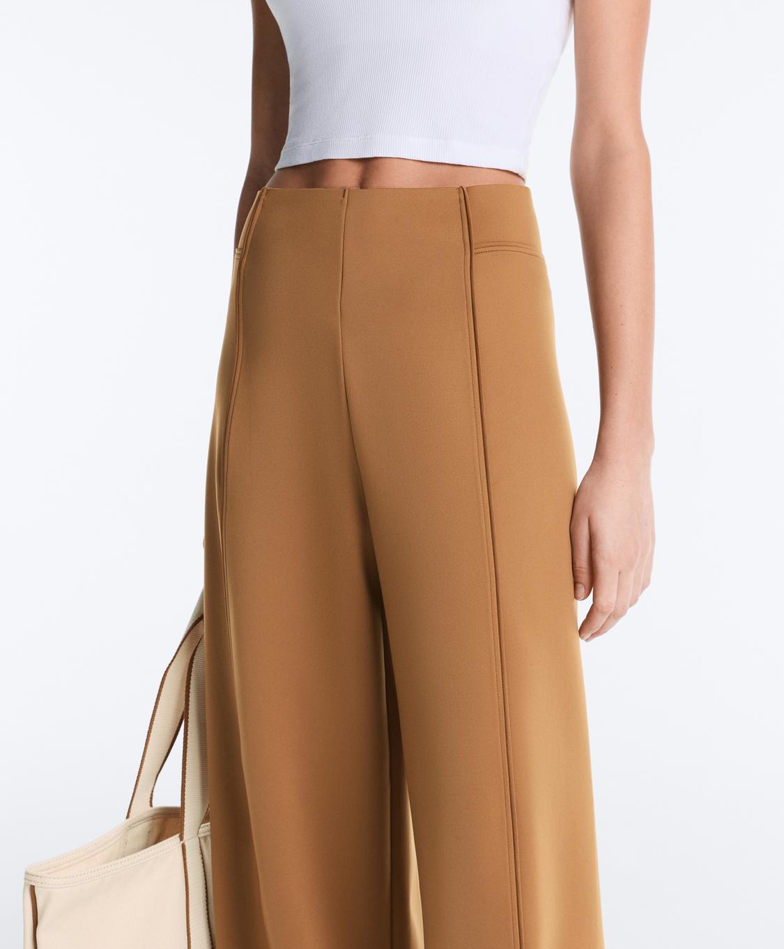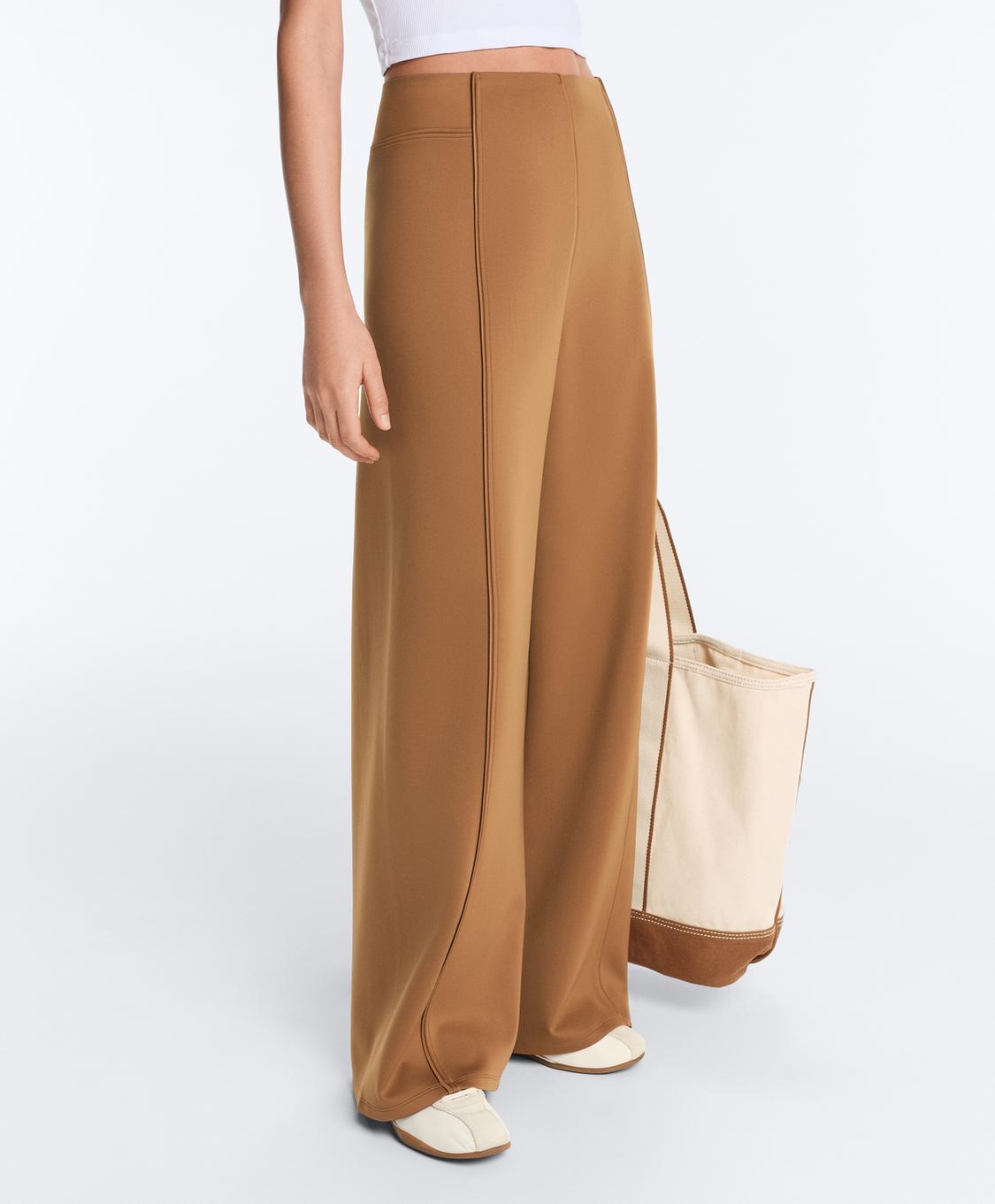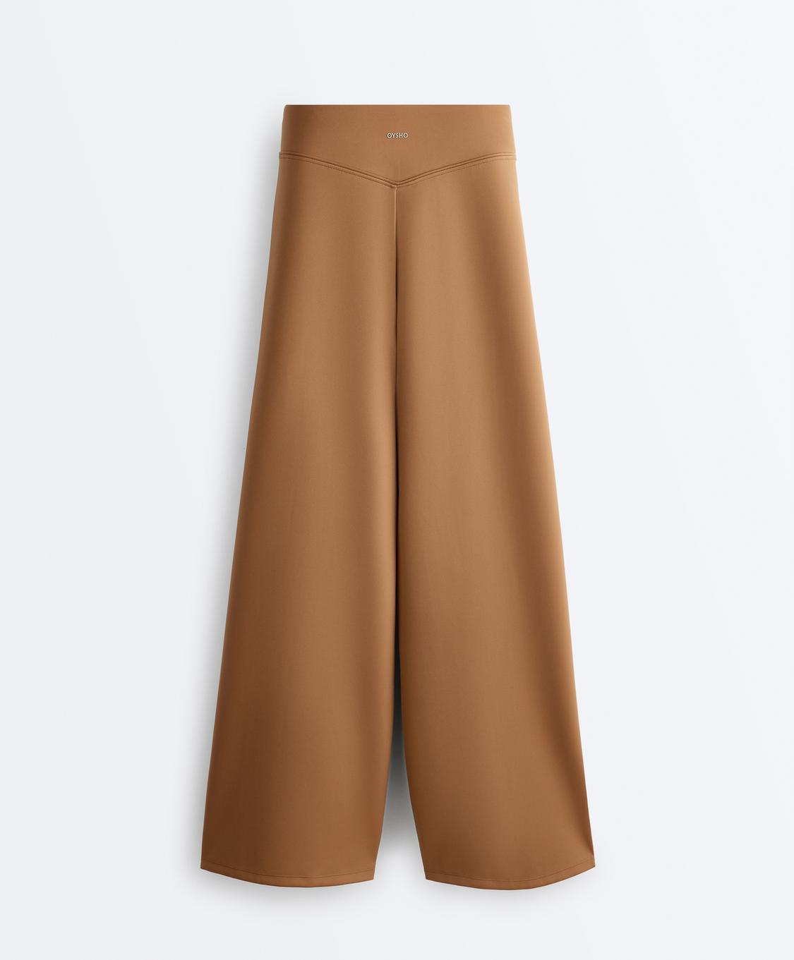 OYSHO Брюки с высокой посадкой и широкими штанинами с эффектом неопрена, светло-коричневый