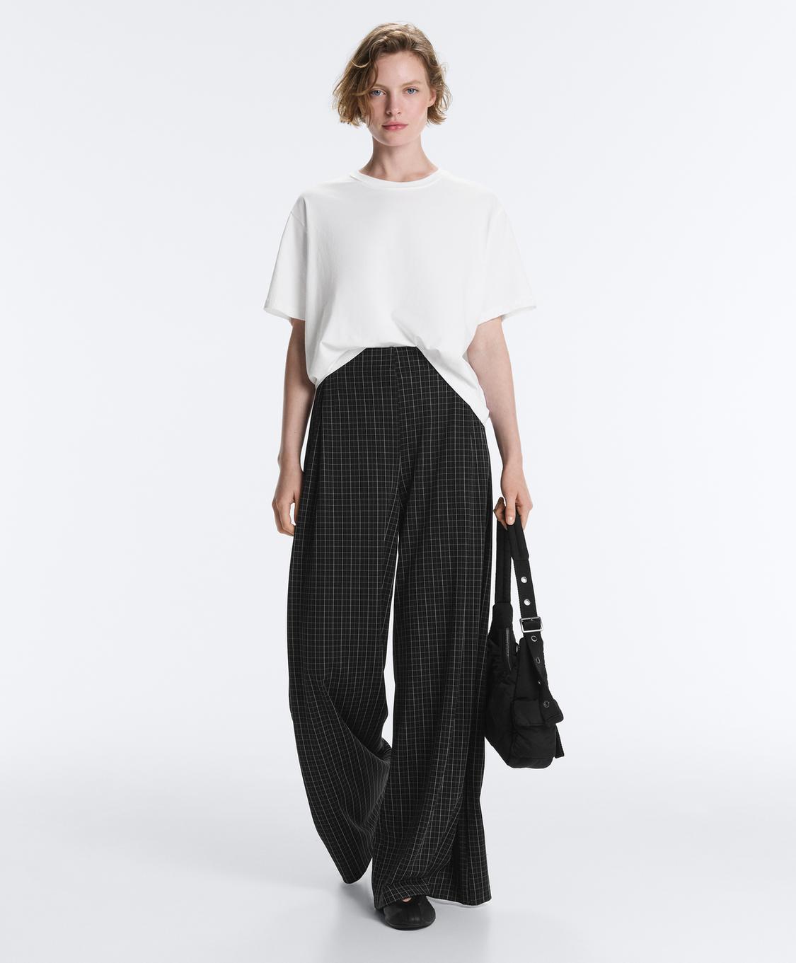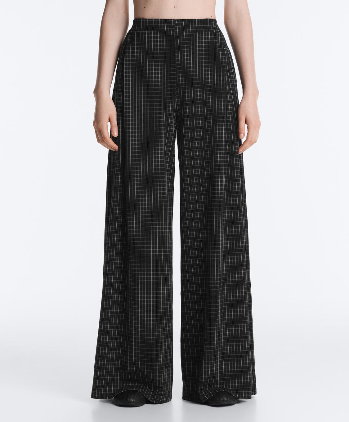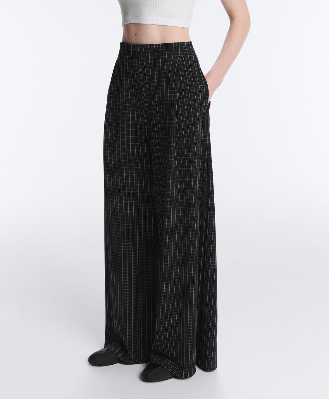 Oysho Брюки в клетку с широкими штанинами, черный