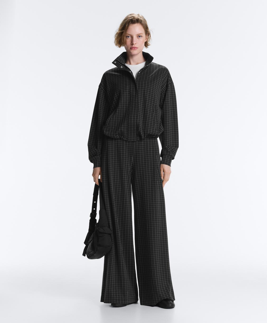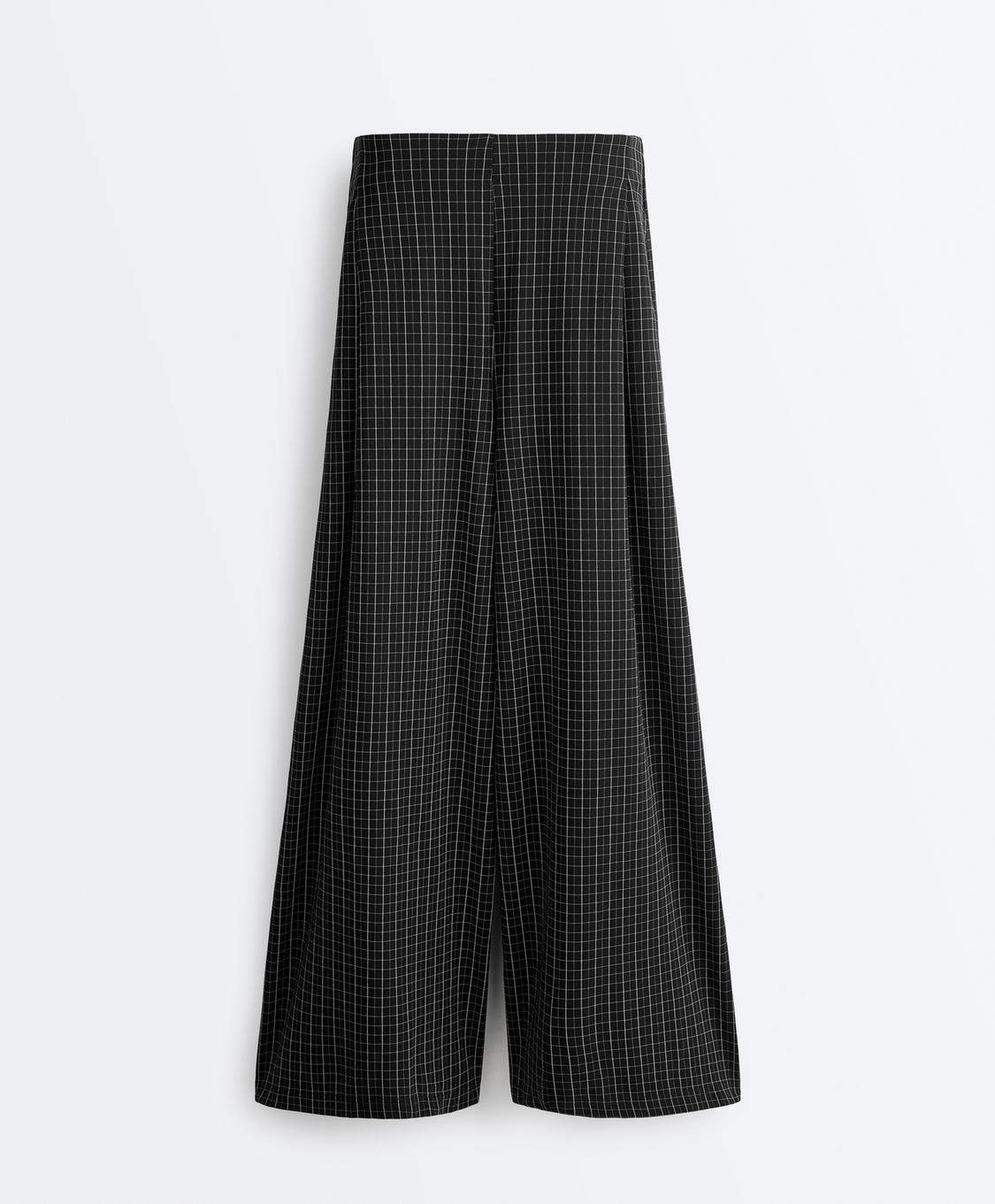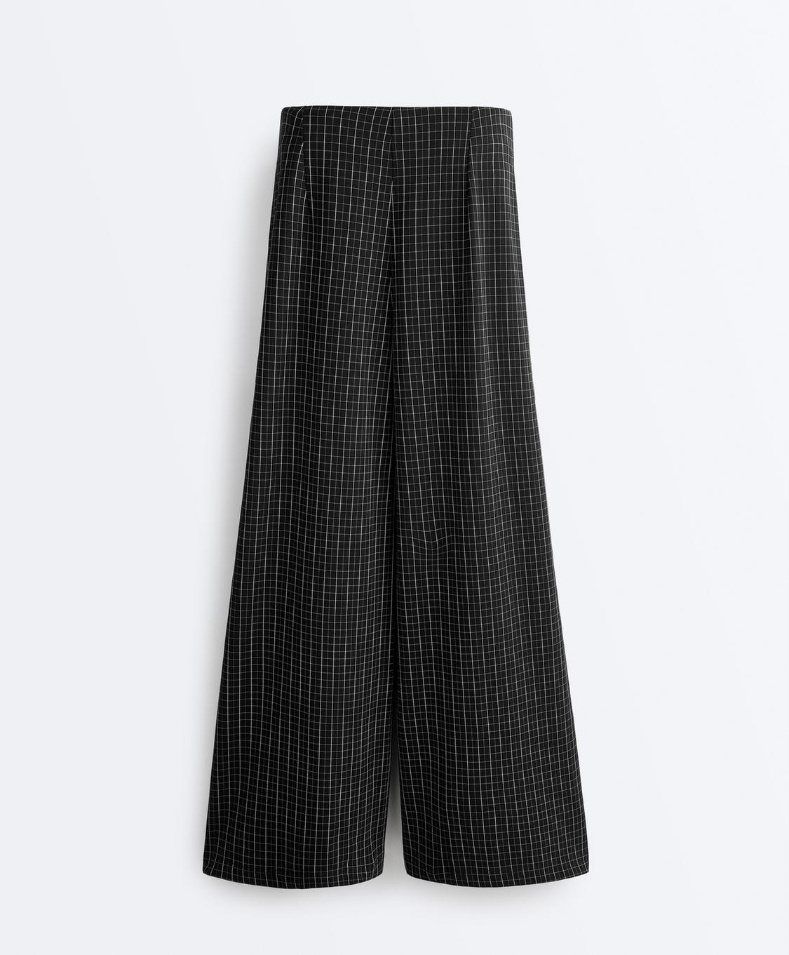 Oysho Брюки в клетку с широкими штанинами, черный