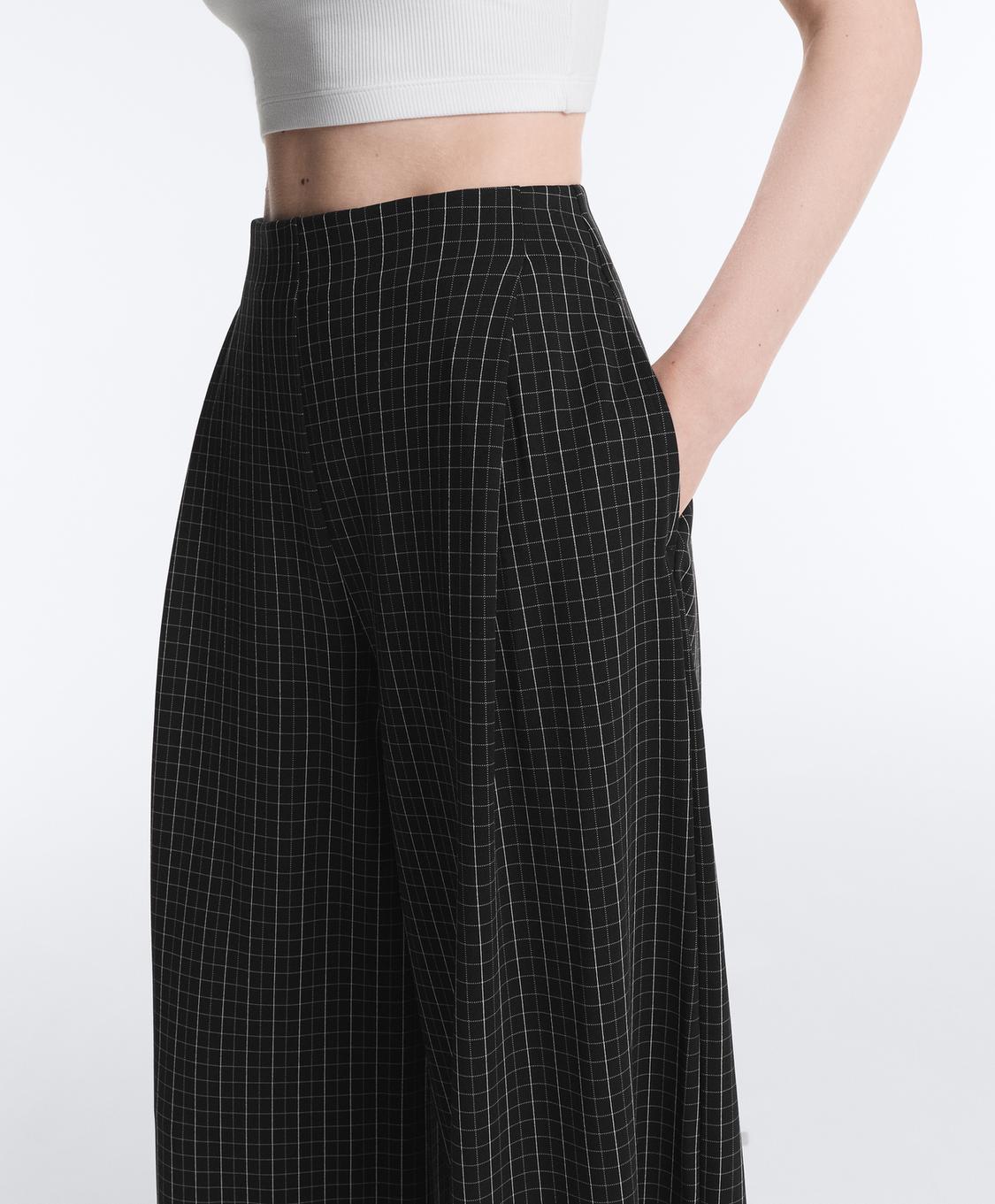 Широкие брюки с регулируемым эластичным поясом и передними карманами. Дизайн в клетку. Дышащая ткань.