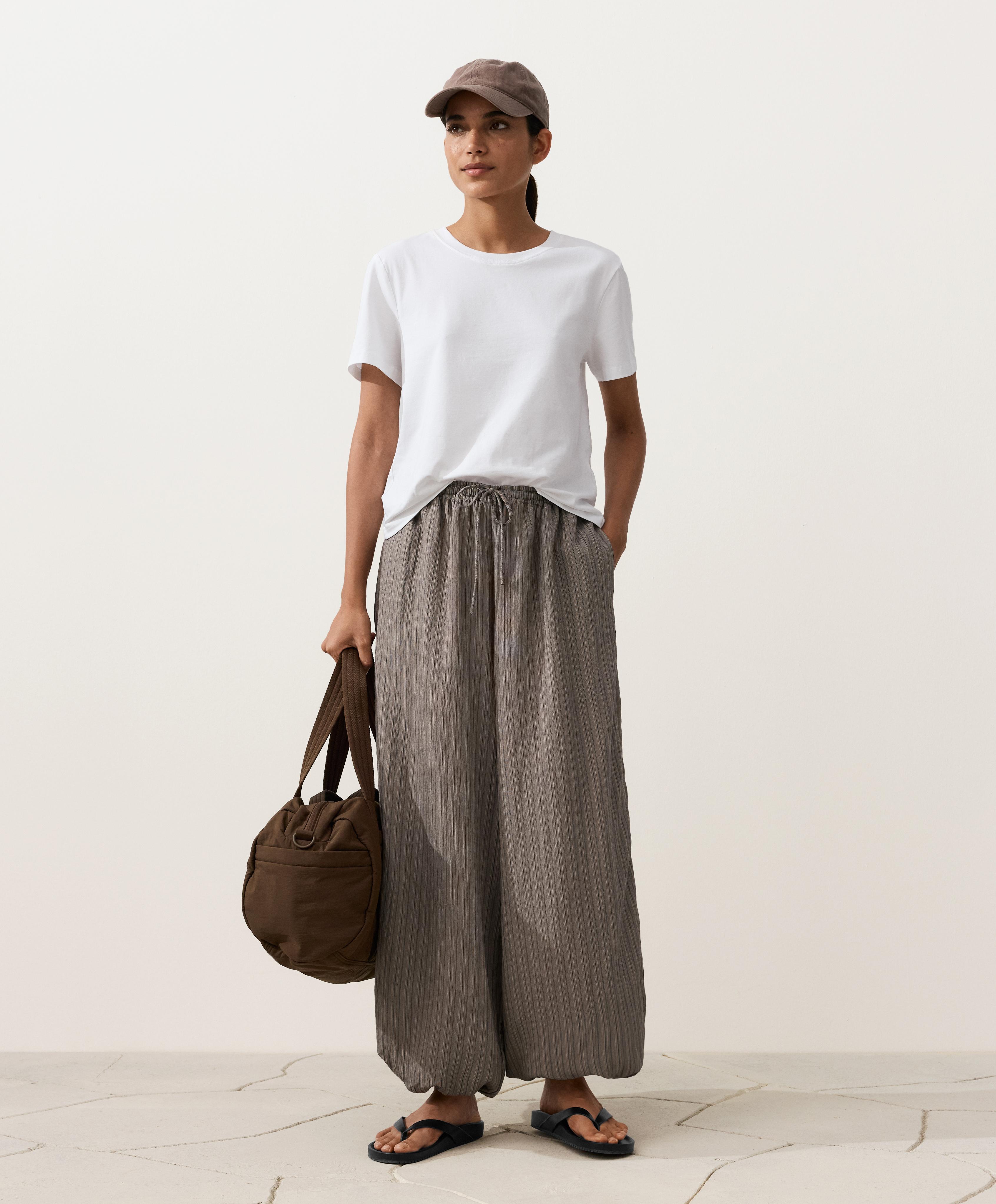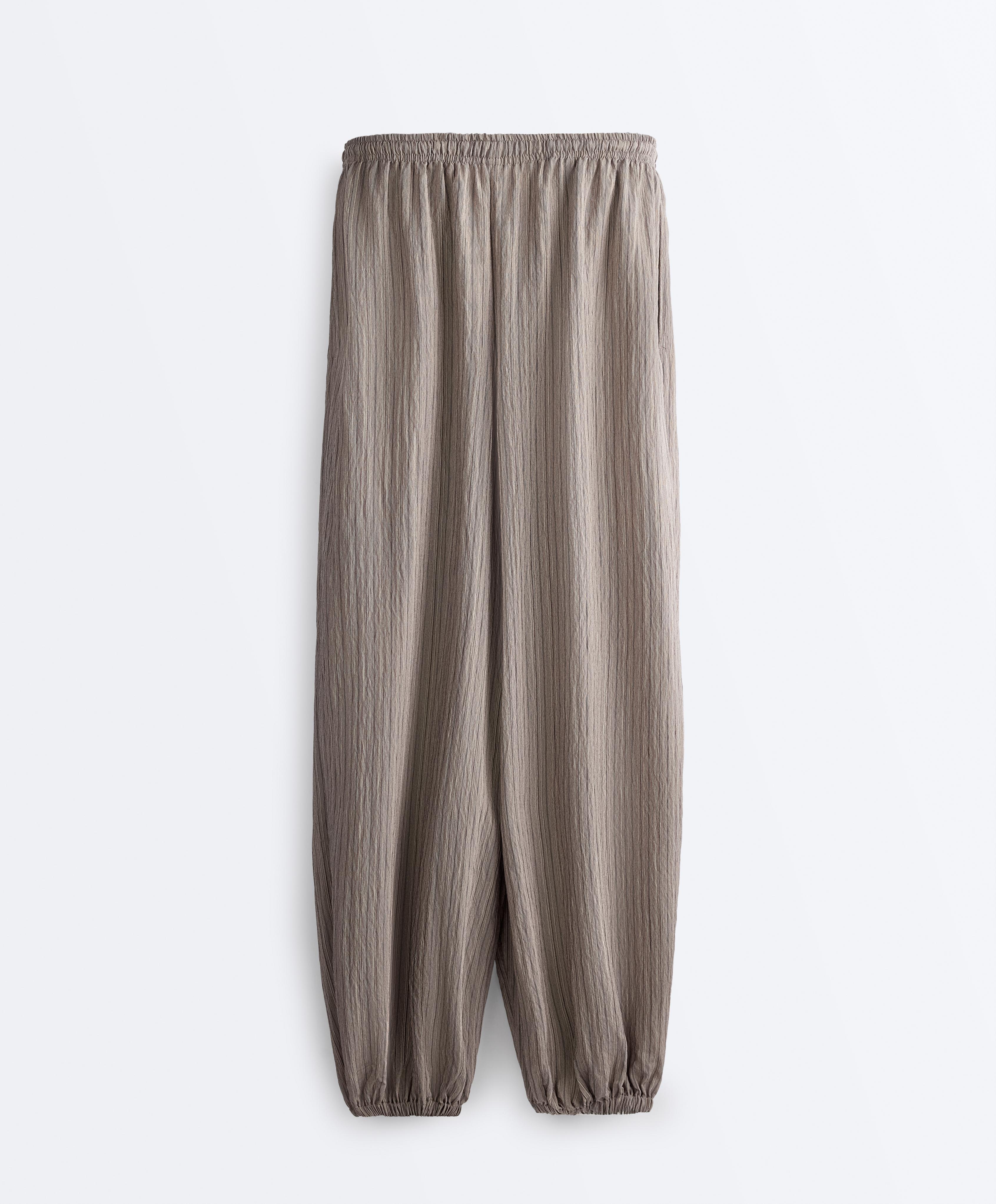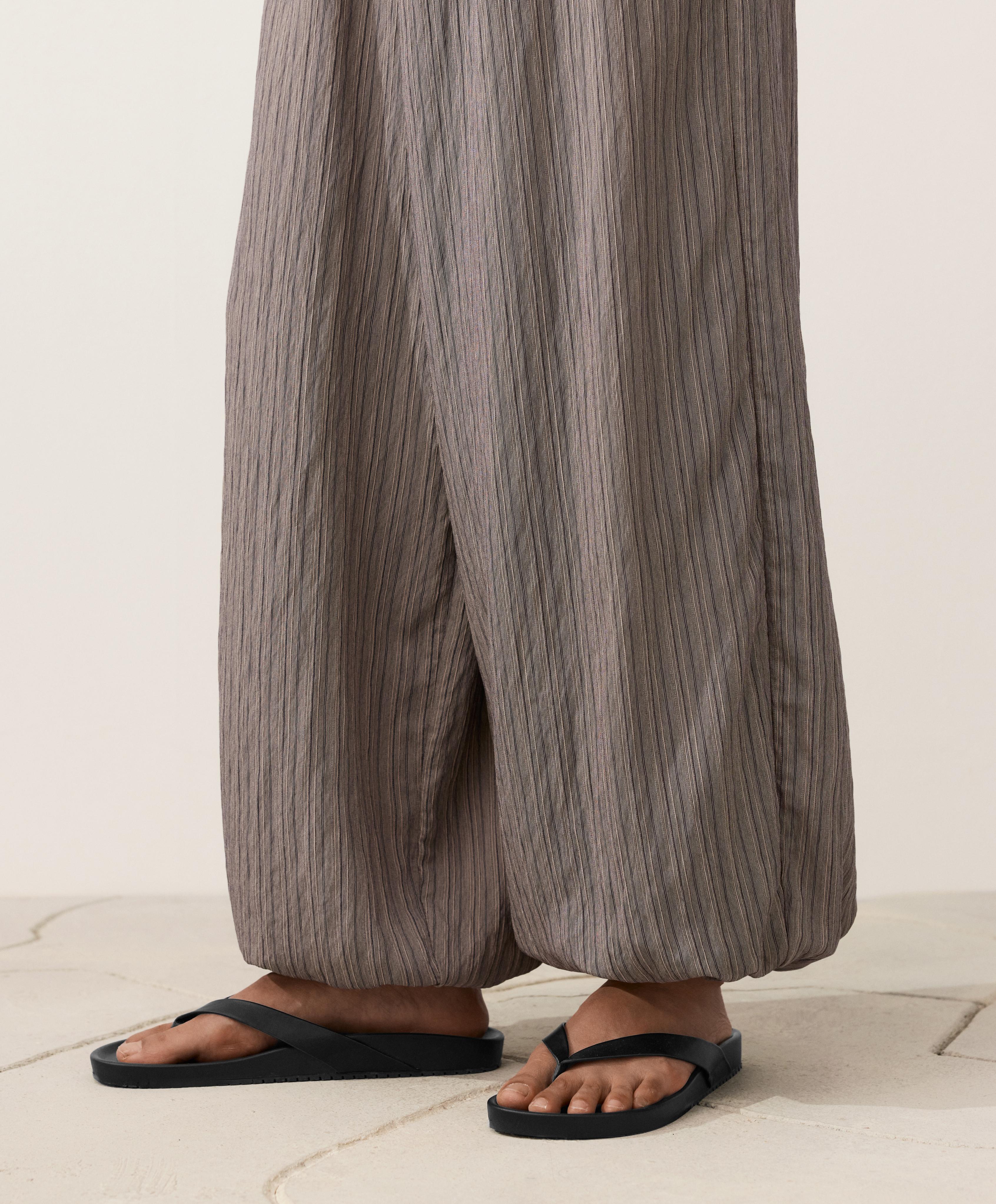 Длинные полосатые брюки-блумеры макси. С регулируемым эластичным поясом и эластичными манжетами.
