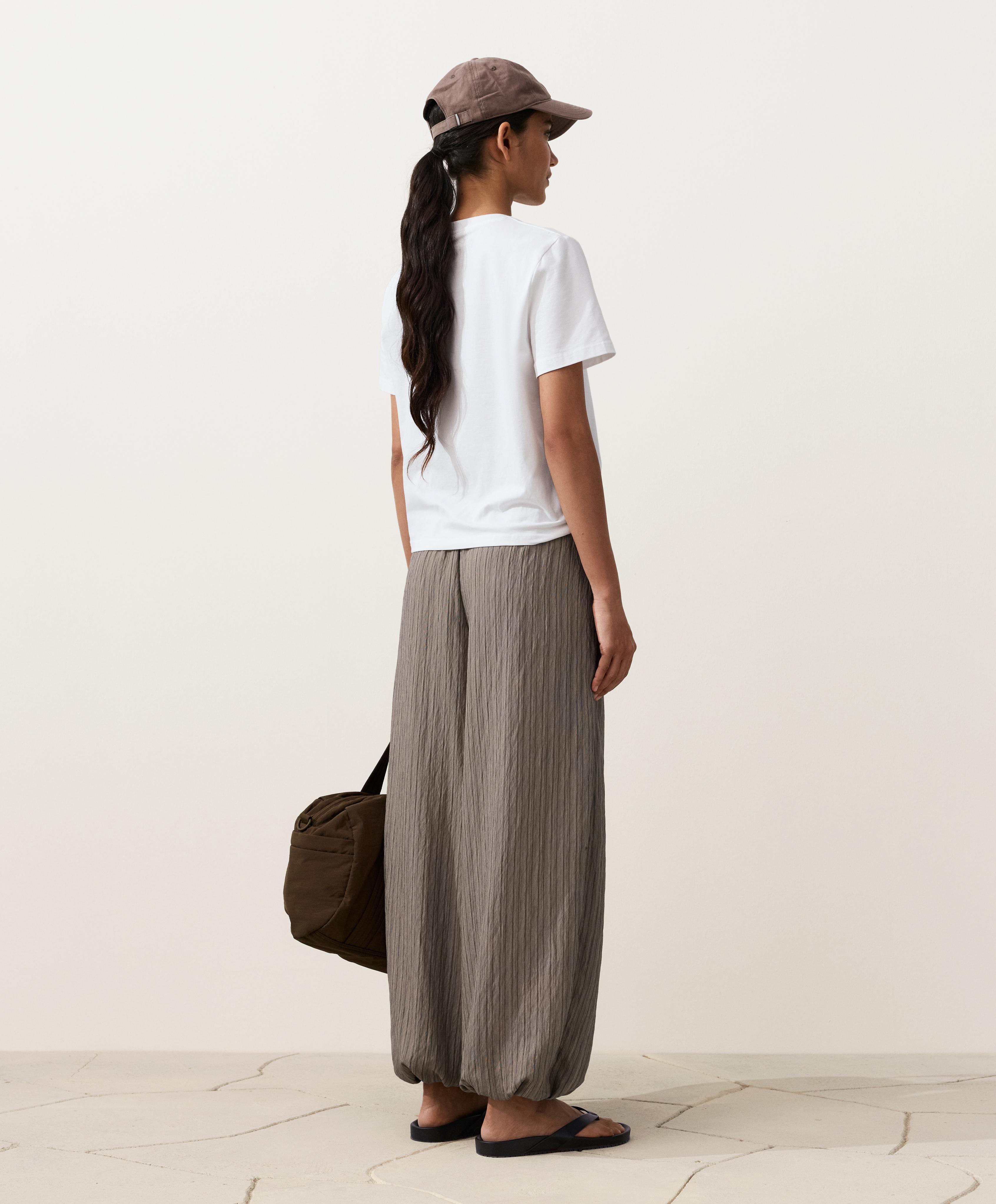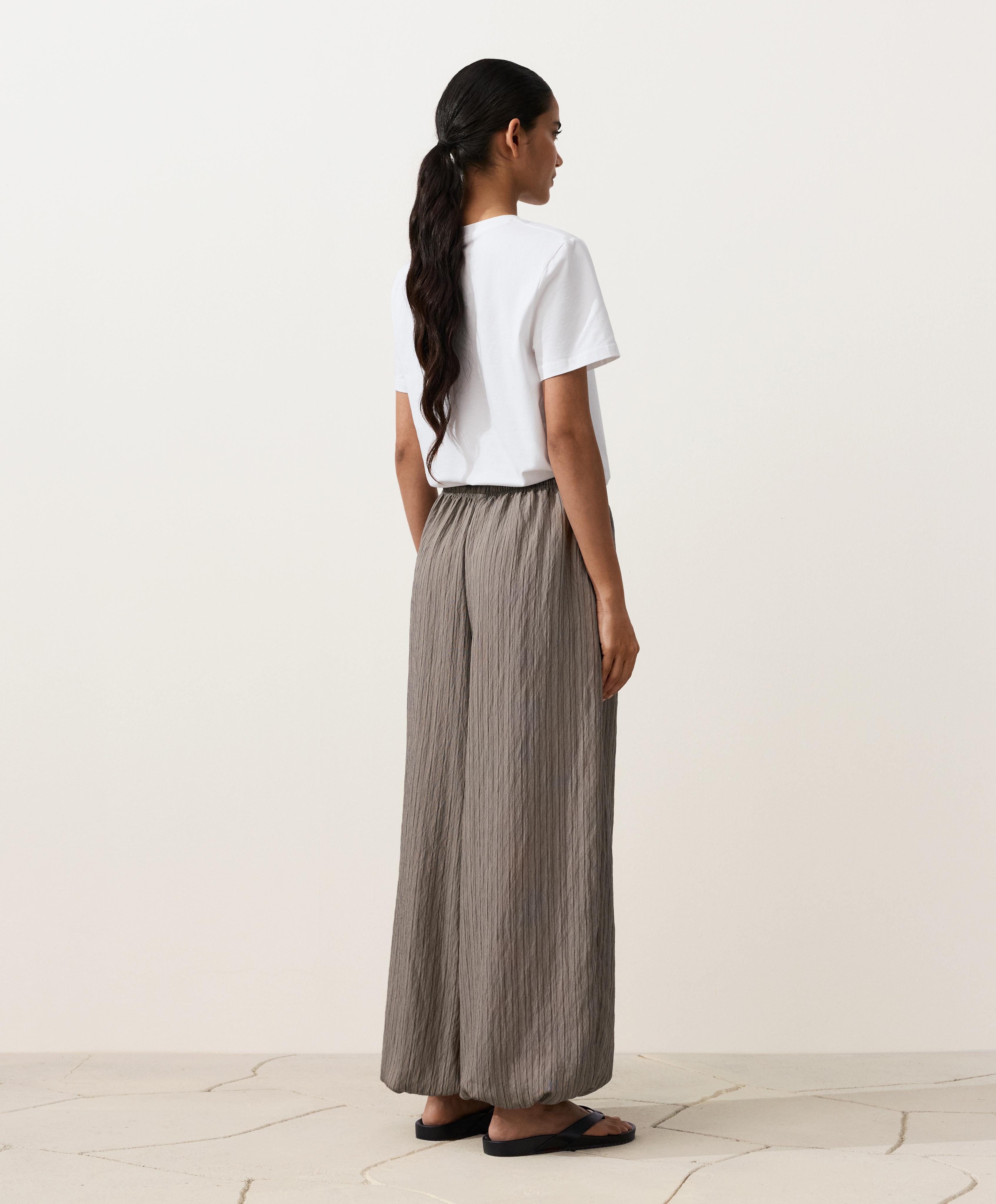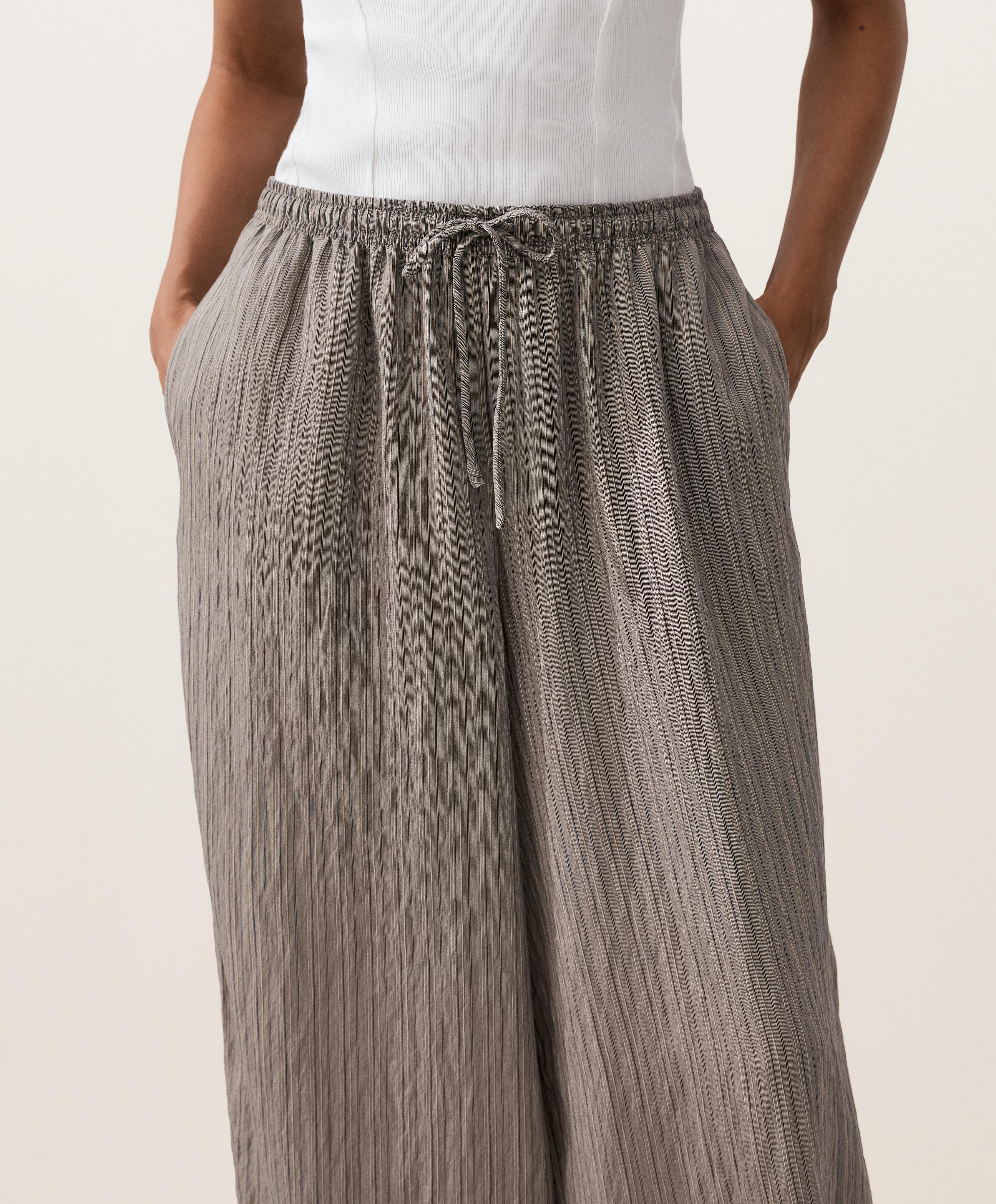 Длинные полосатые брюки-блумеры макси. С регулируемым эластичным поясом и эластичными манжетами.