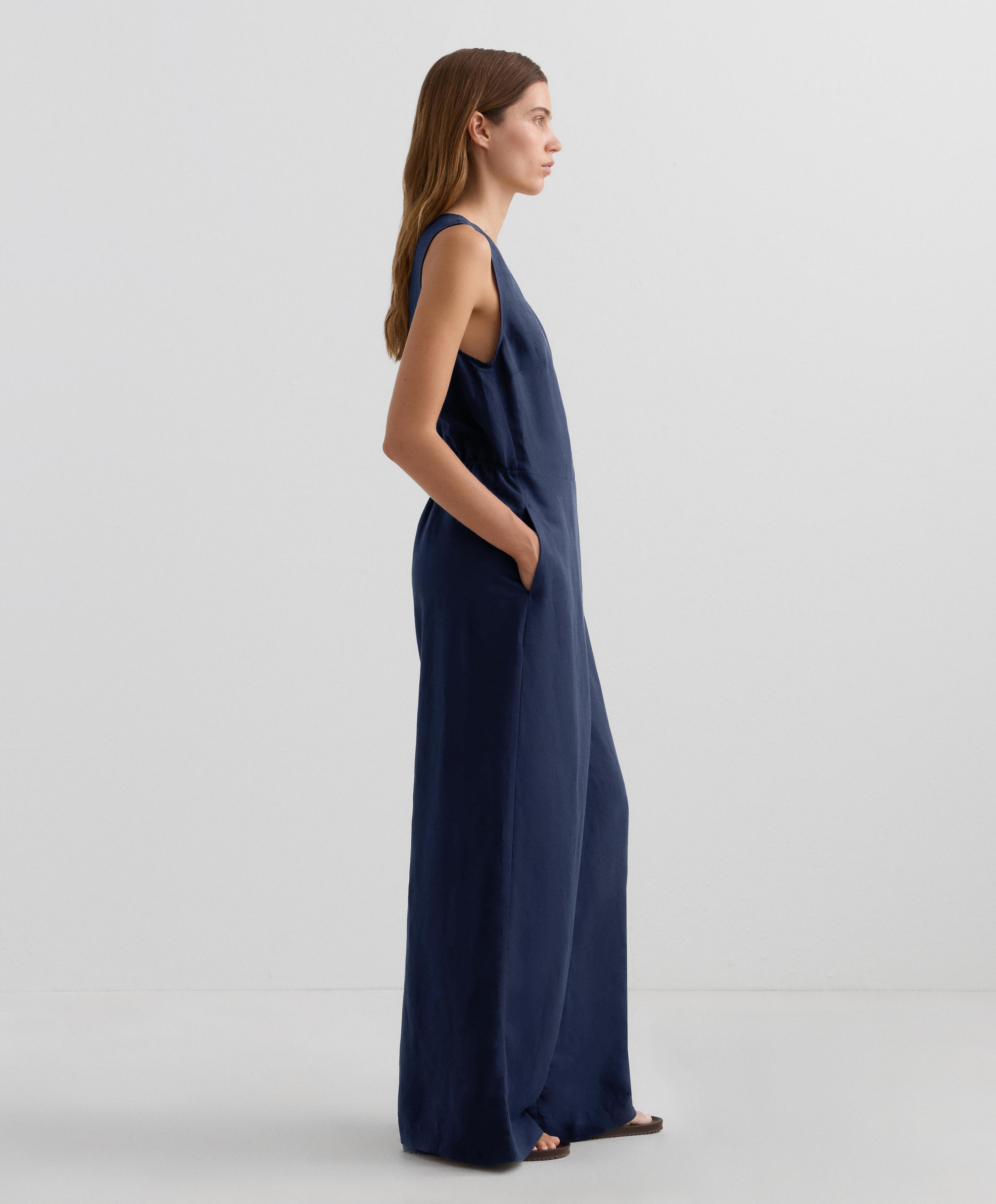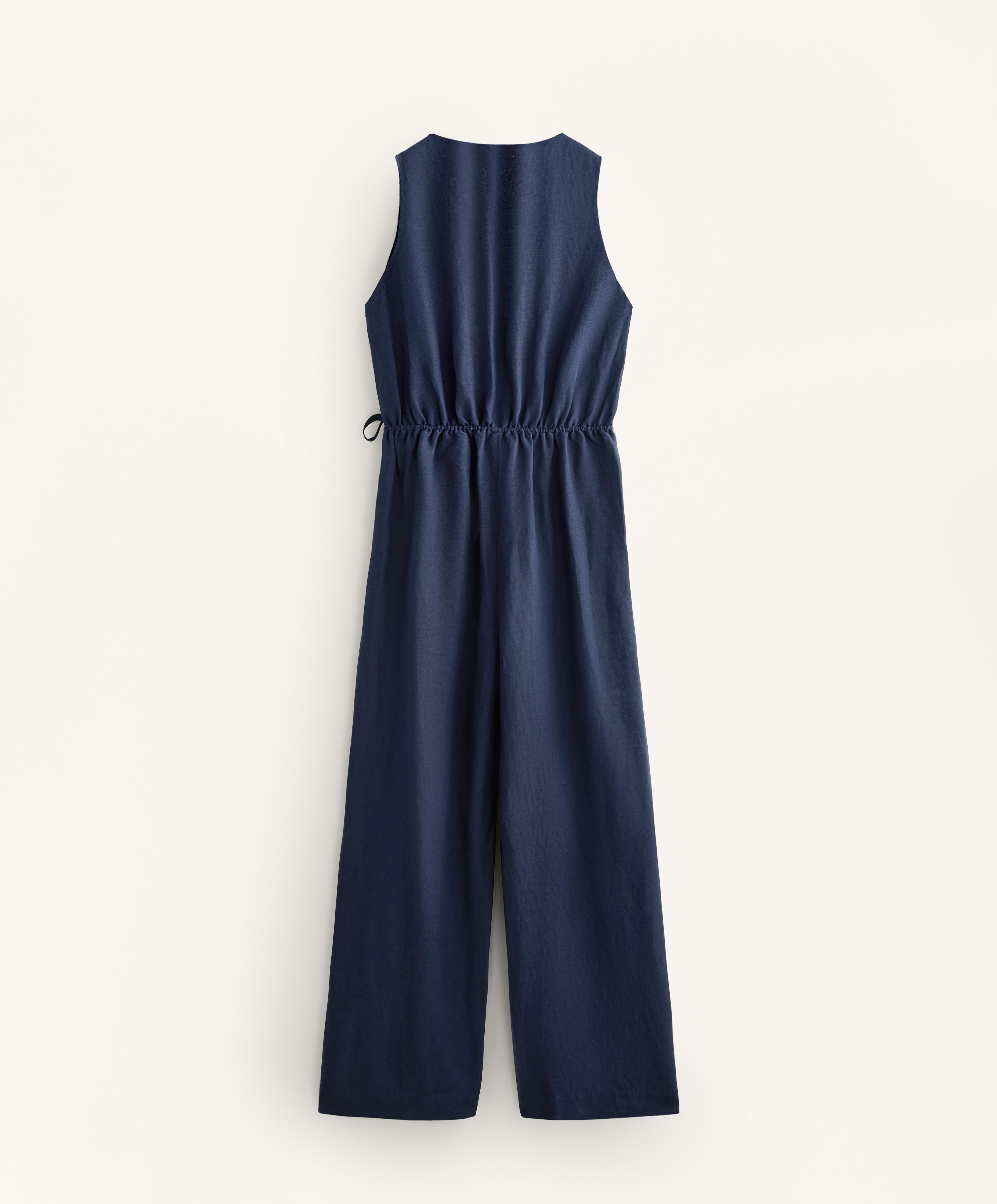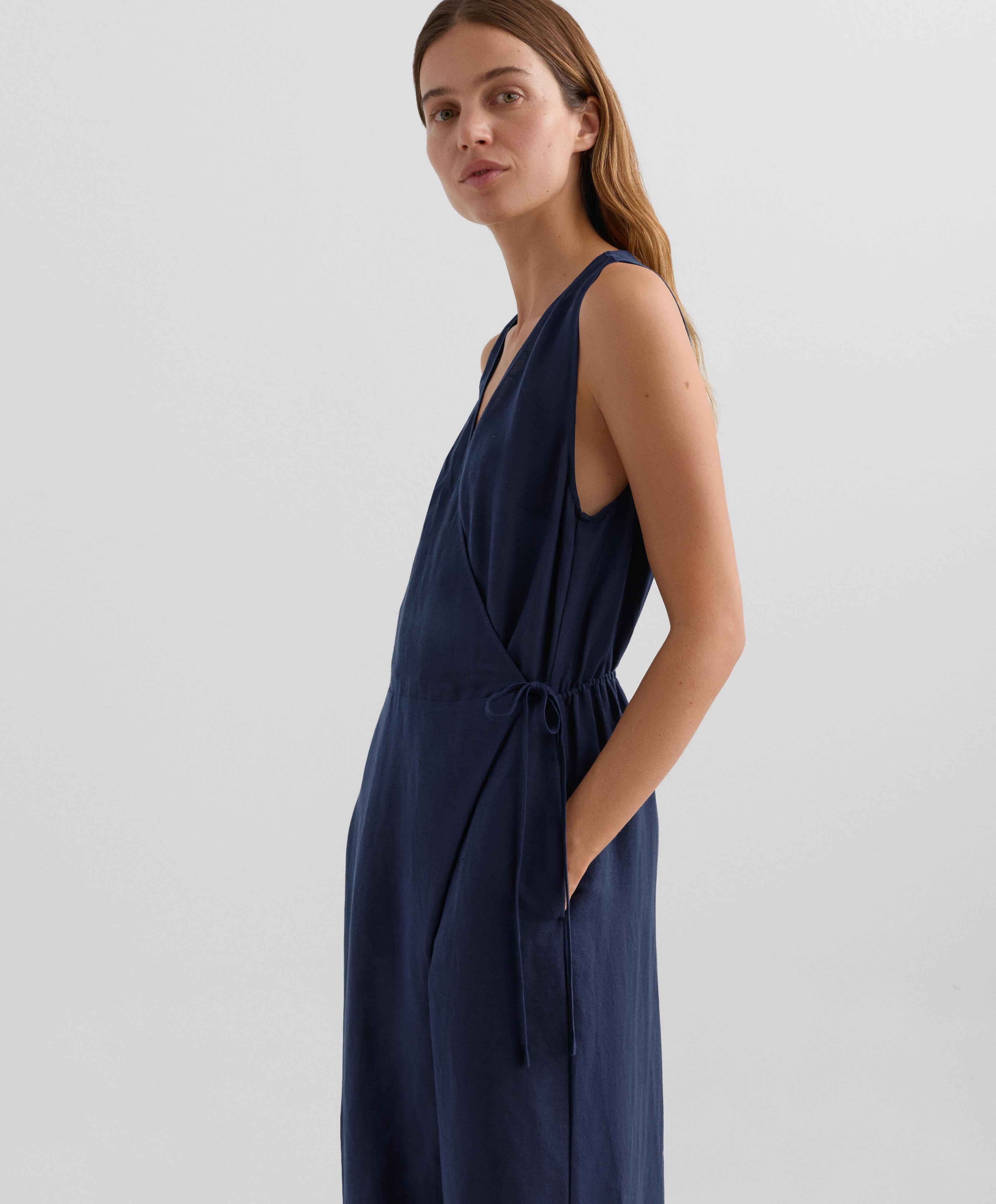 Oysho Длинный комбинезон из льна с запахом, военно-морской