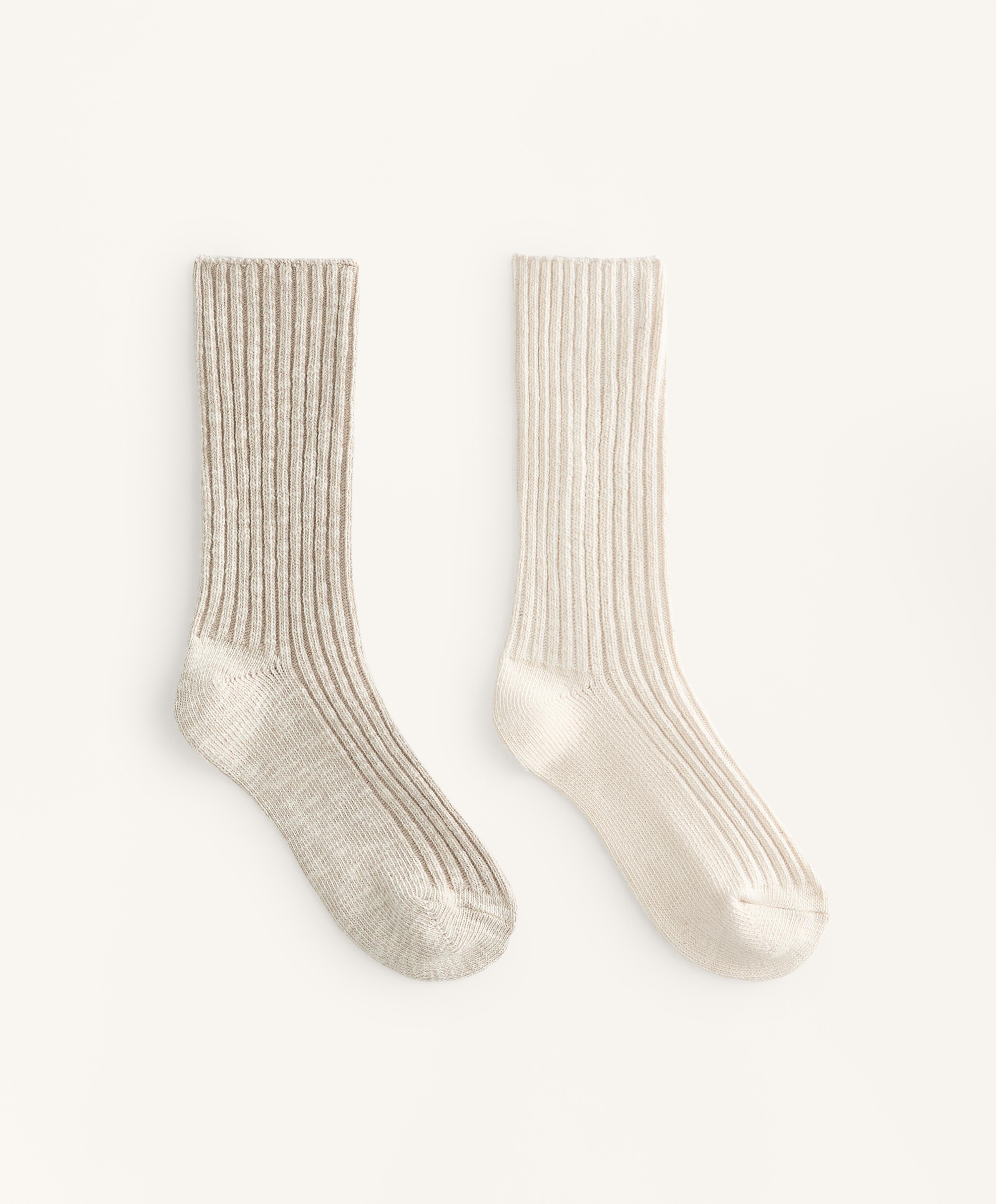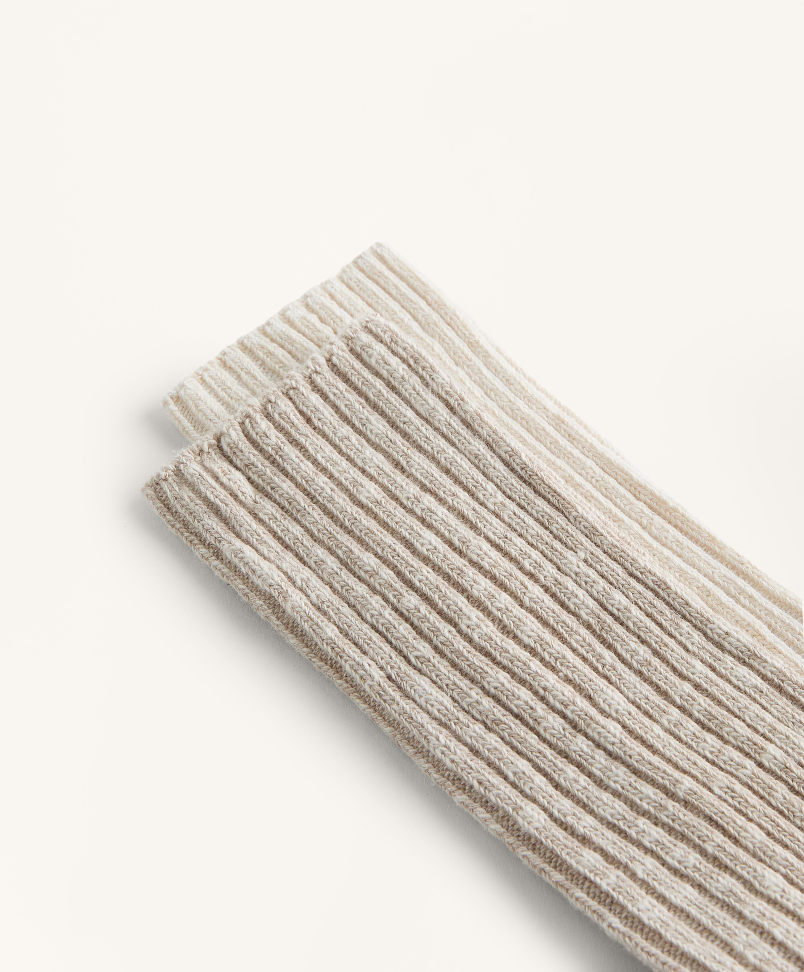 OYSHO Две пары классических носков в рубчик, светлый экрю