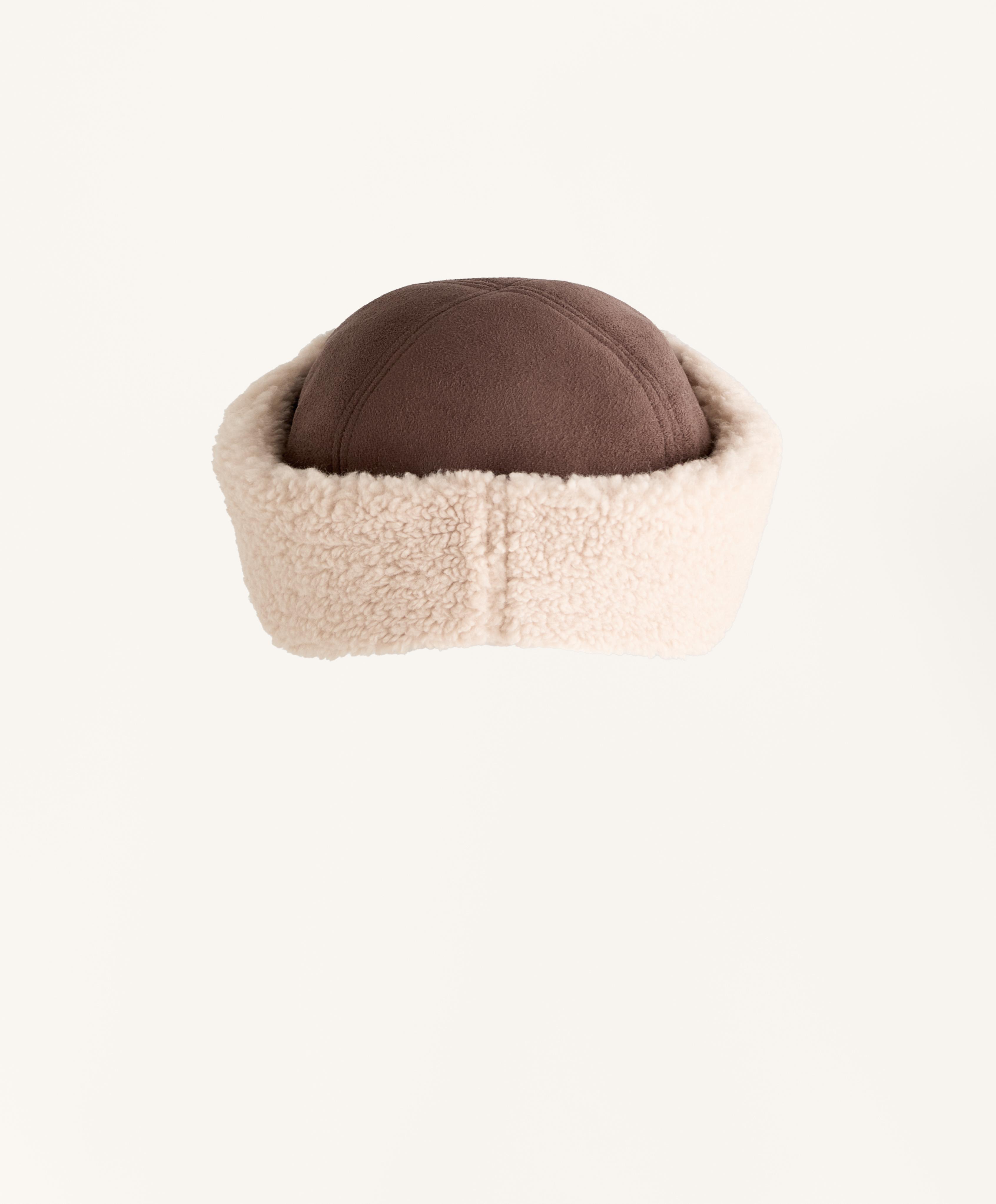 Oysho Двусторонняя шапка из искусственной овчины, шоколадный