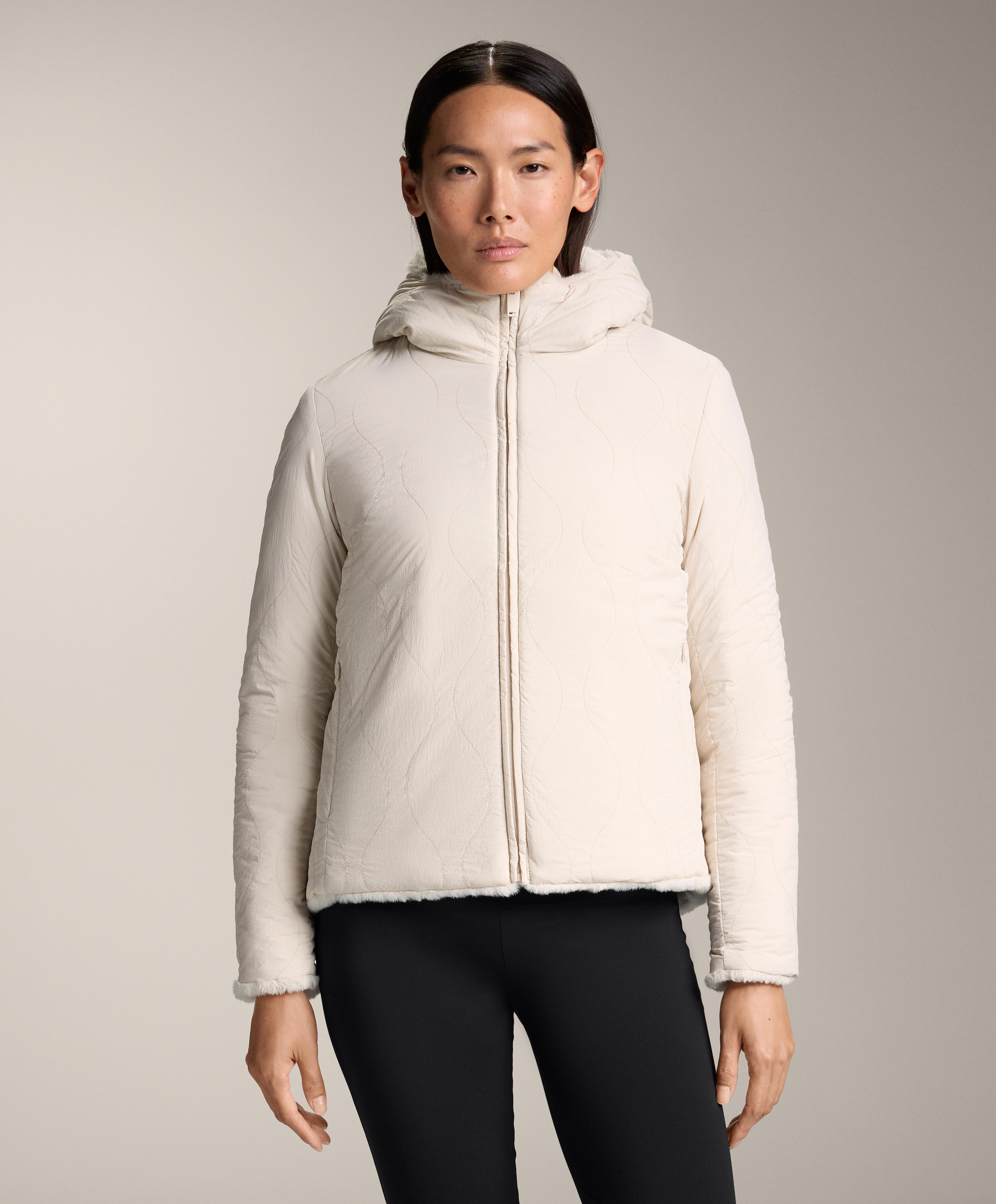 Утеплённая куртка с наполнителем FELLEX® AEROGEL. Куртка FELLEX® AEROGEL изготовлена из полиэстера с использованием компонента AEROGEL, который повышает теплоизоляцию, не утяжеляя изделие. Этот материал используется в комбинезонах астронавтов благодаря своей лёгкости и согревающим свойствам. С капюшоном, застёжкой-молнией спереди и отделкой из искусственного меха. Двусторонняя куртка.
