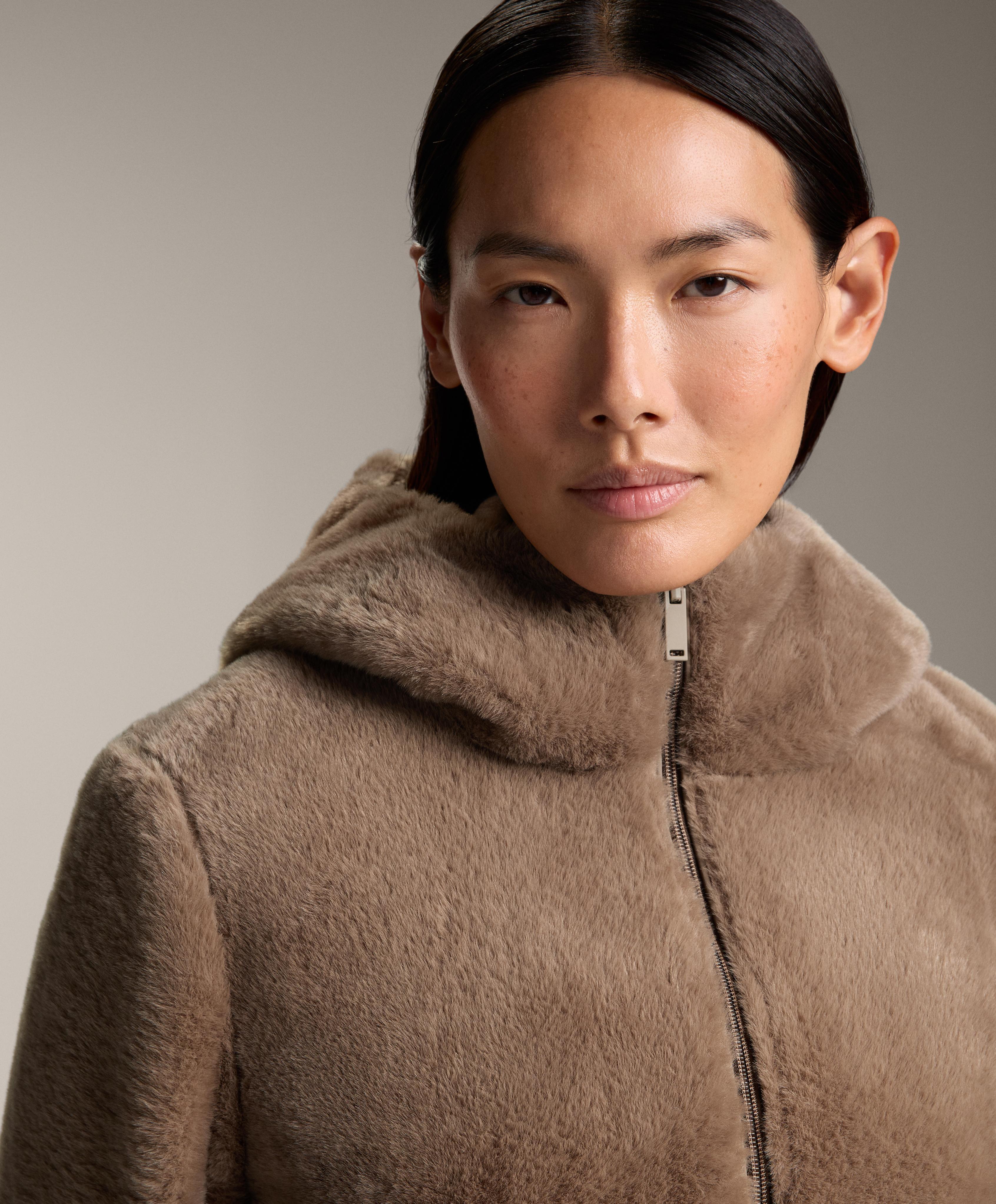 Утеплённая куртка с наполнителем FELLEX® AEROGEL. Куртка FELLEX® AEROGEL изготовлена из полиэстера с использованием компонента AEROGEL, который повышает теплоизоляцию, не утяжеляя изделие. Этот материал используется в комбинезонах астронавтов благодаря своей лёгкости и согревающим свойствам. С капюшоном, застёжкой-молнией спереди и отделкой из искусственного меха. Двусторонняя куртка.