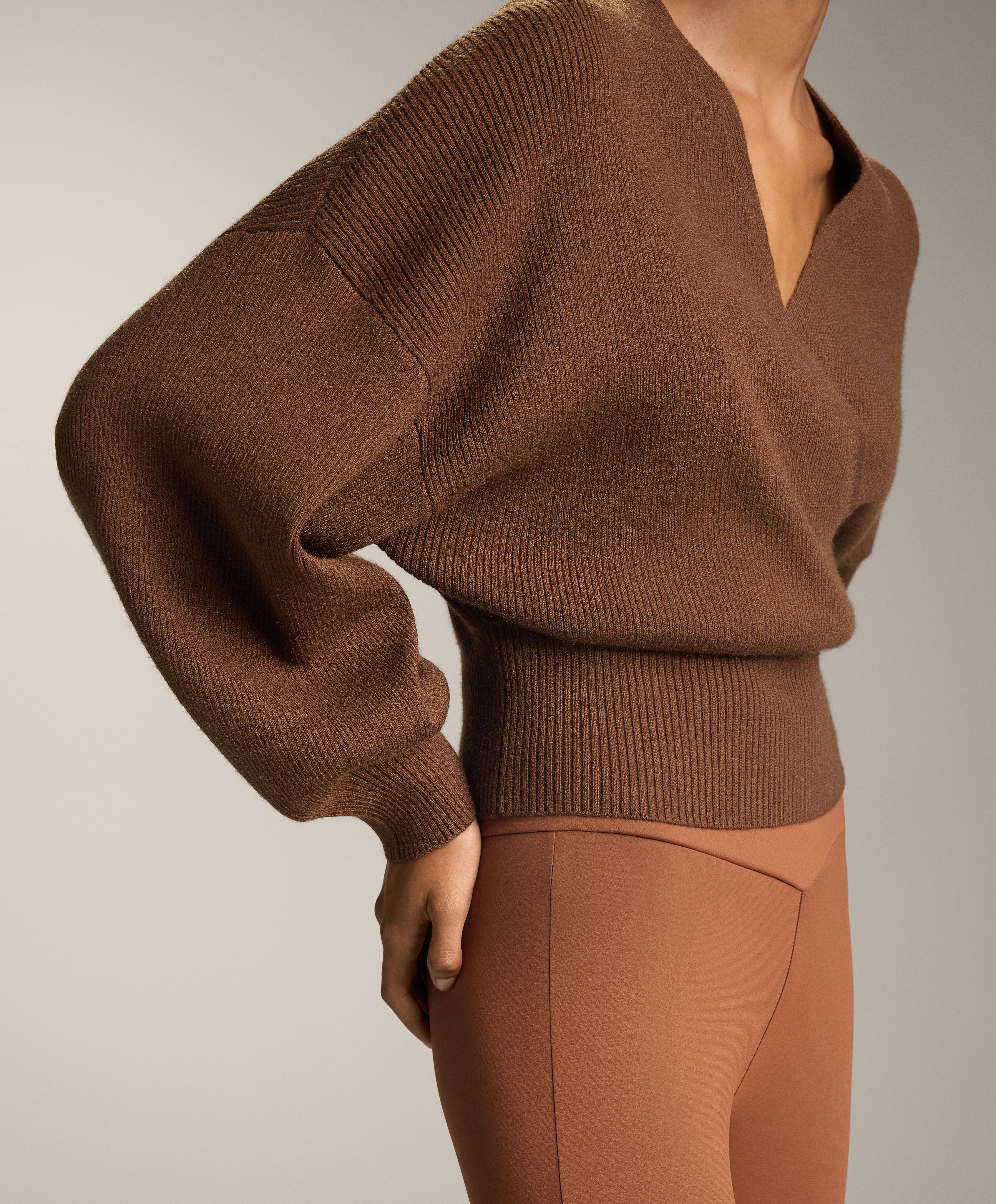 Oysho Джемпер с запахом из трикотажа в рубчик, коричневый