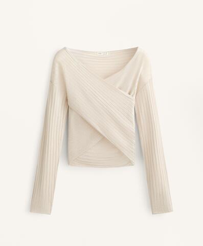 Oysho Джемпер с запахом в рубчик из тонкой полупрозрачной вязаной ткани, экрю
