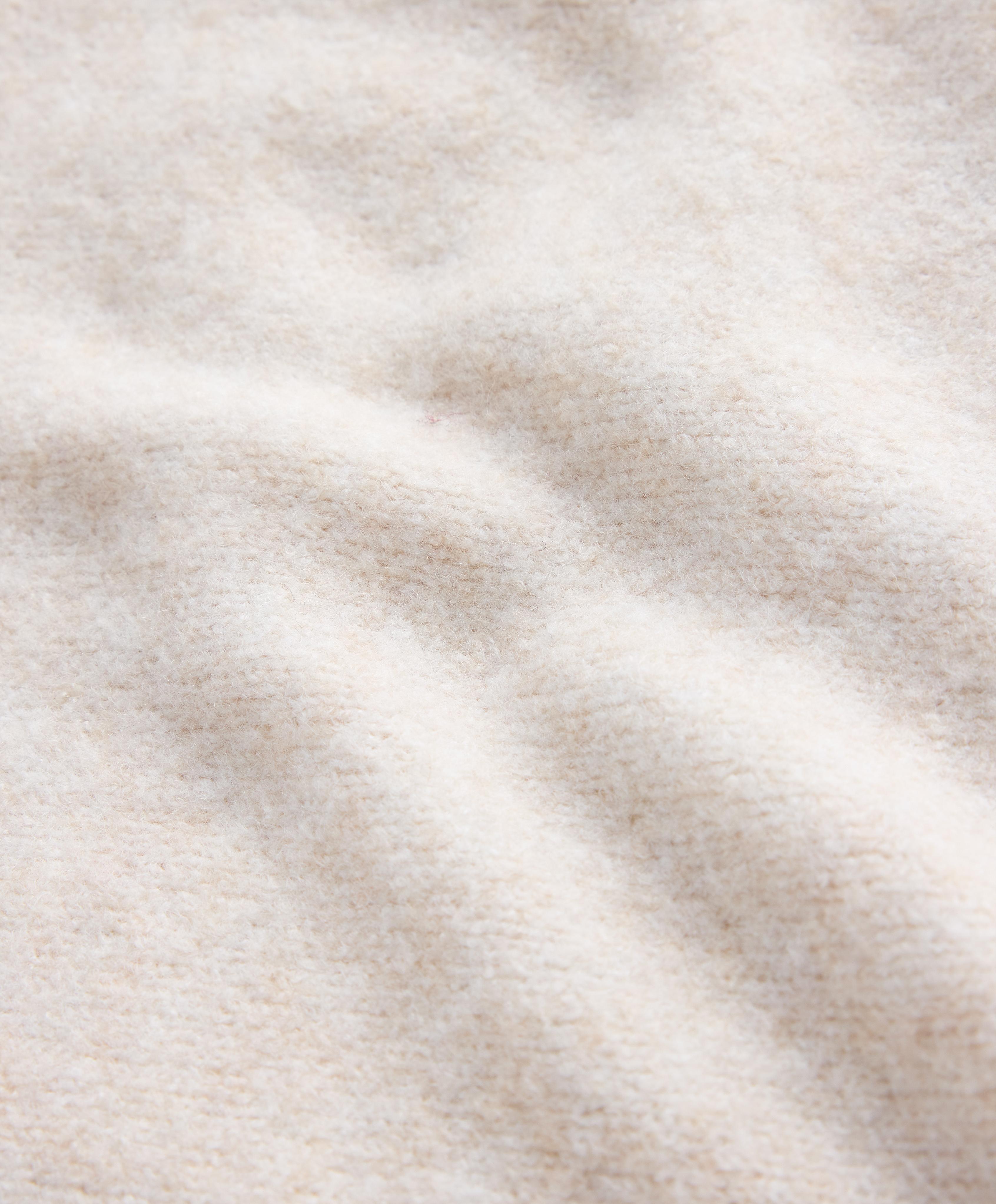 Свитер свободного кроя с отложным воротником. Ребристая отделка на манжетах и подоле.