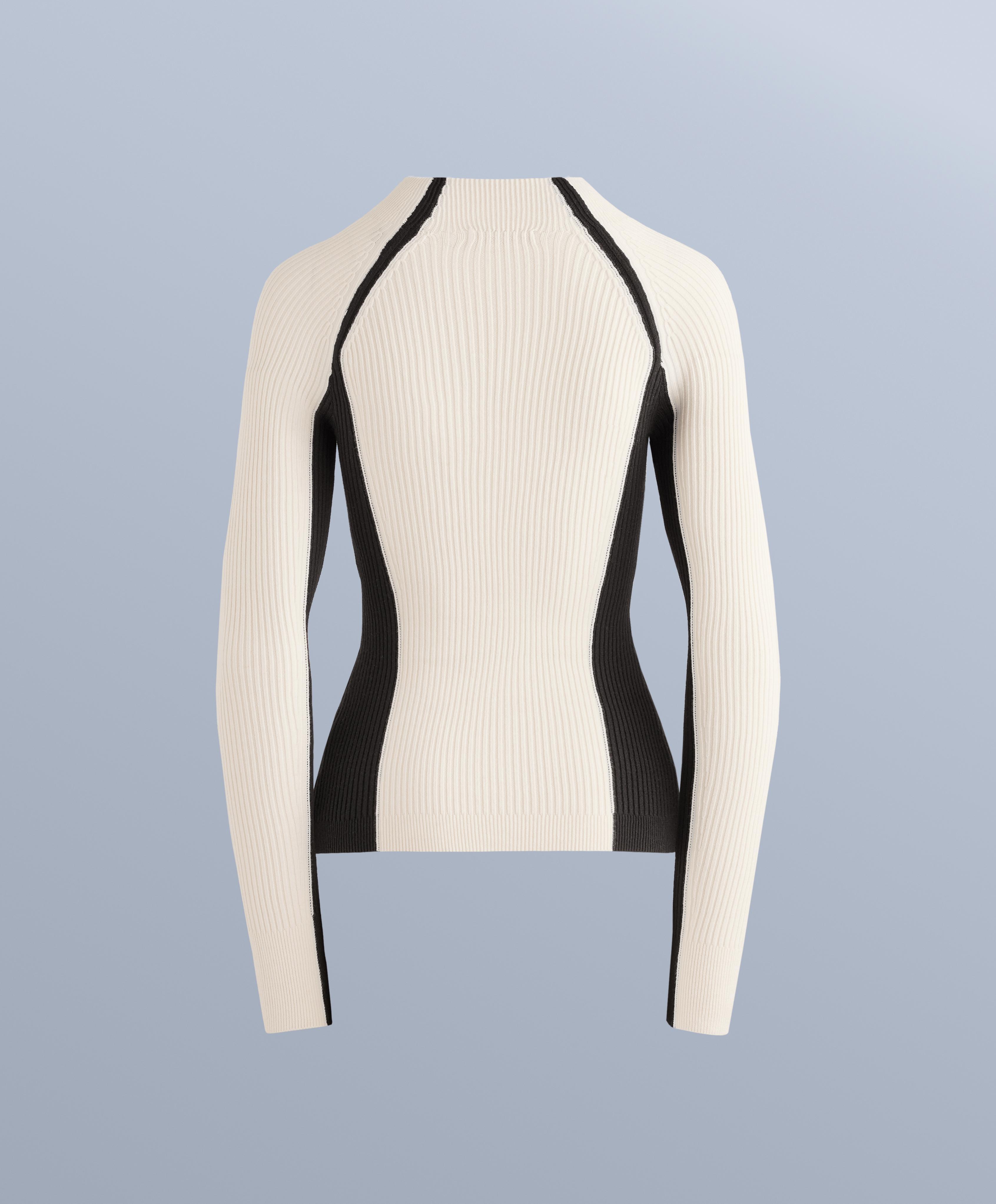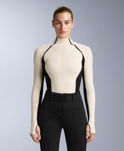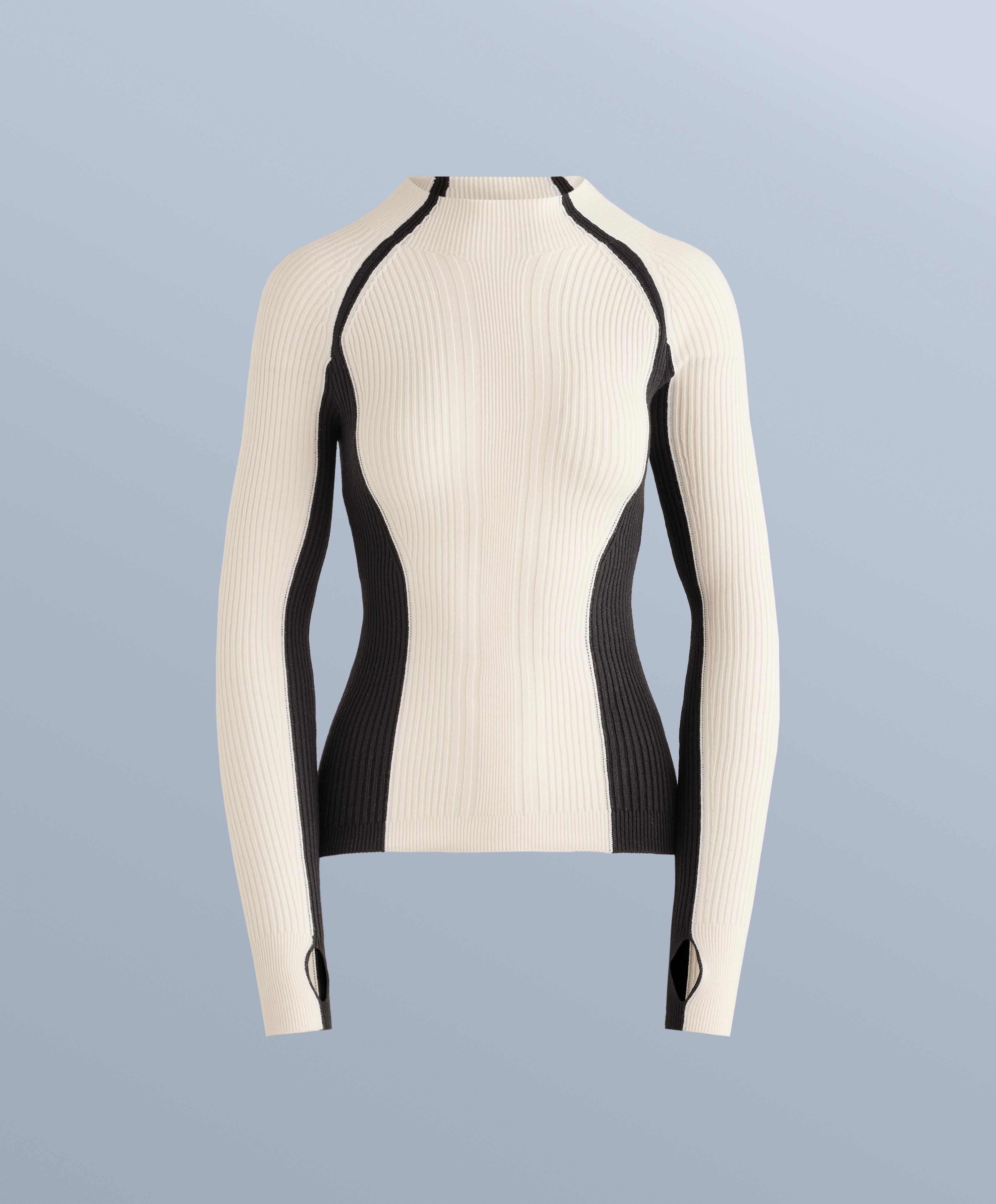 Футболка с длинными рукавами, высоким воротом и застежкой-молнией спереди до уровня груди. Стратегически продуманное отверстие на манжете рукава позволяет вставить большой палец для большей подвижности. Дышащая трикотажная ткань в рубчик пропускает влагу, способствуя терморегуляции и длительному ощущению свежести. Теплосберегающая ткань помогает поддерживать температуру тела.