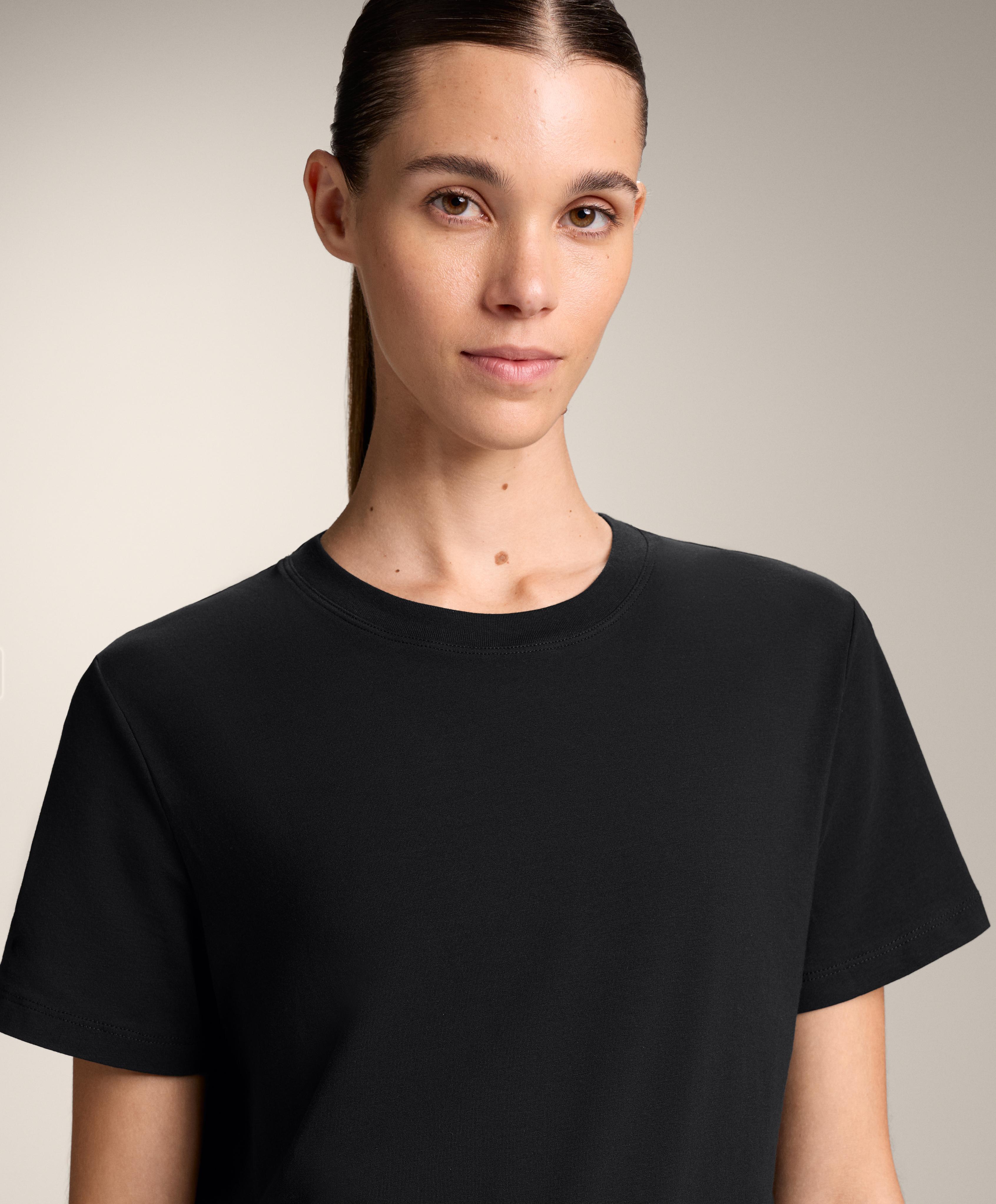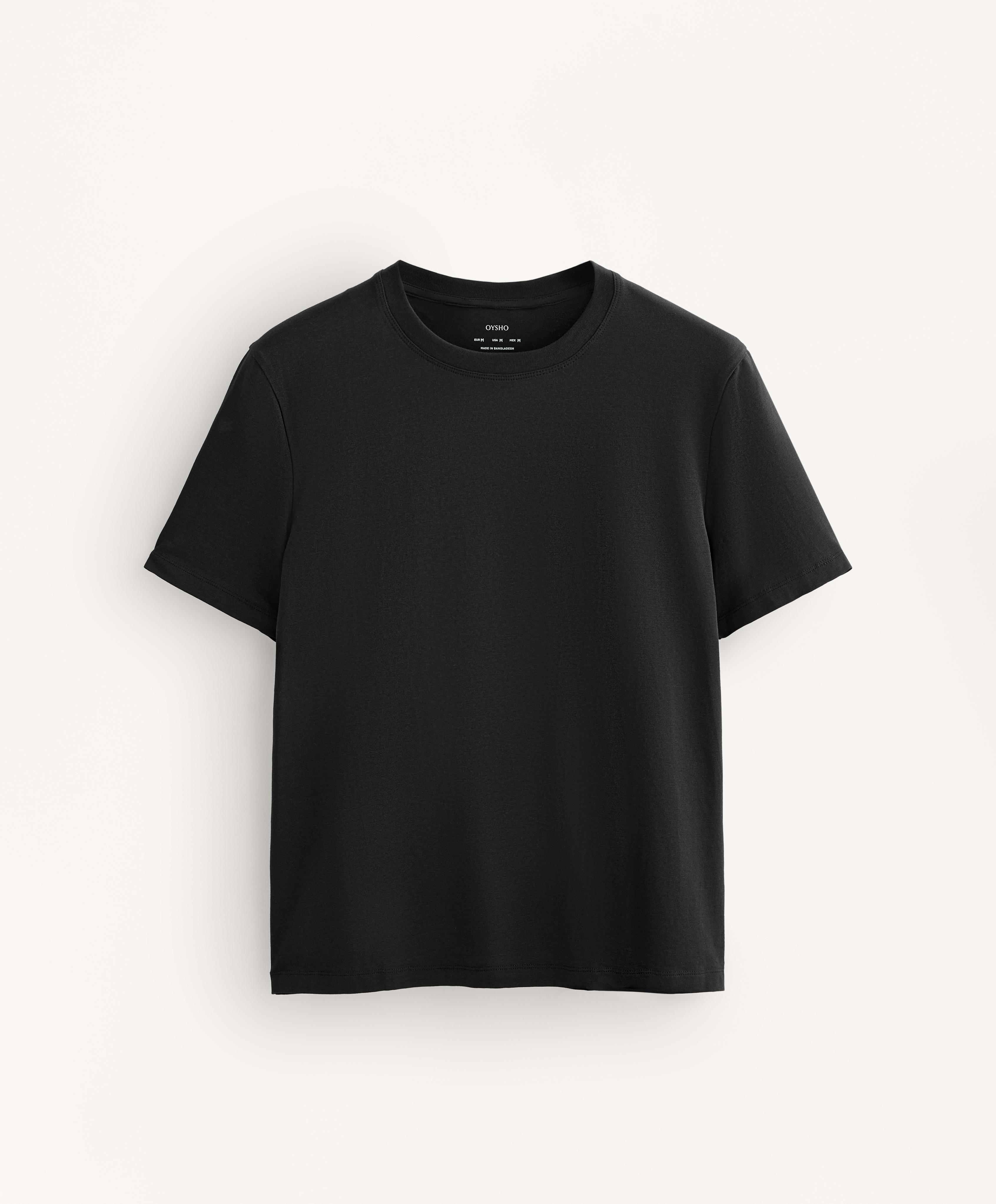 Oysho Футболка из смесового хлопка с коротким рукавом, черный