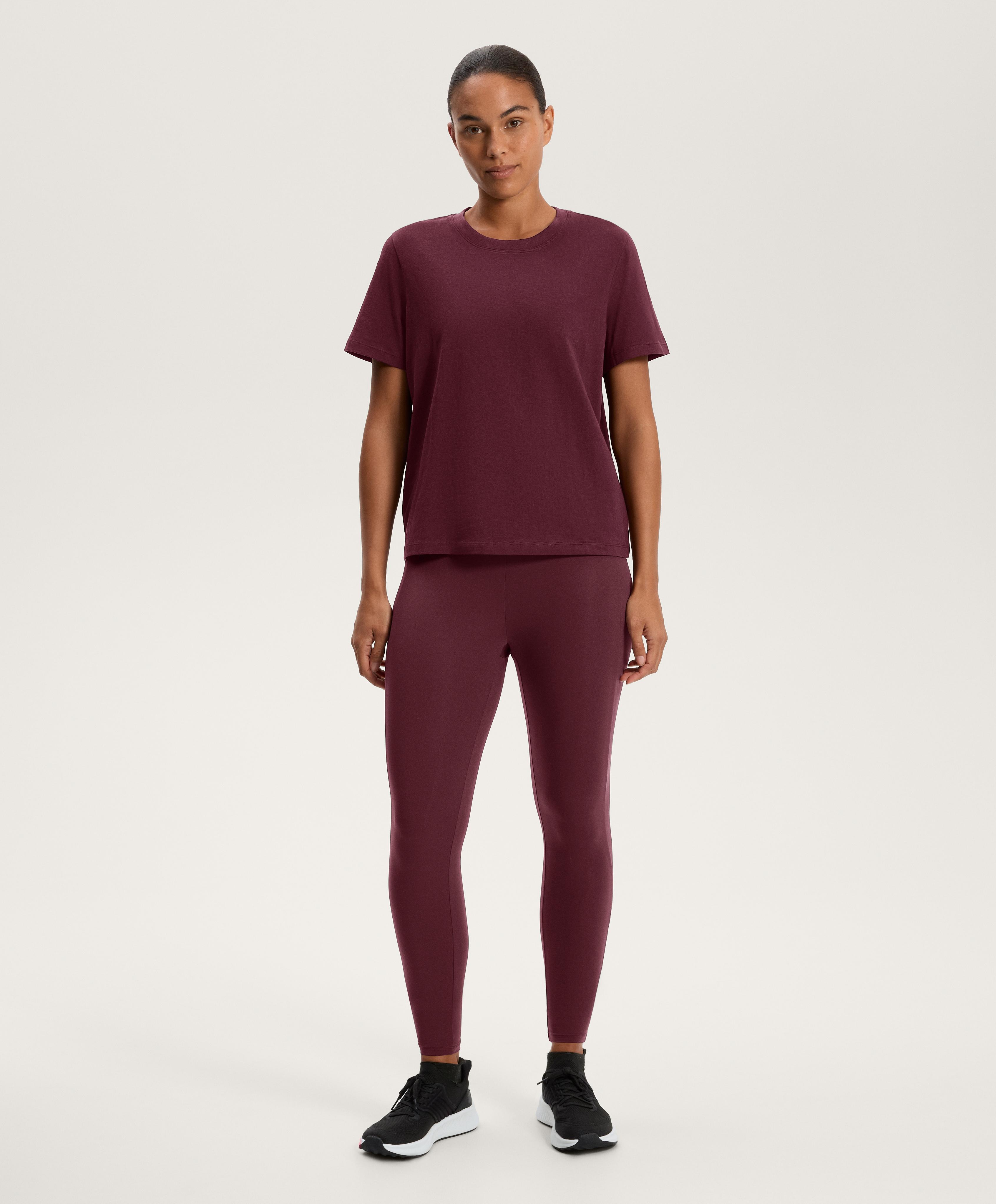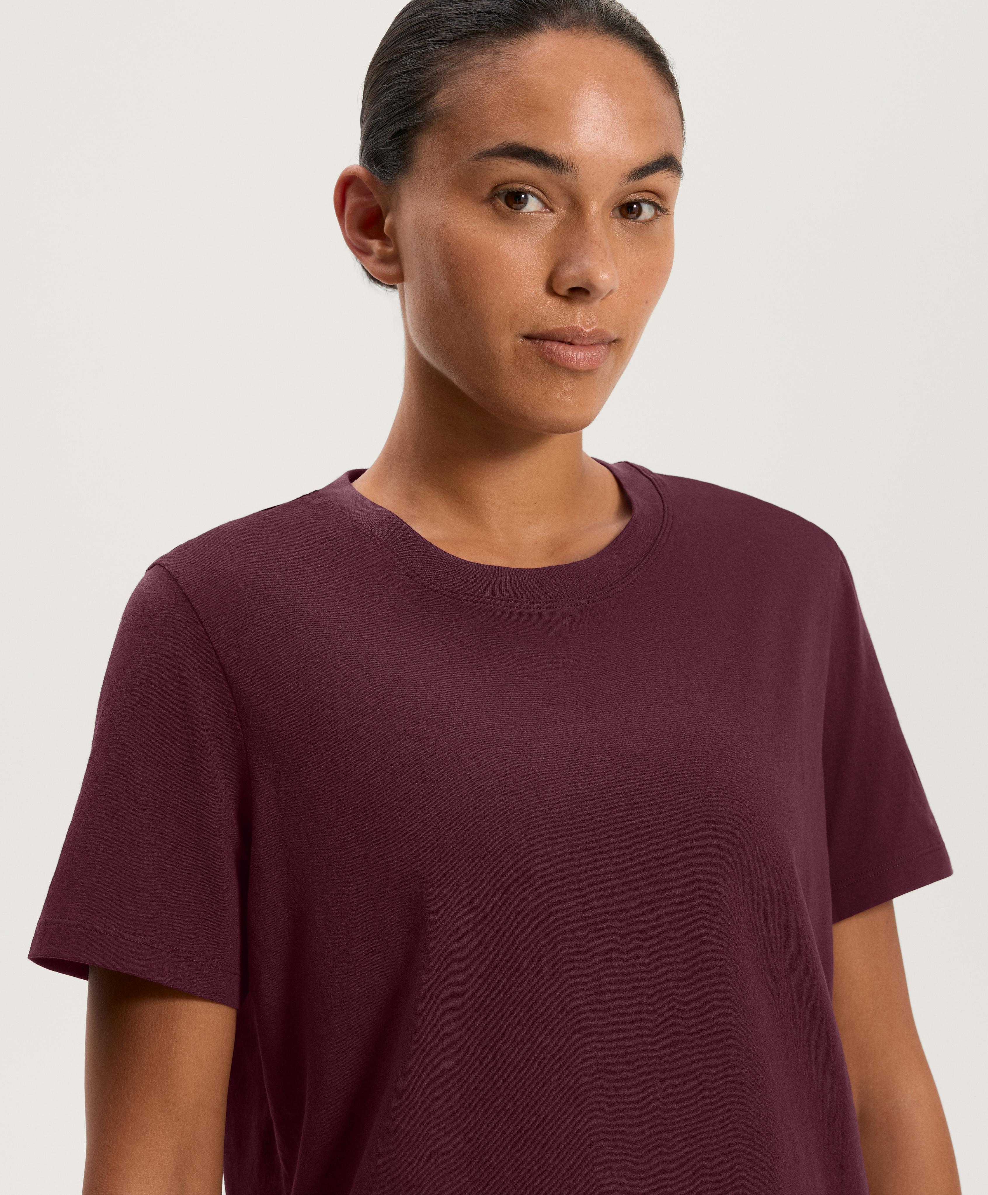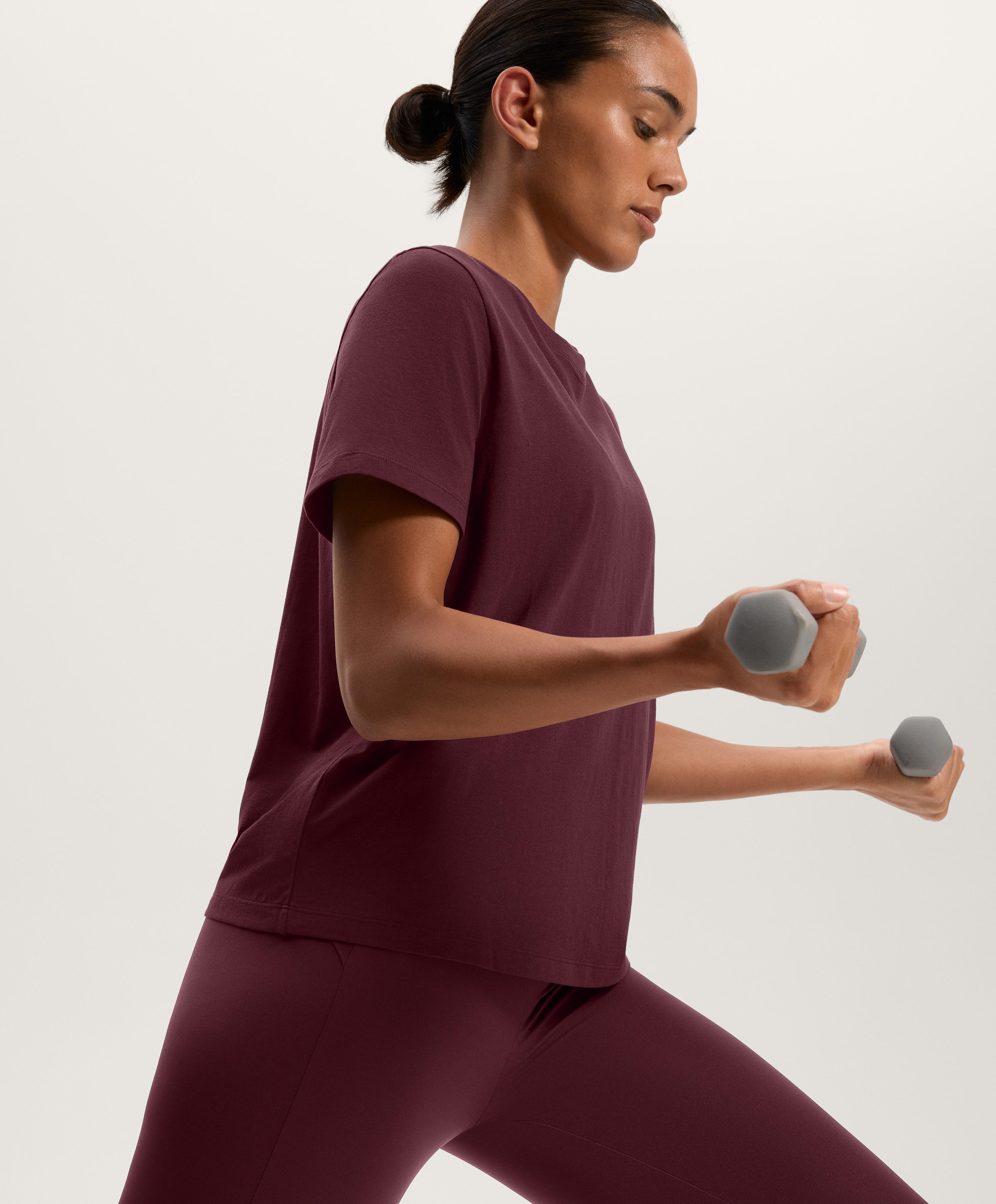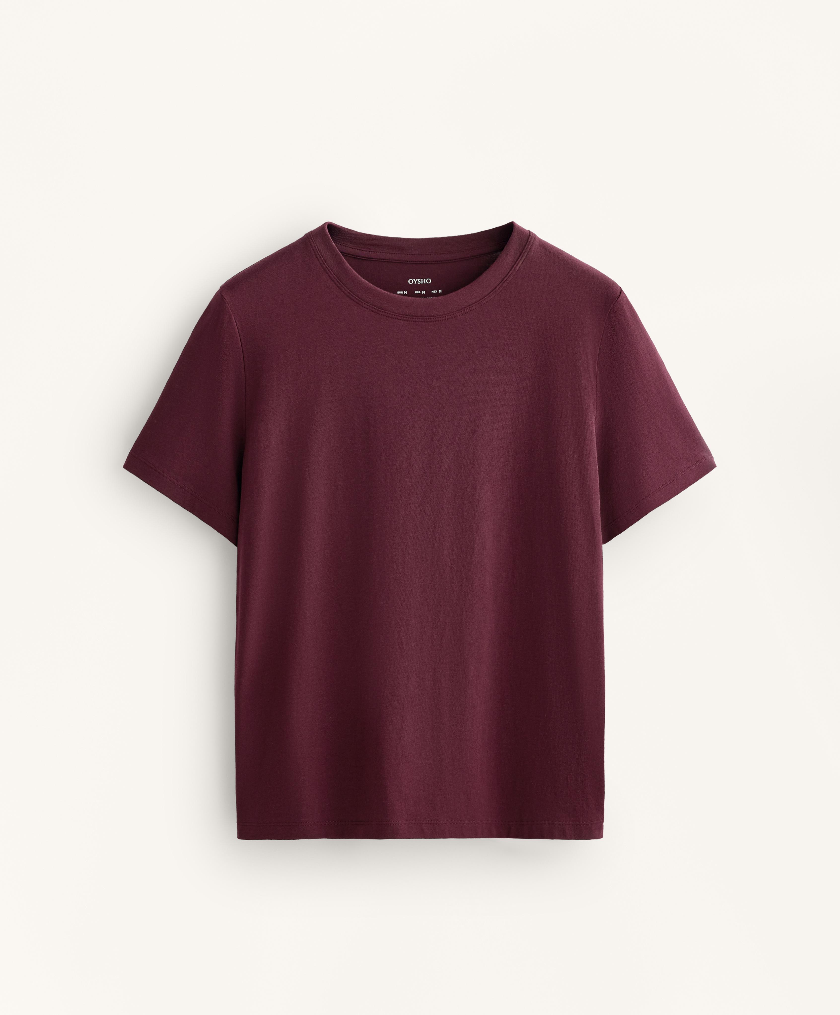Oysho Футболка из смесового хлопка с коротким рукавом, темно-гранатовый