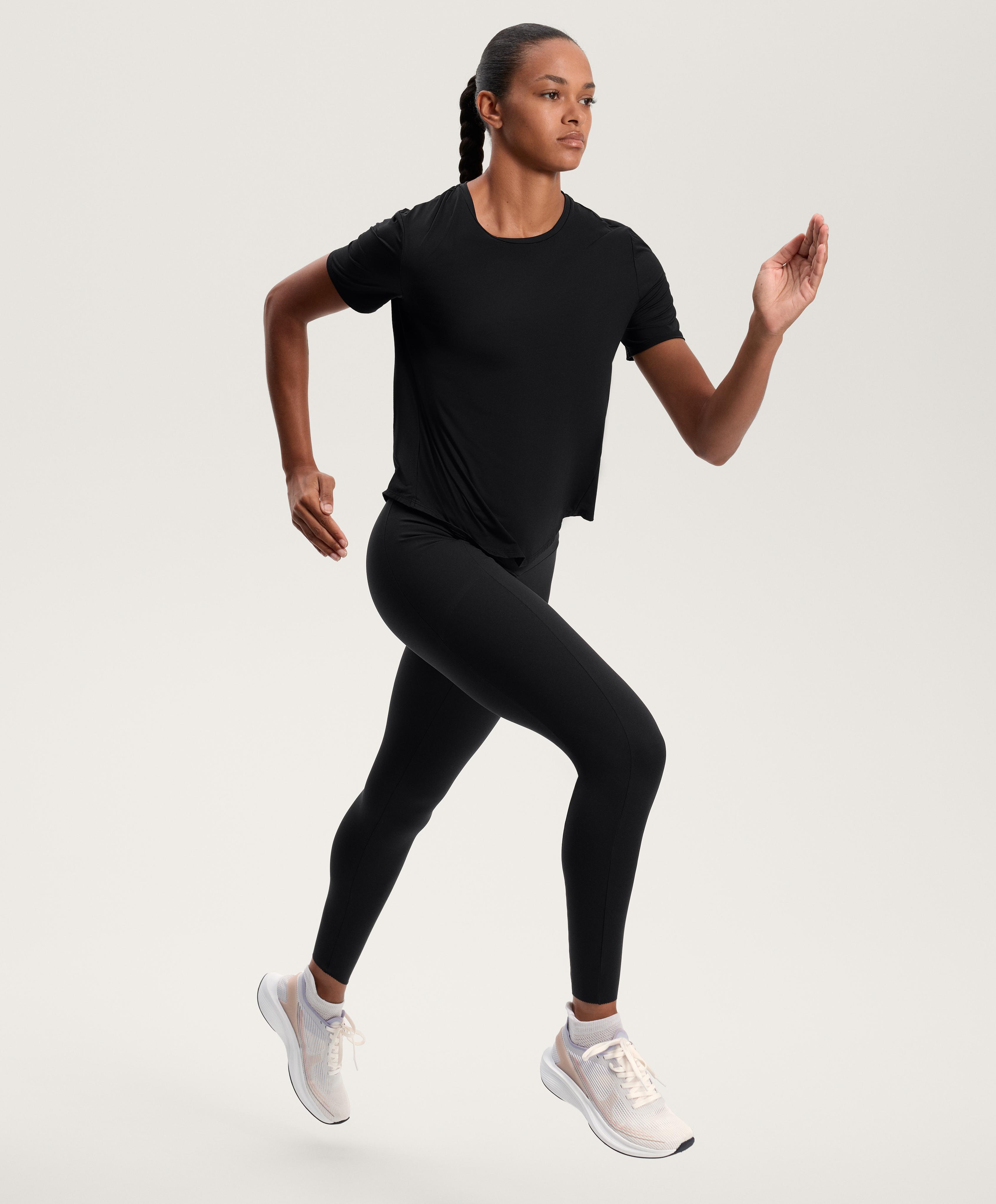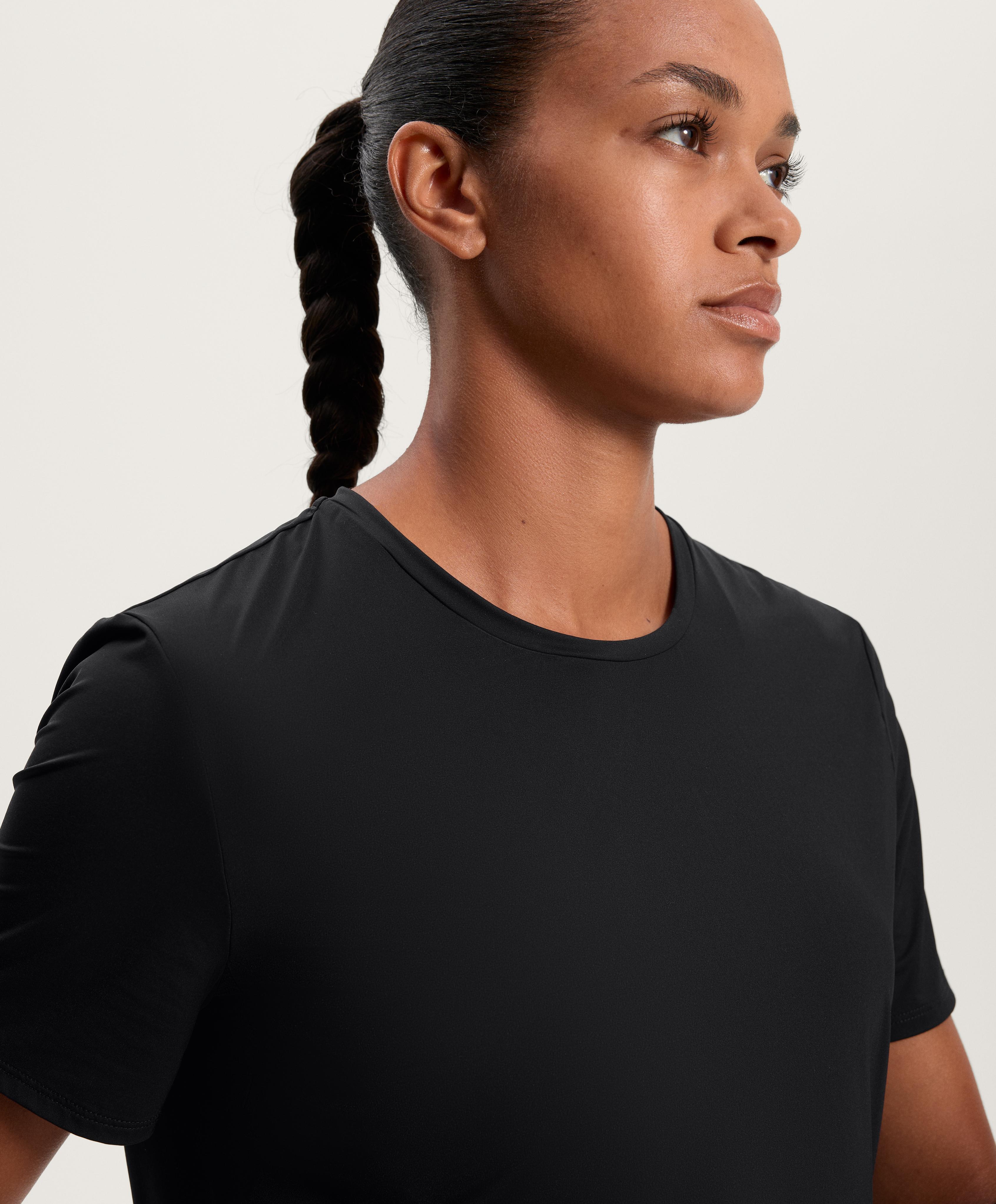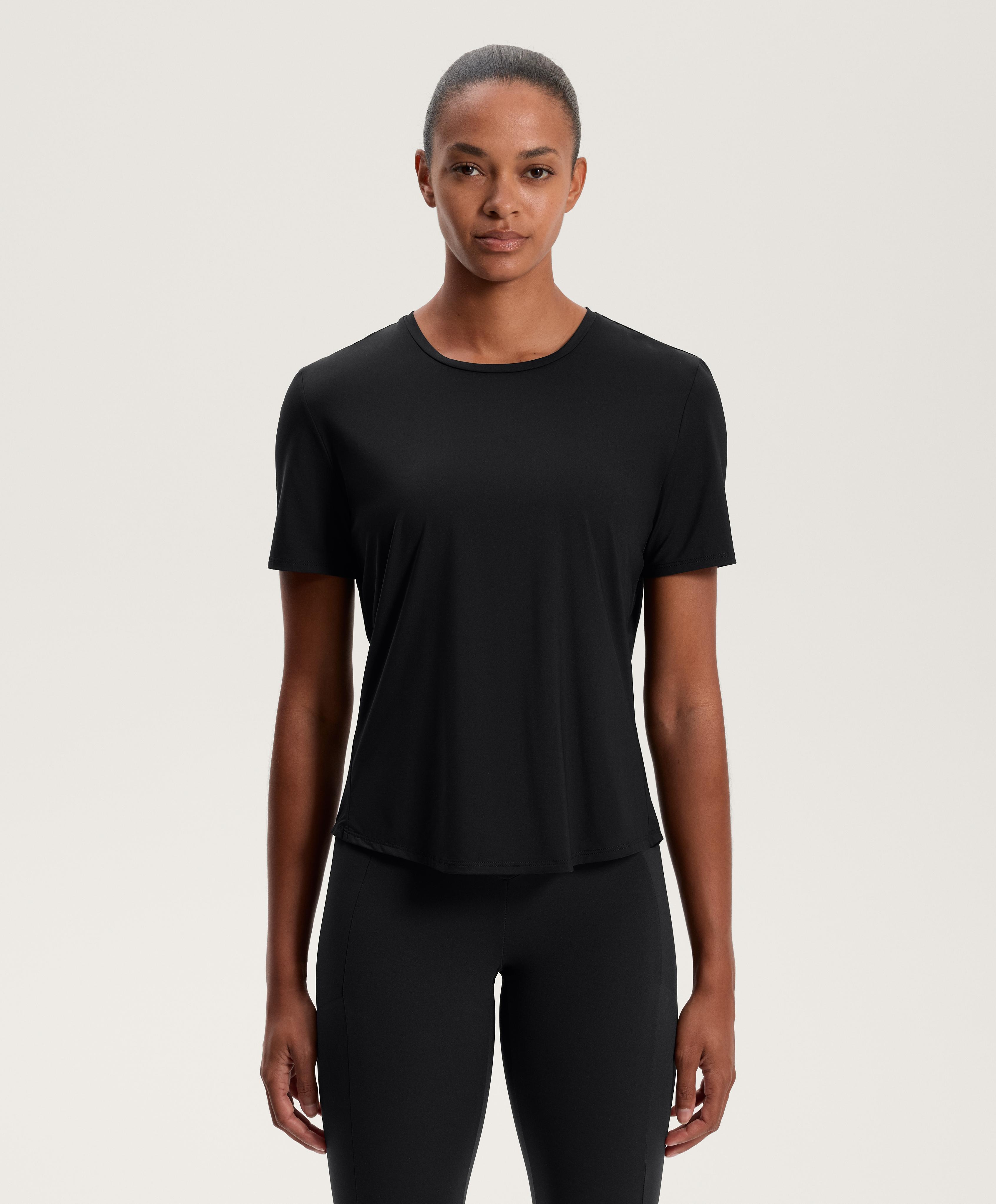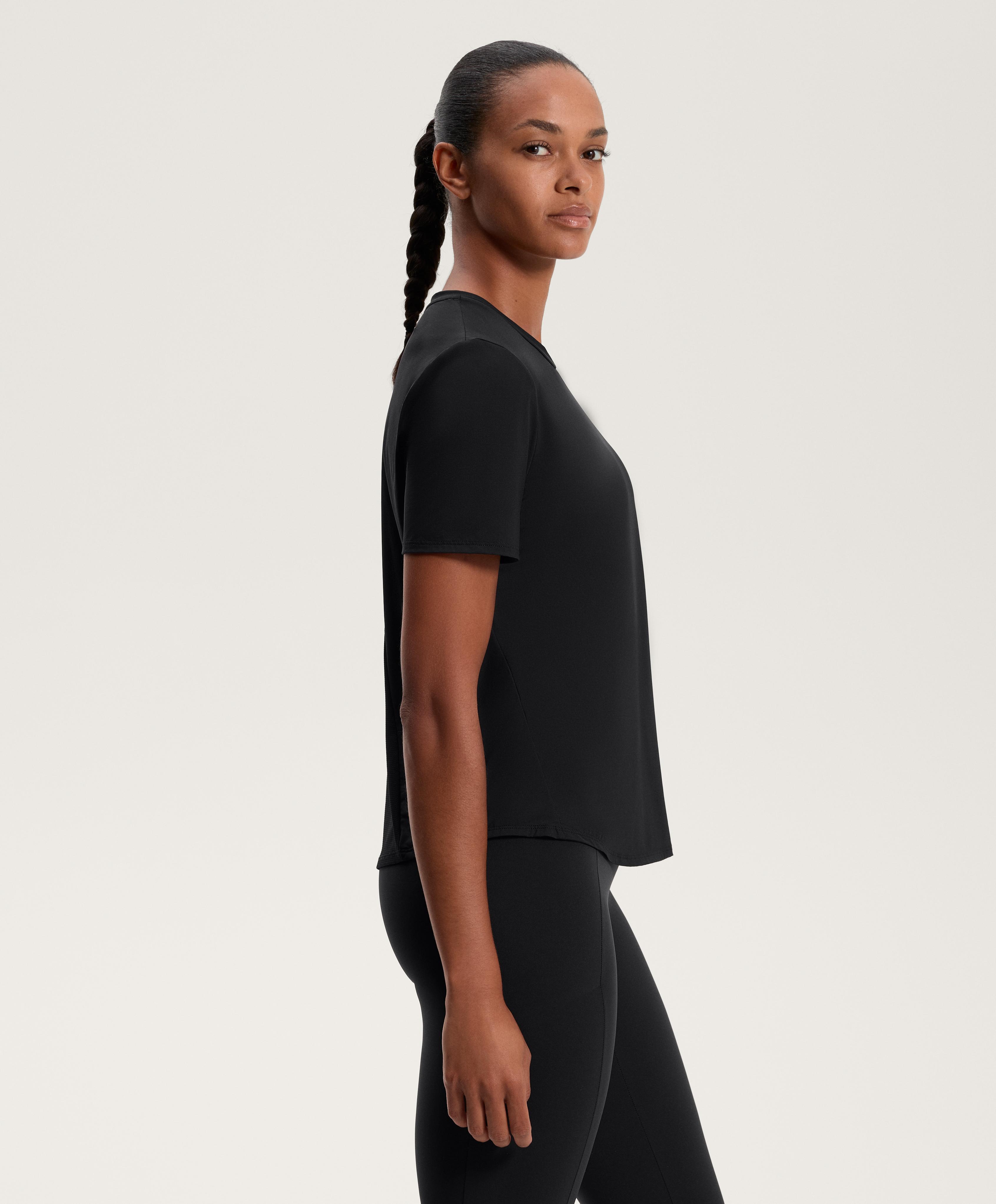 Oysho Футболка из технологичной ткани с короткими рукавами, черный