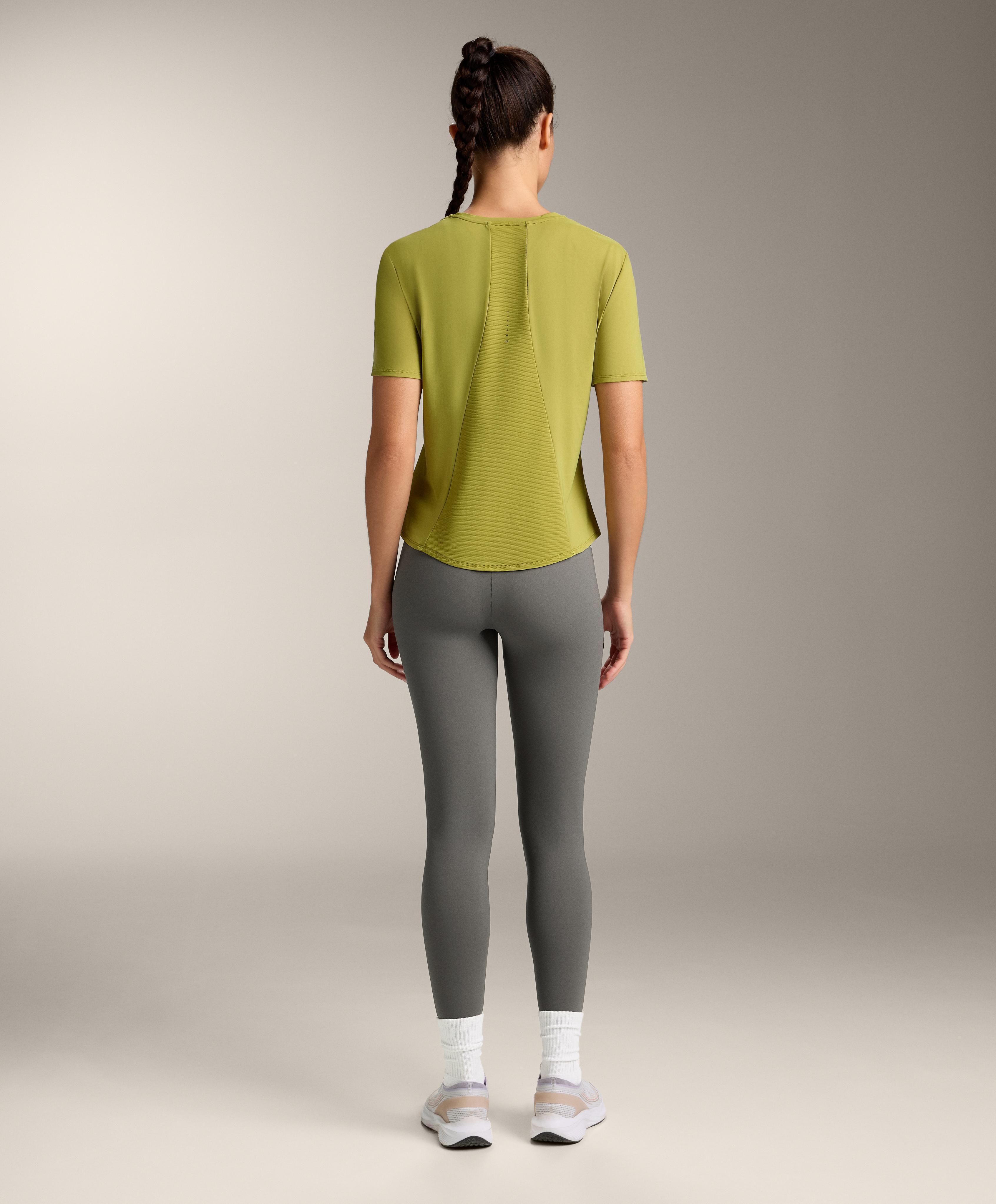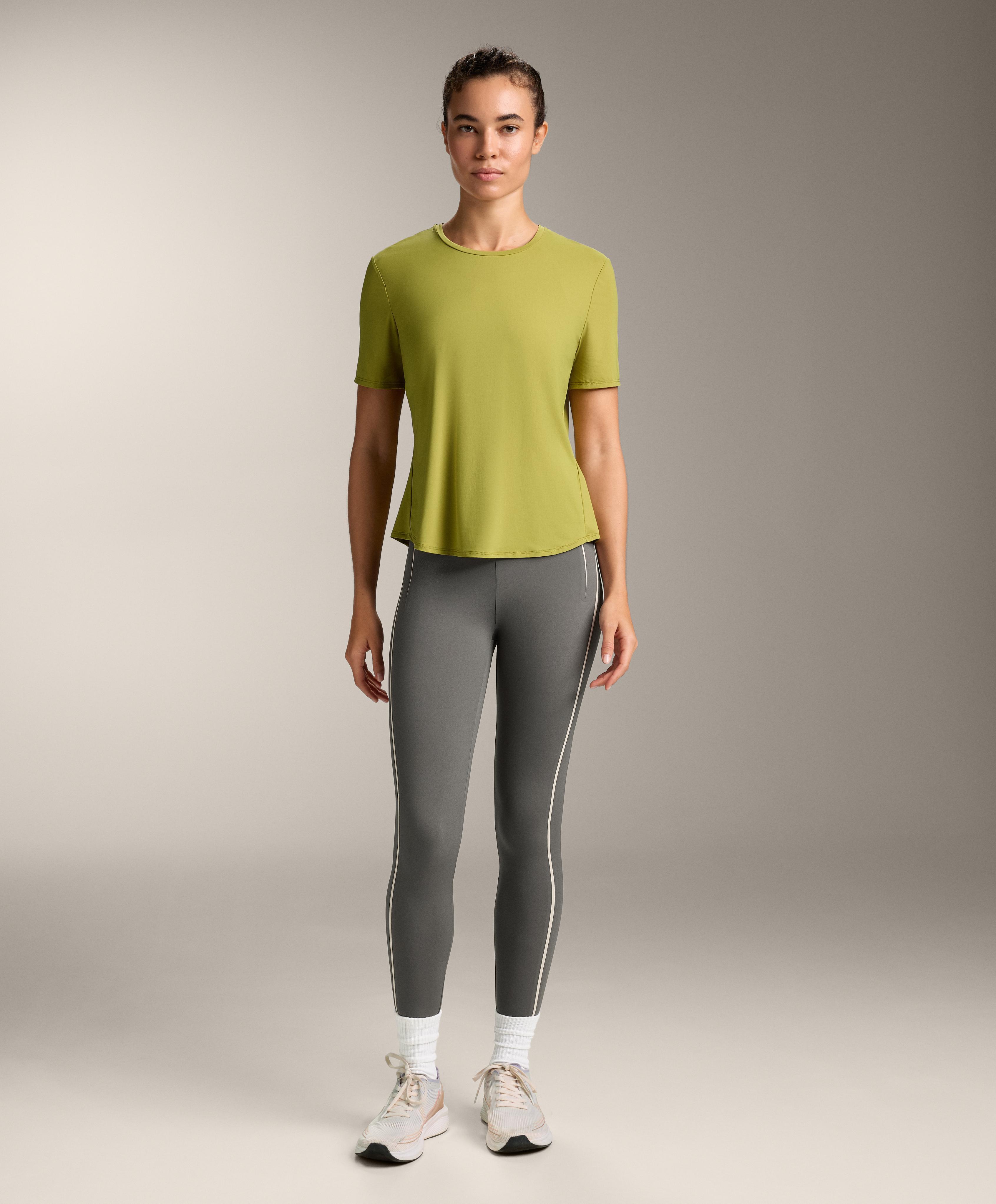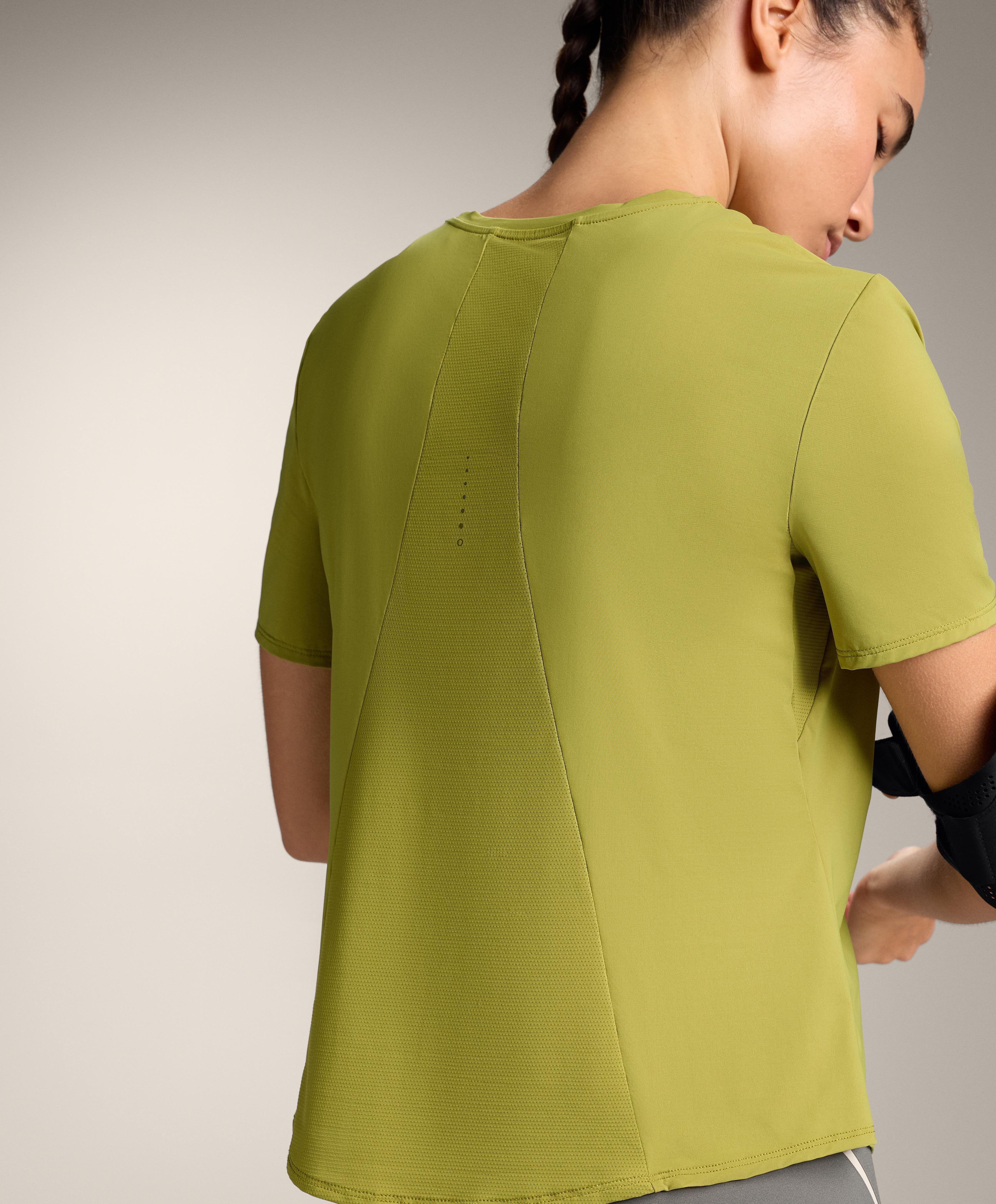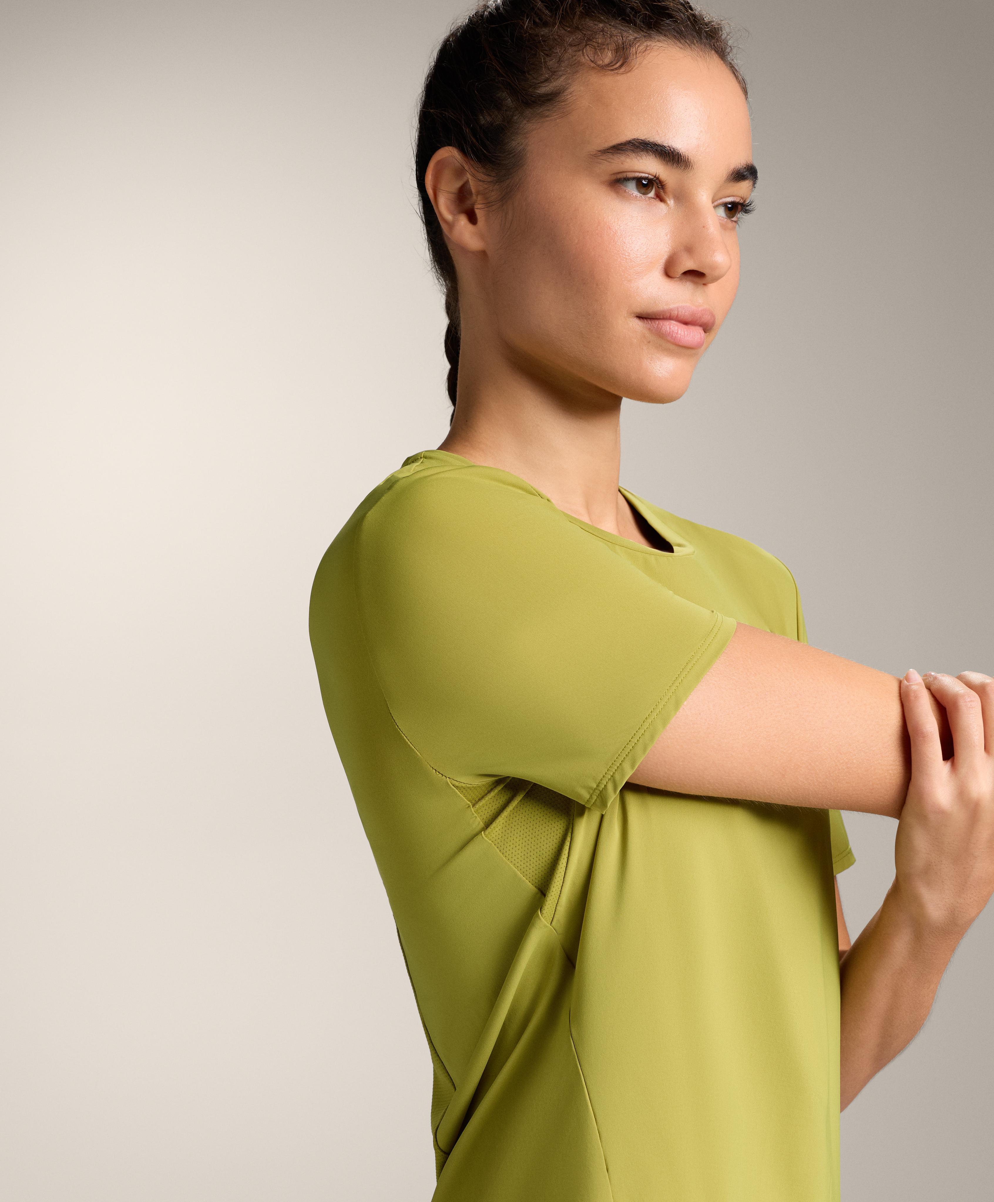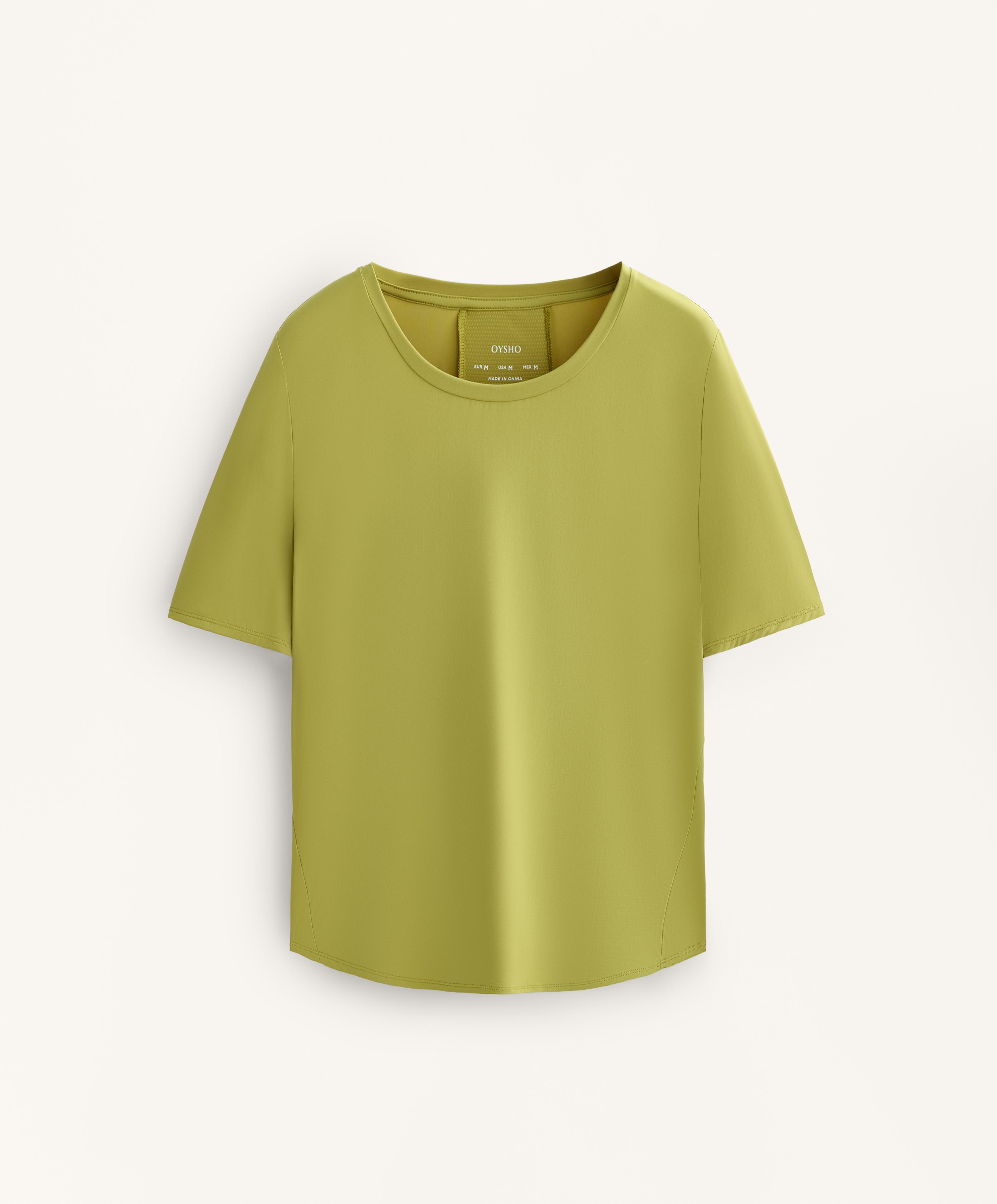 Oysho Футболка из технологичной ткани с короткими рукавами, оливковый