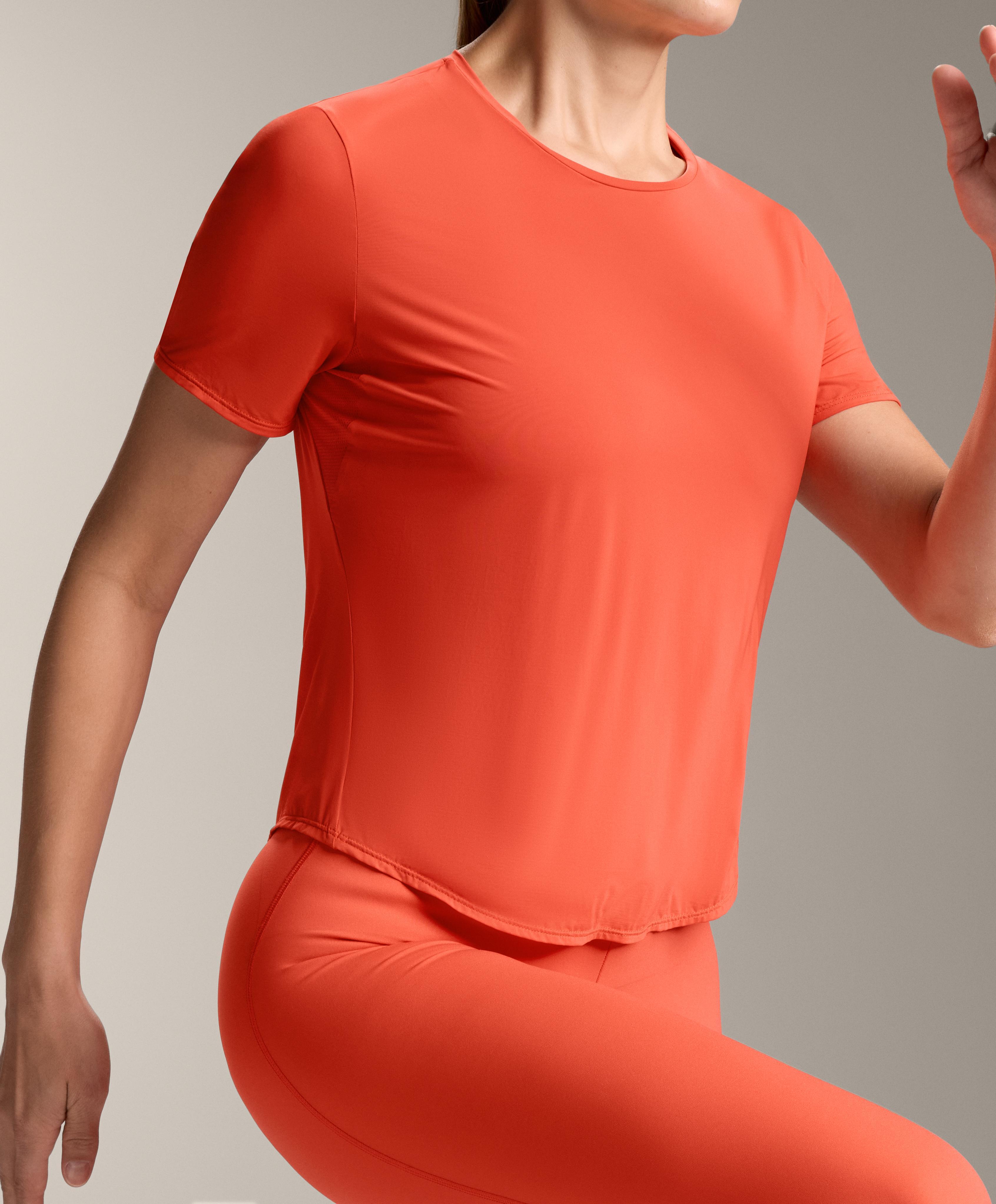 Oysho Футболка из технологичной ткани с короткими рукавами, оранжевый меланж
