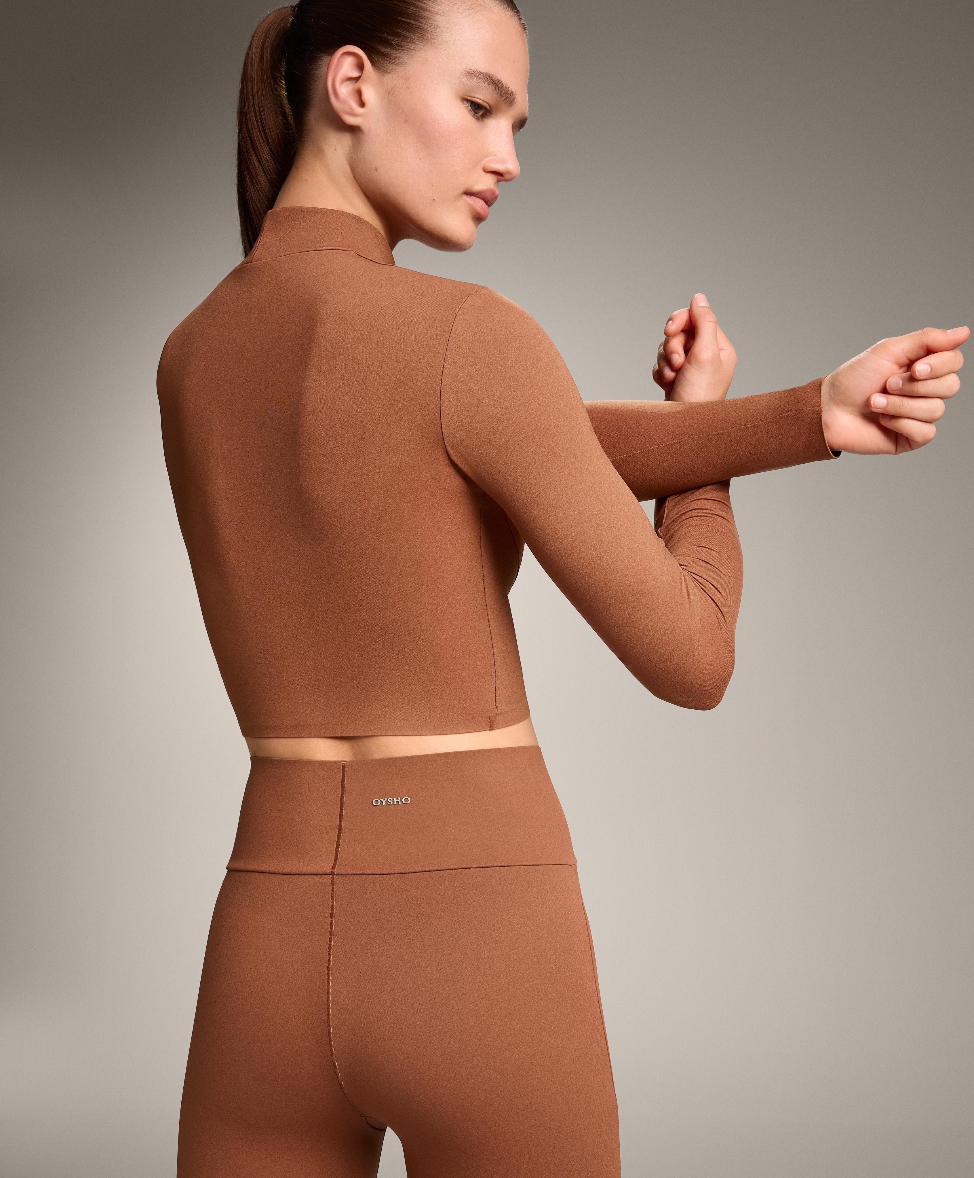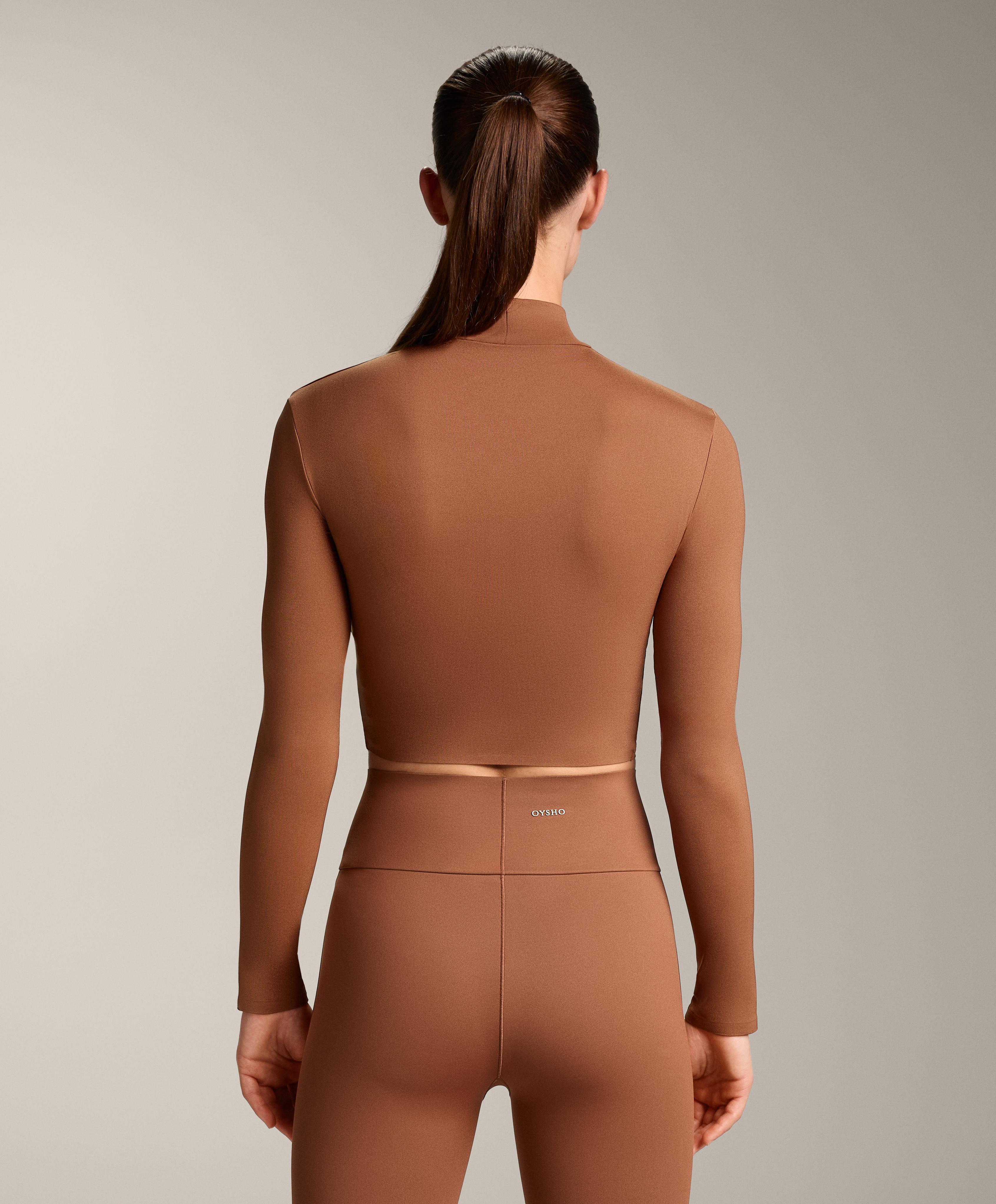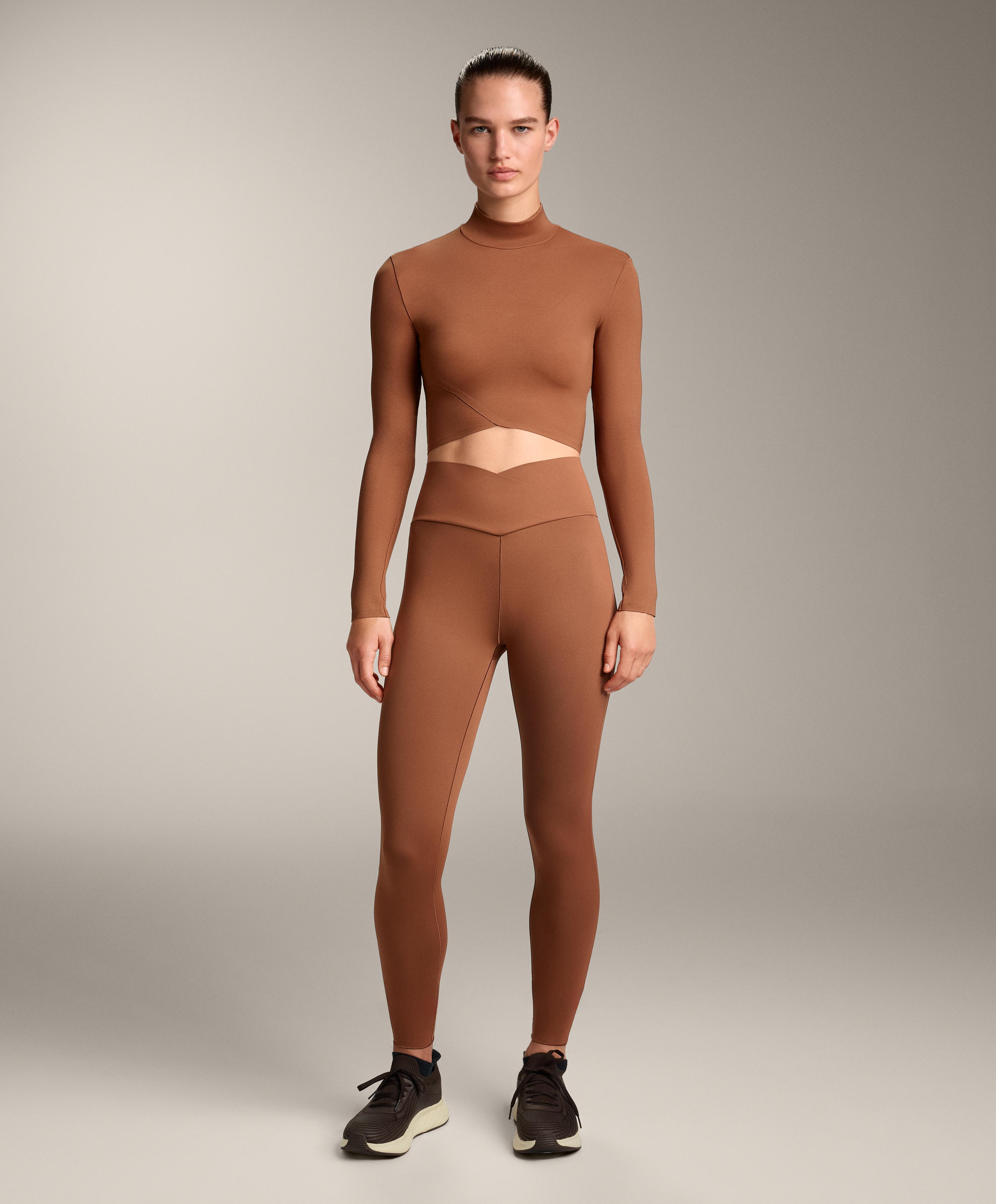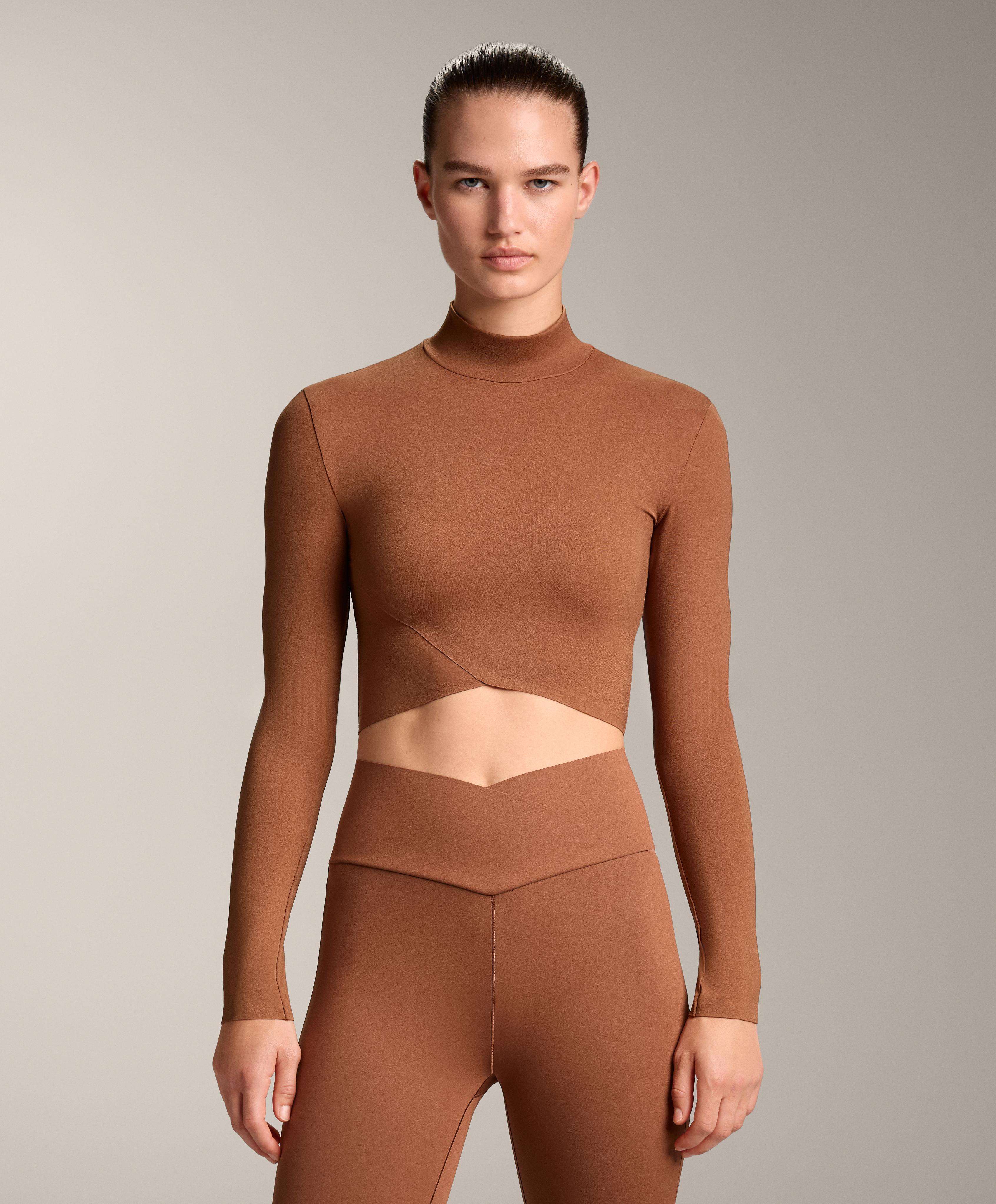 Футболка с длинными рукавами и перекрёстным воротником, идеально подходящая по фигуре. Дышащая и быстросохнущая ткань.