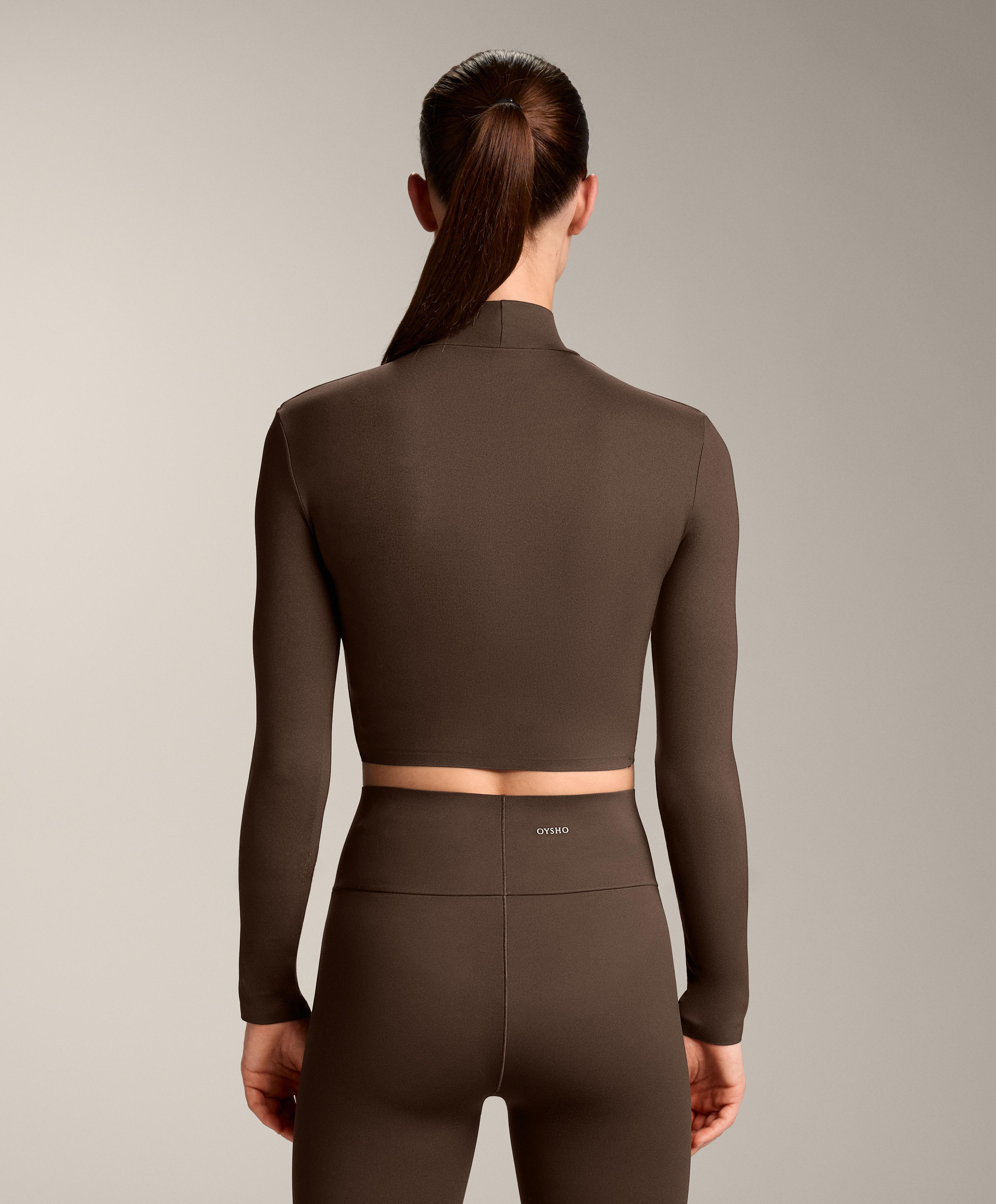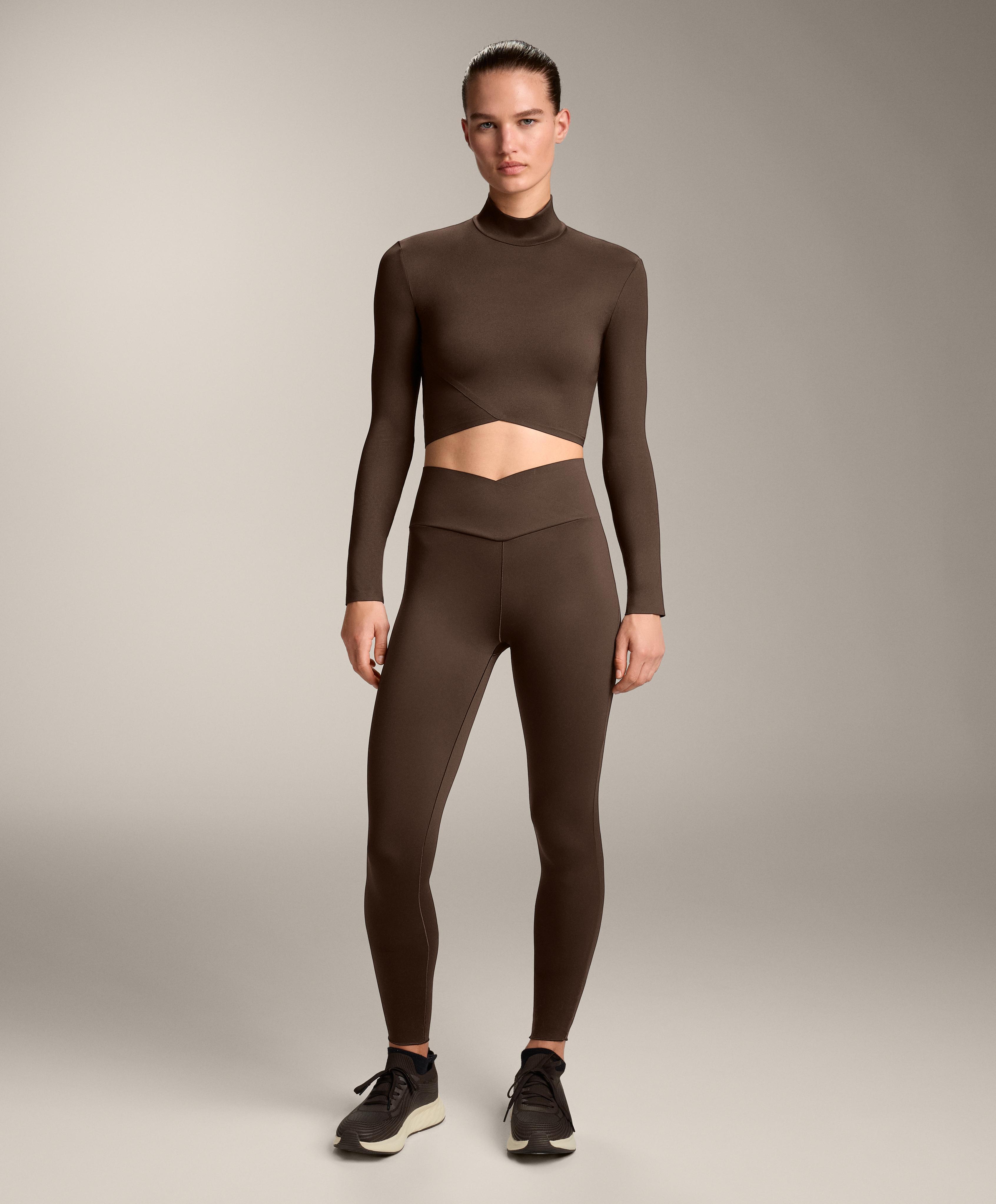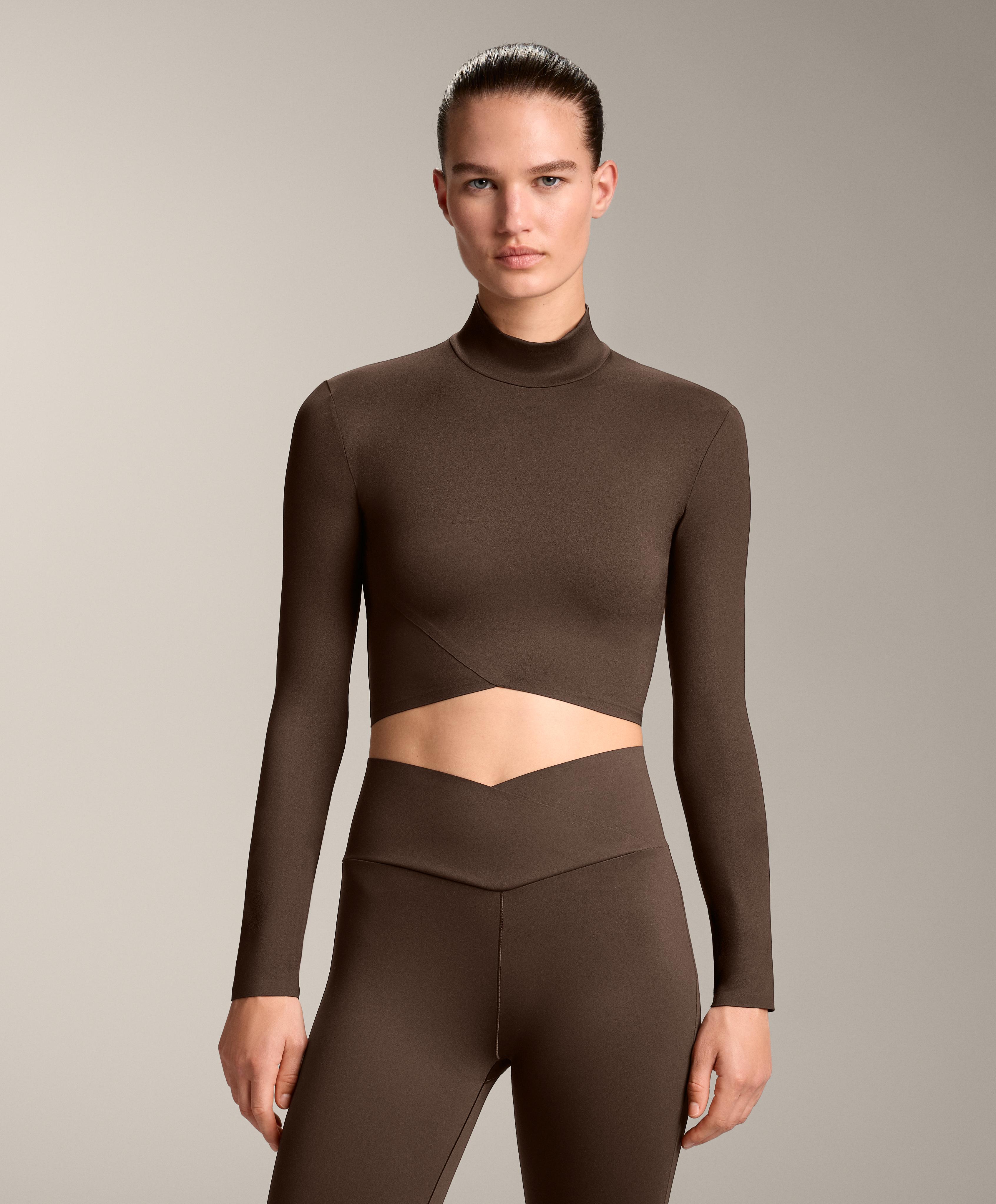 Футболка с длинными рукавами и перекрёстным воротником, идеально подходящая по фигуре. Дышащая и быстросохнущая ткань.
