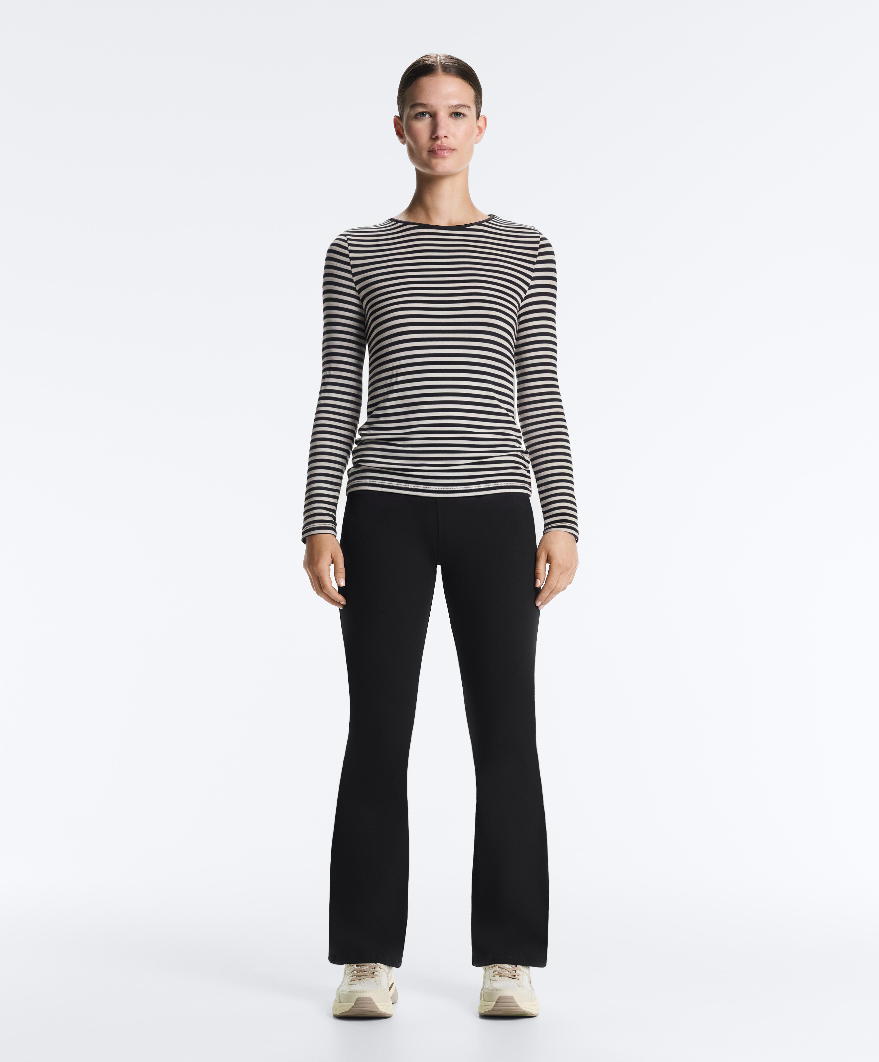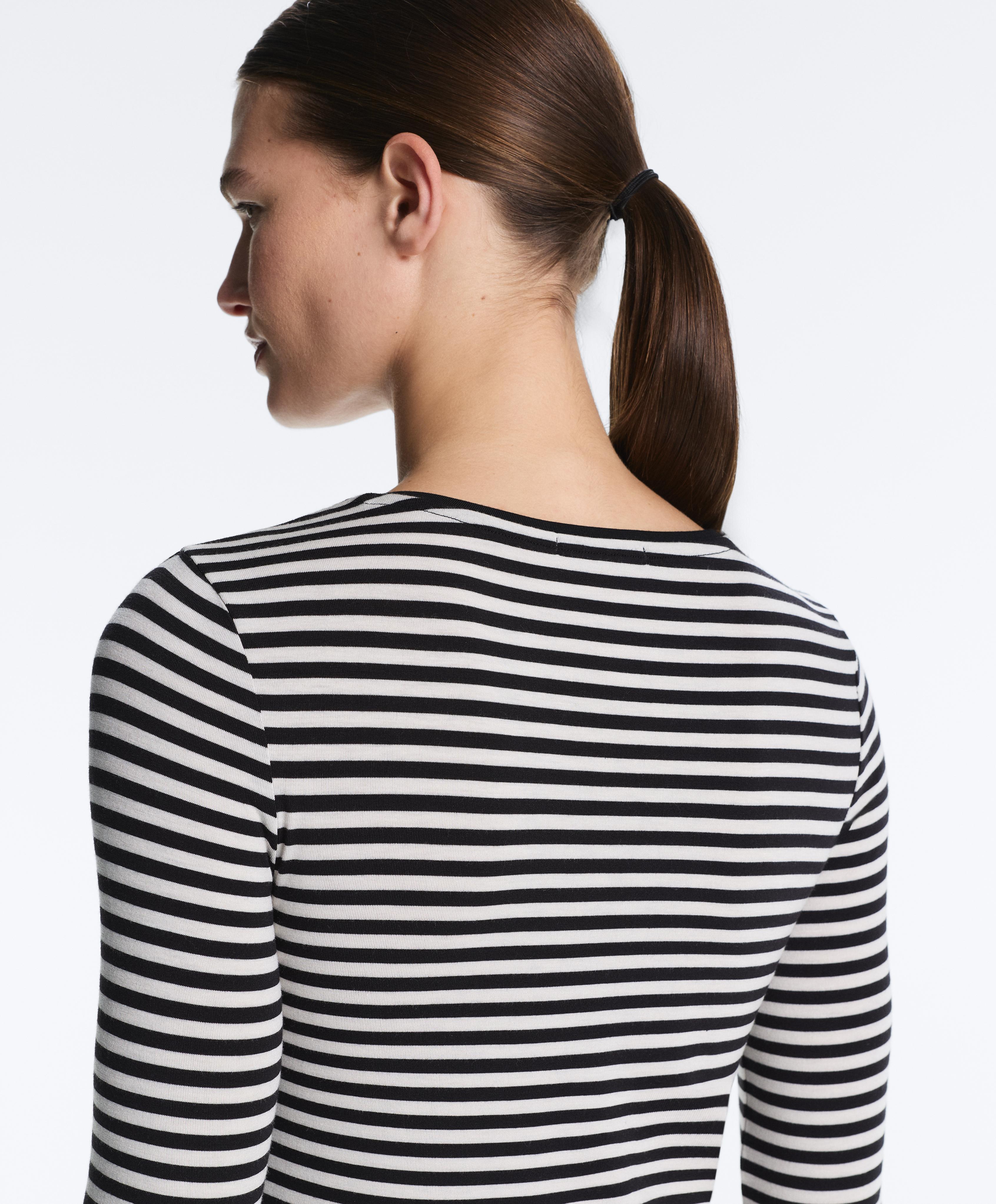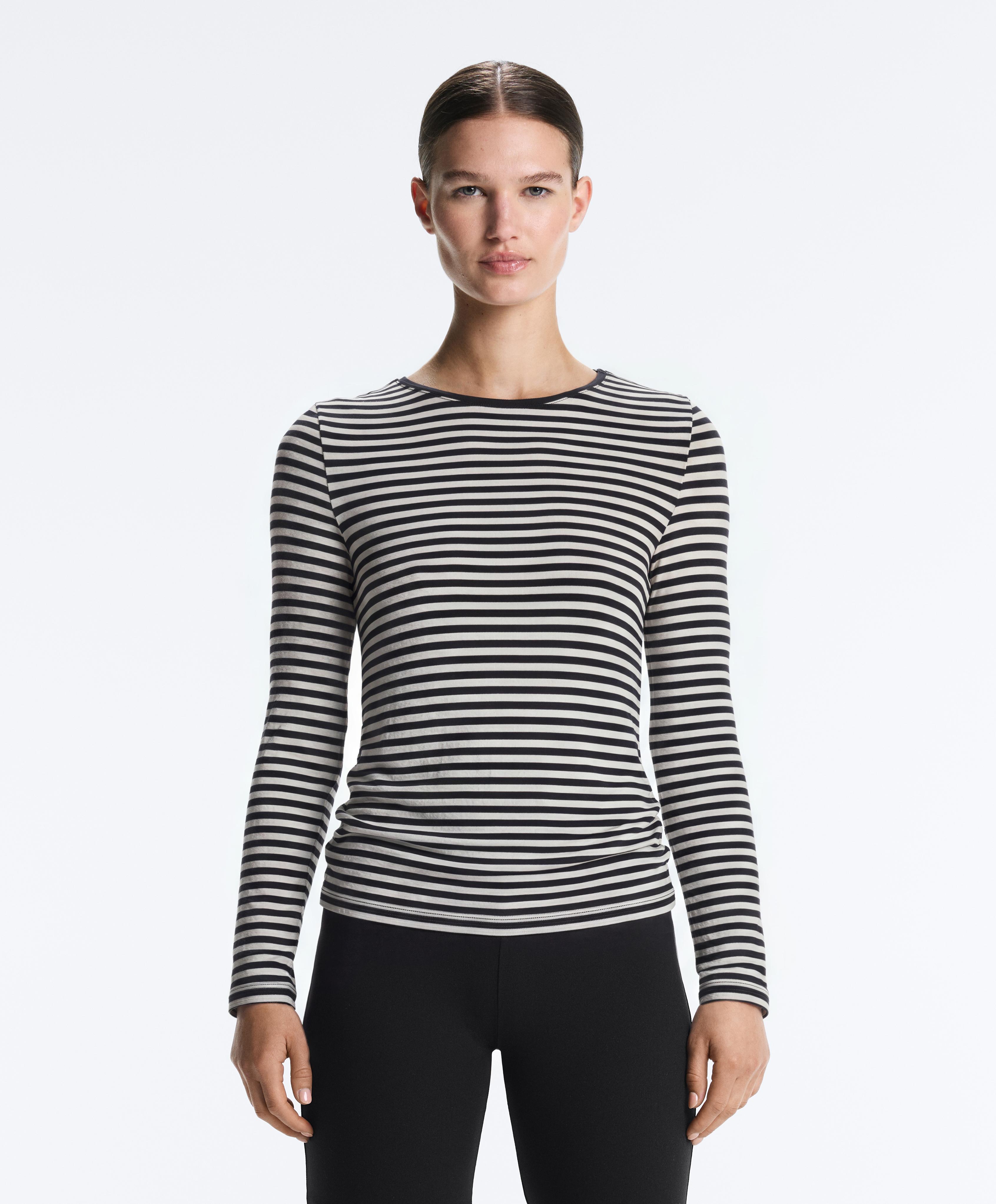 Облегающая футболка в полоску с длинными рукавами и круглым вырезом.