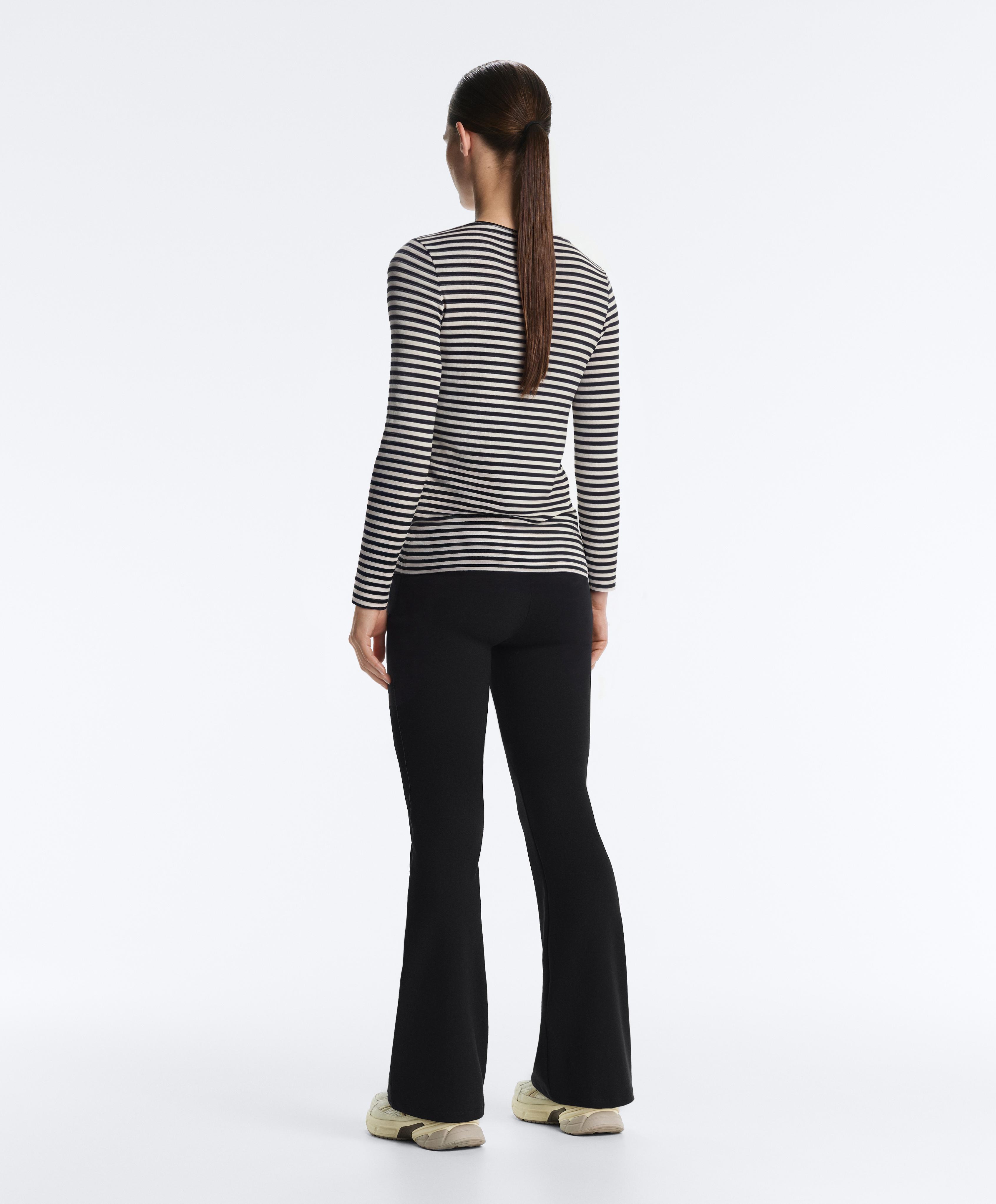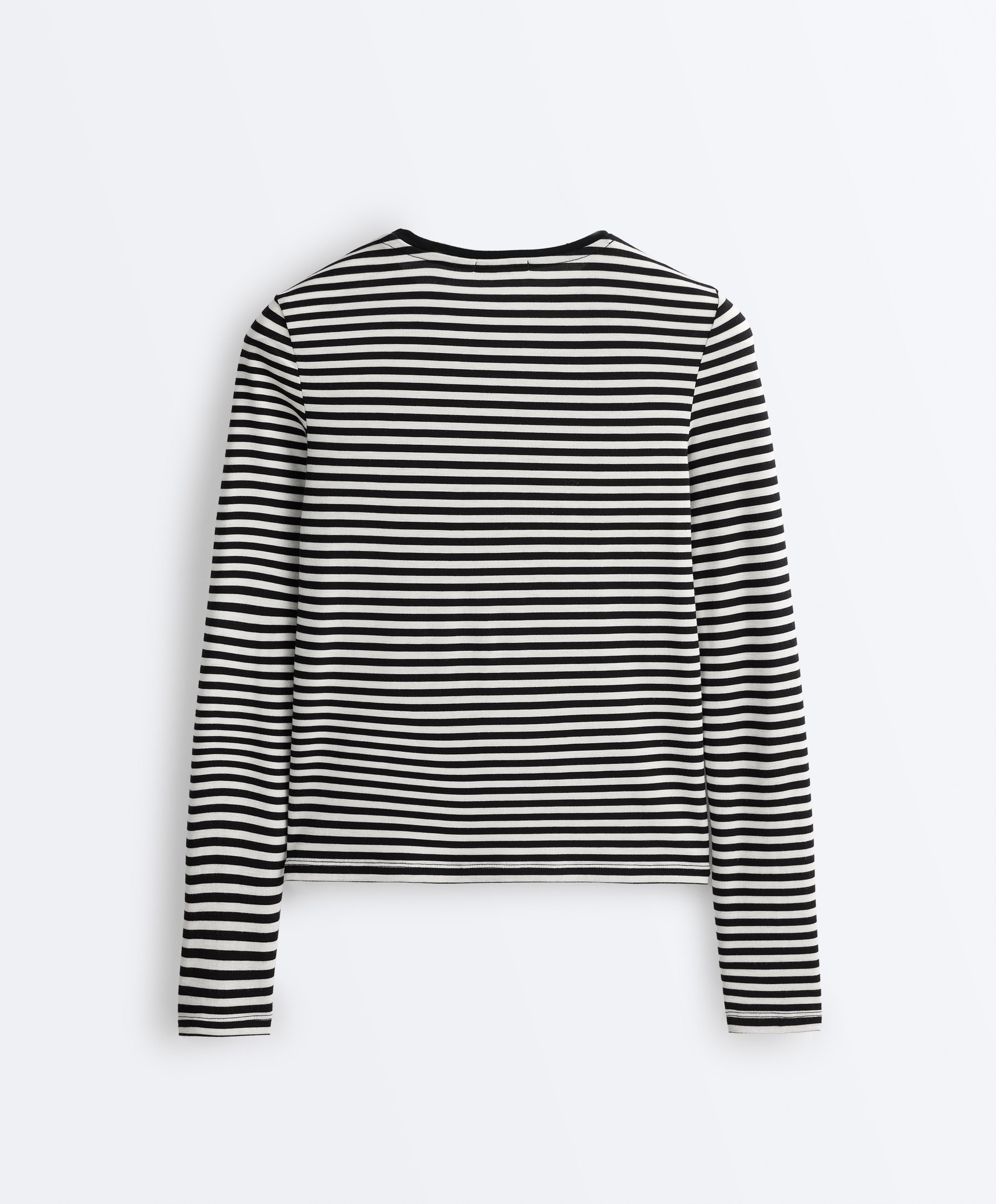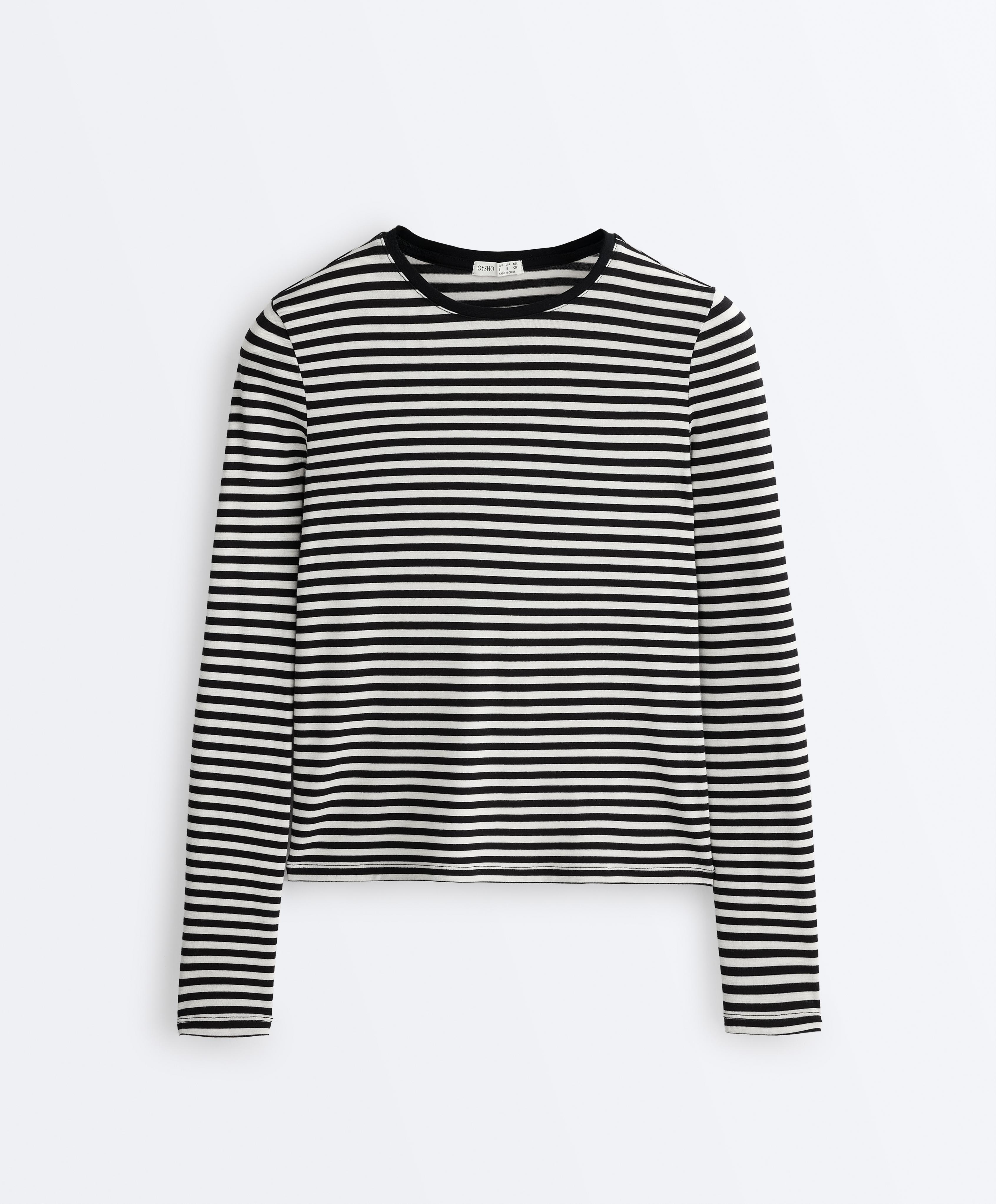 Oysho Футболка с длинным рукавом в полоску, облегающий крой, черный