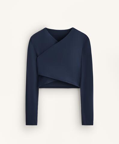 Майка Comfortlux с длинными рукавами и встроенным бюстгальтером. Вырез горловины перекрестный. Дышащая, высокопрочная ткань, быстросохнущая.