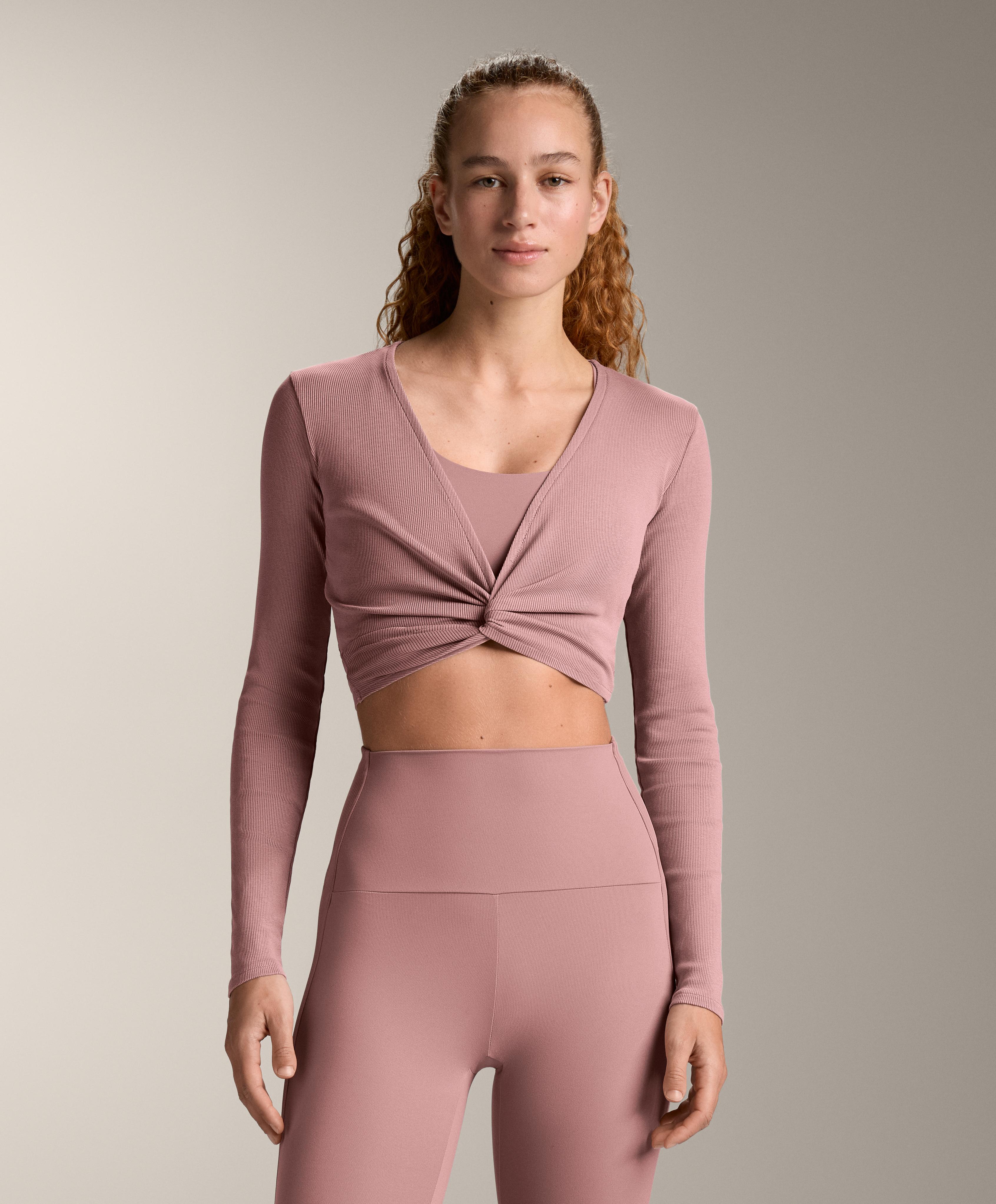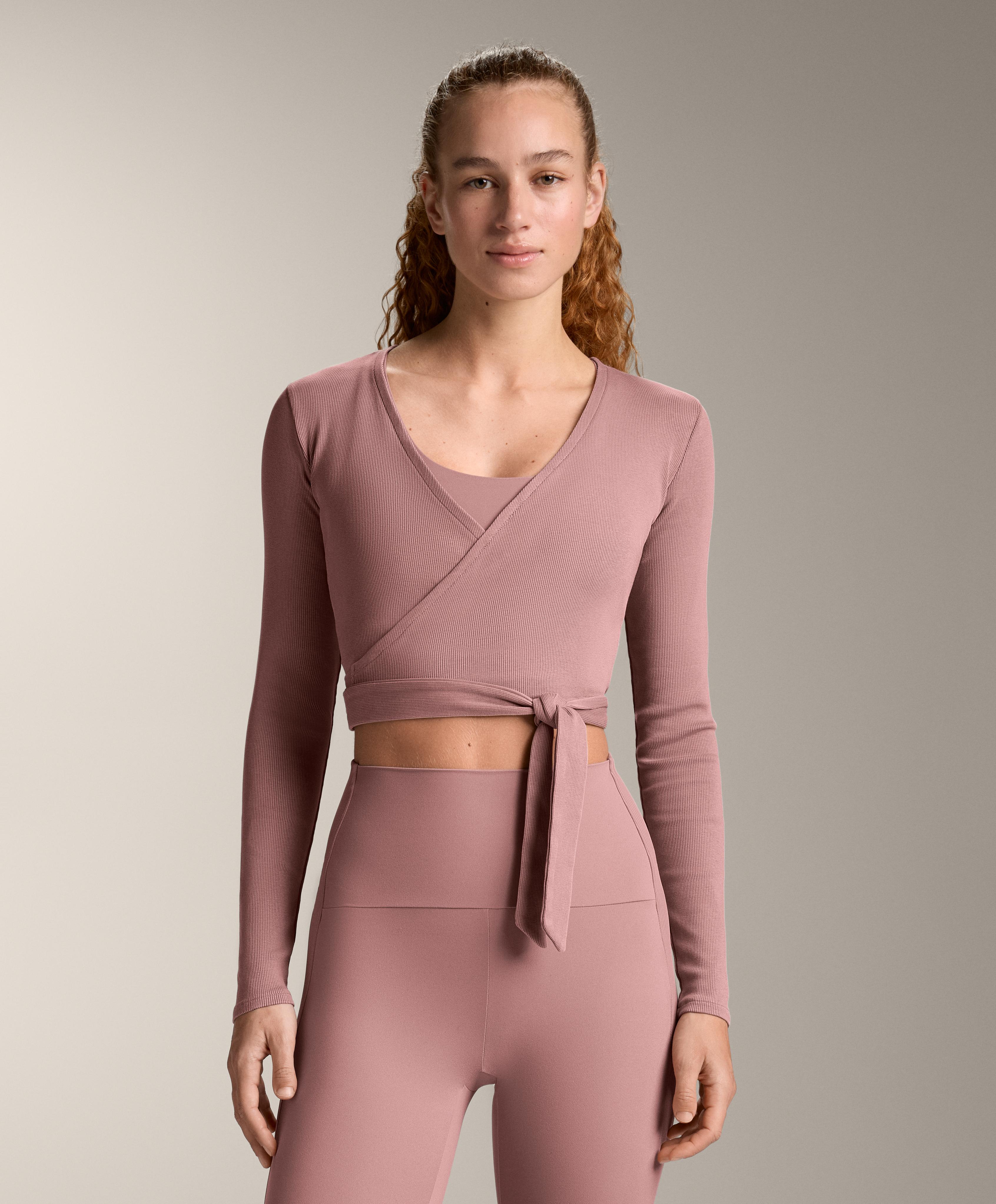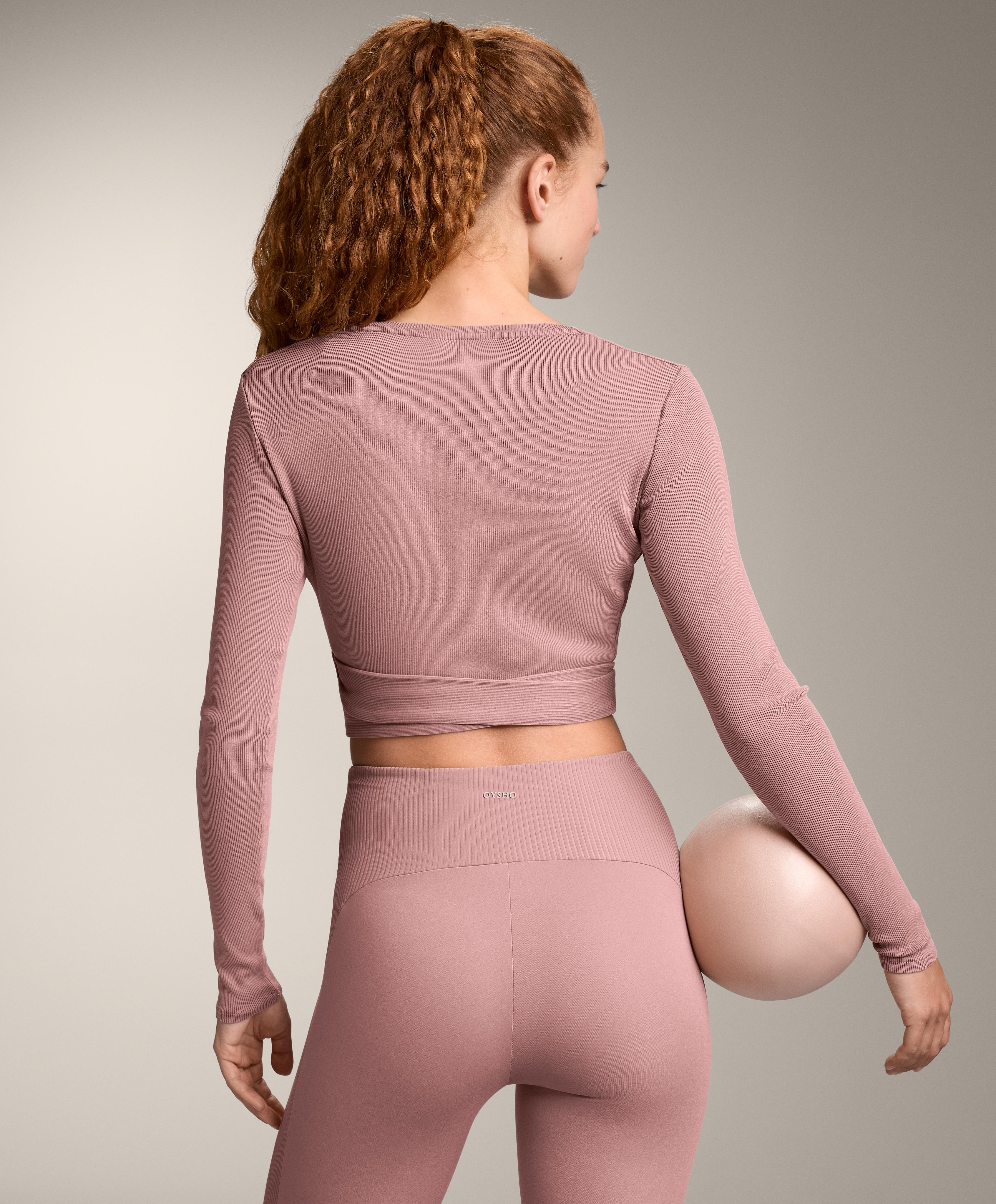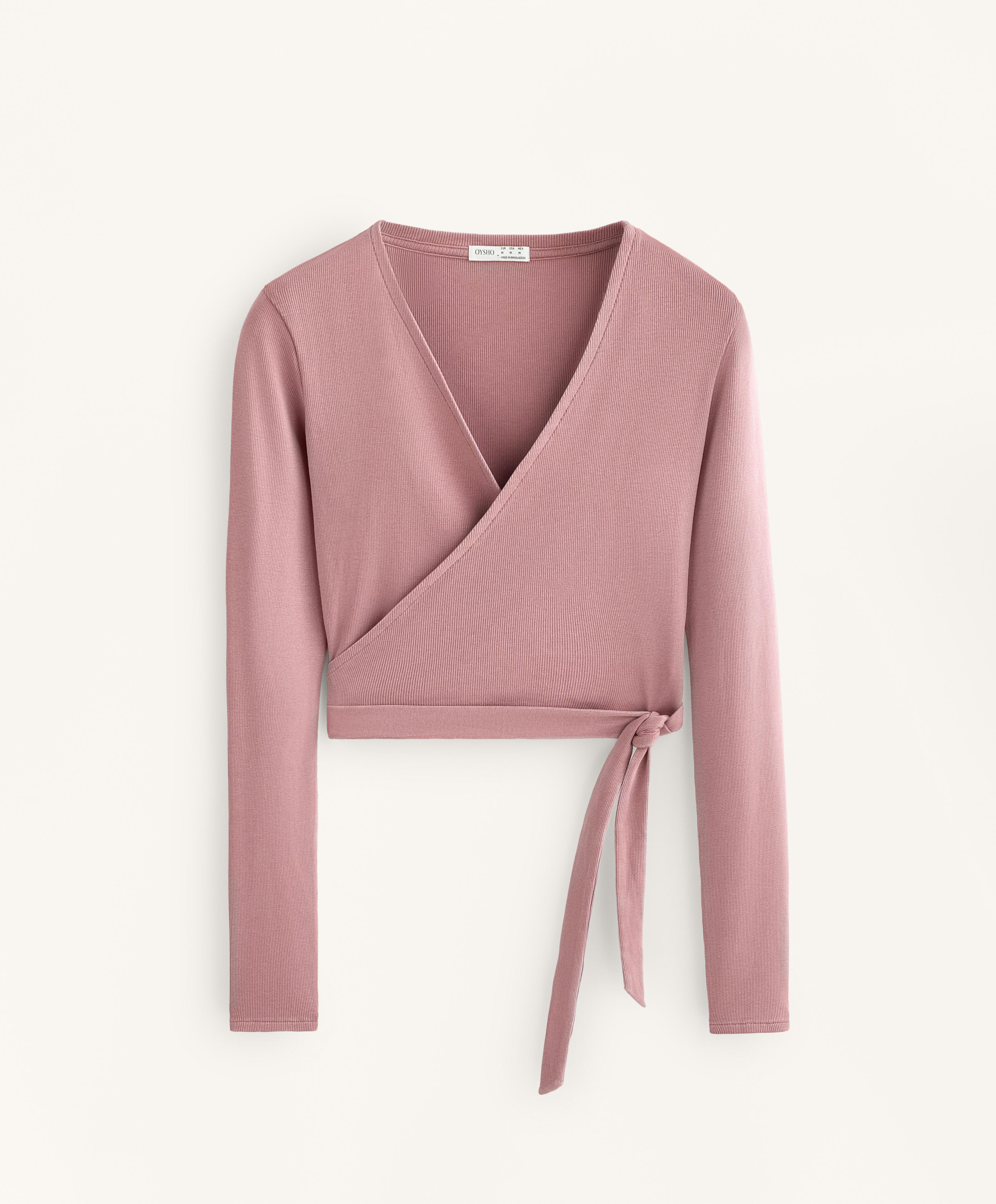 Oysho Футболка с длинными рукавами на запахе, розовый
