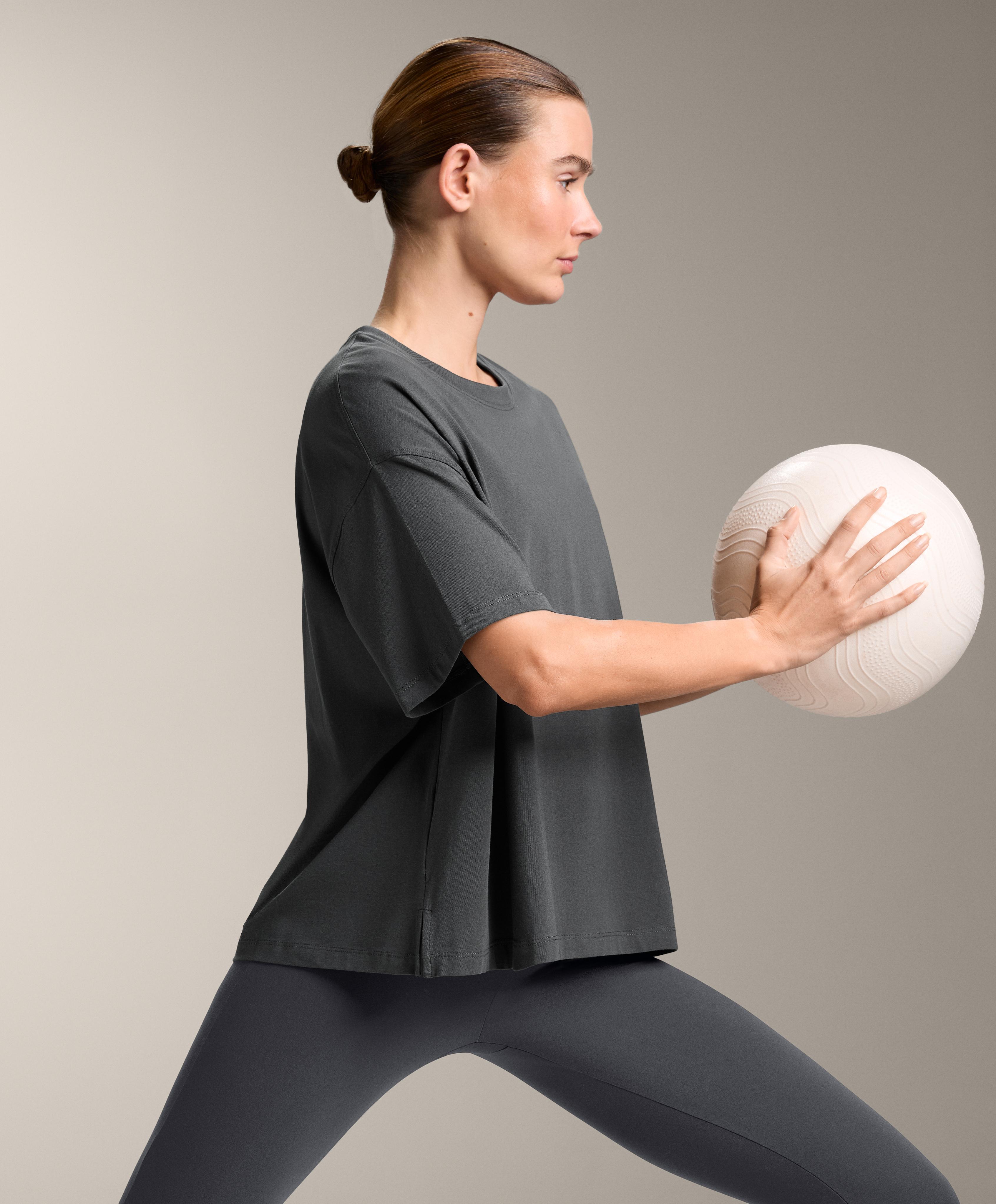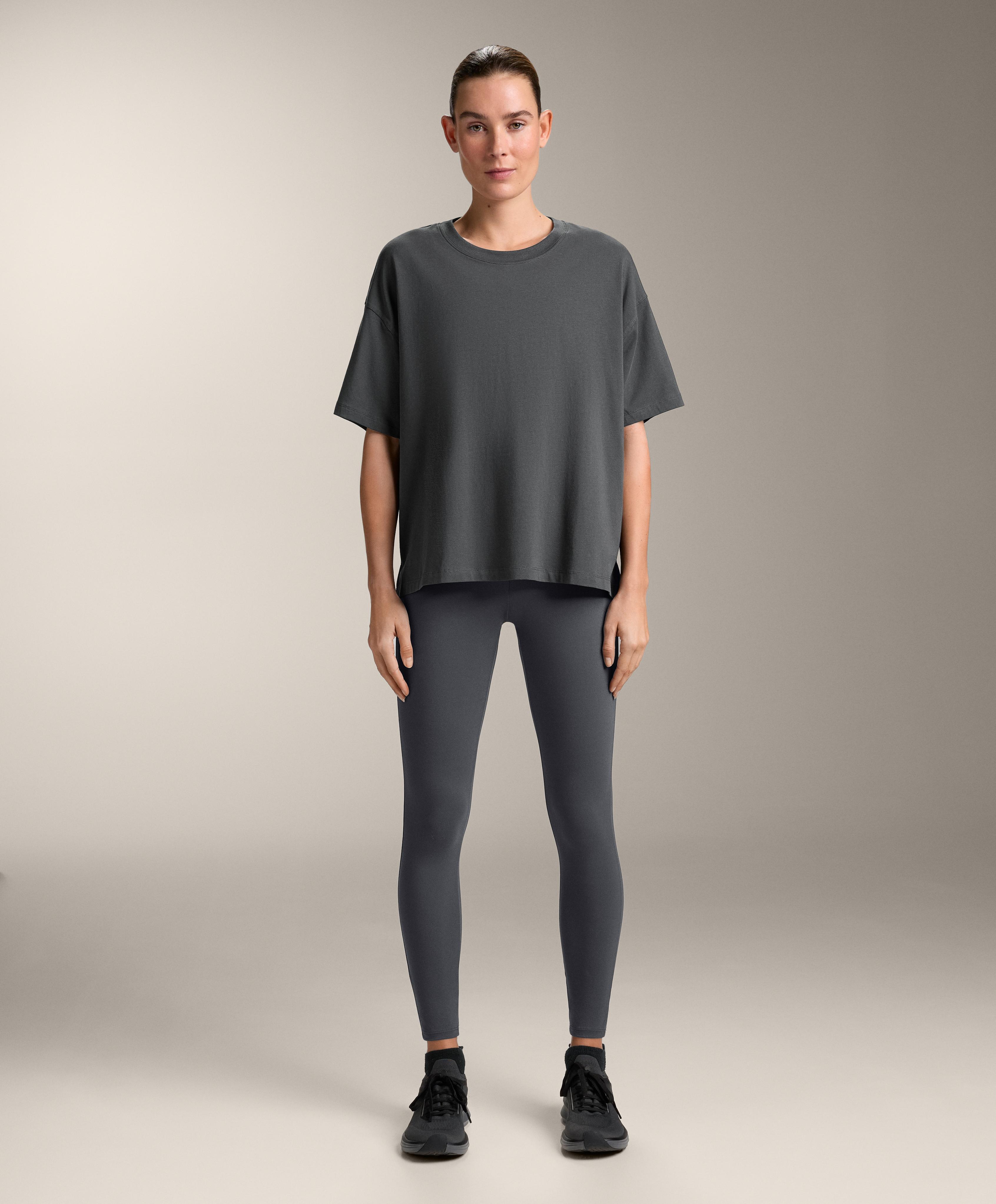 Oysho Футболка с короткими рукавами из смесового хлопка, антрацитовый
