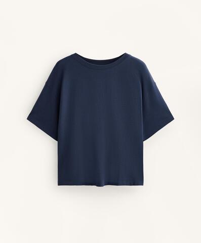 Oysho Футболка с короткими рукавами из смесового хлопка, синий