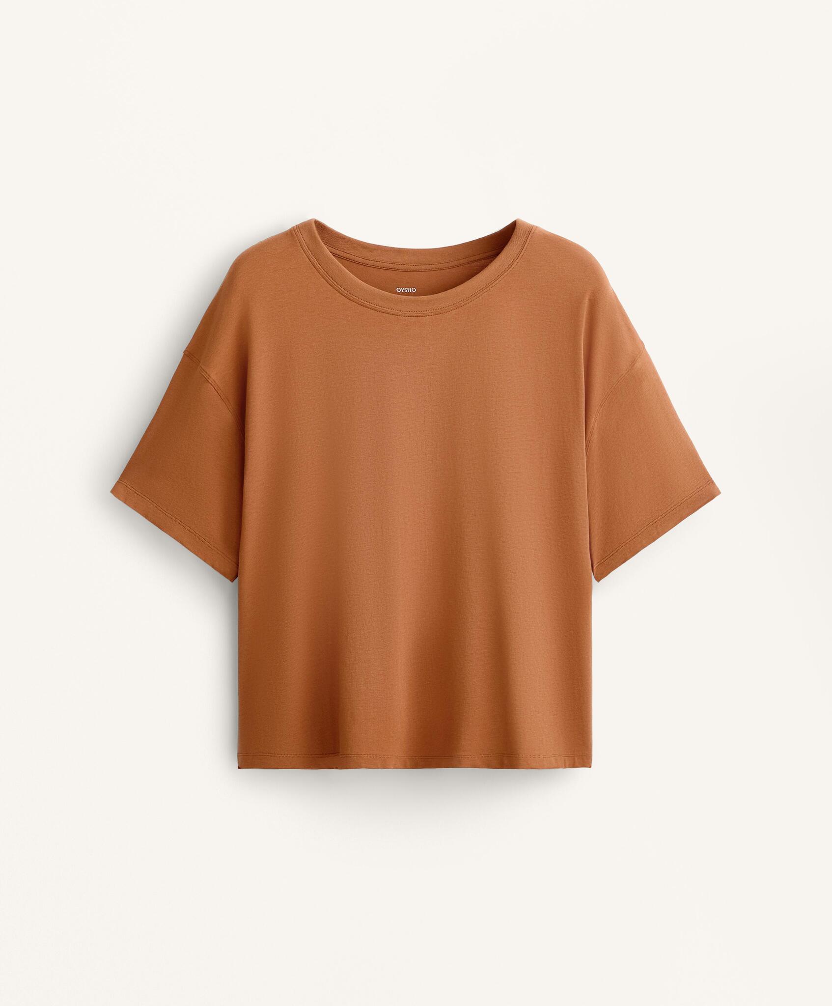 Oysho Футболка с короткими рукавами из смесового хлопка, цвет жженого апельсина