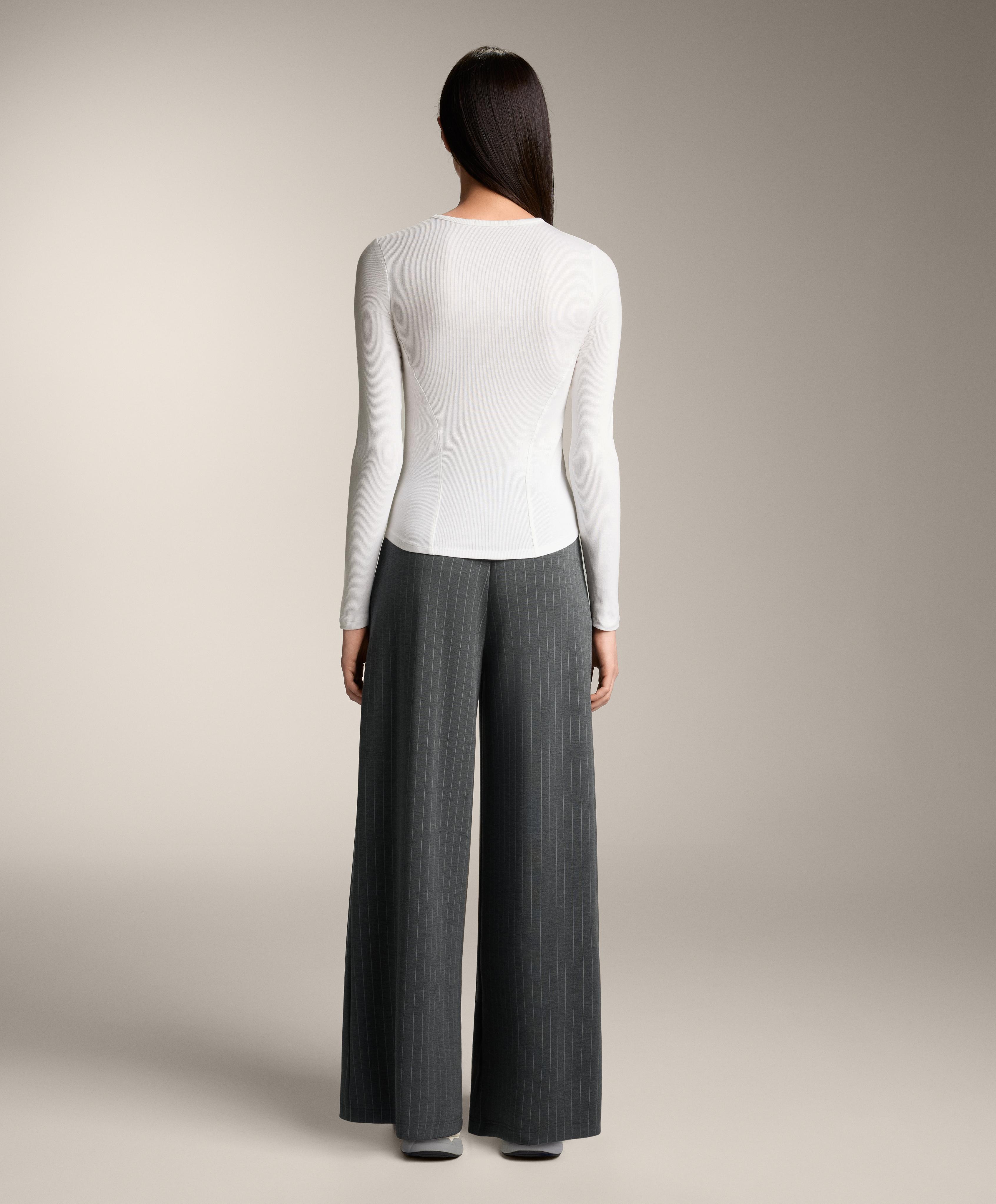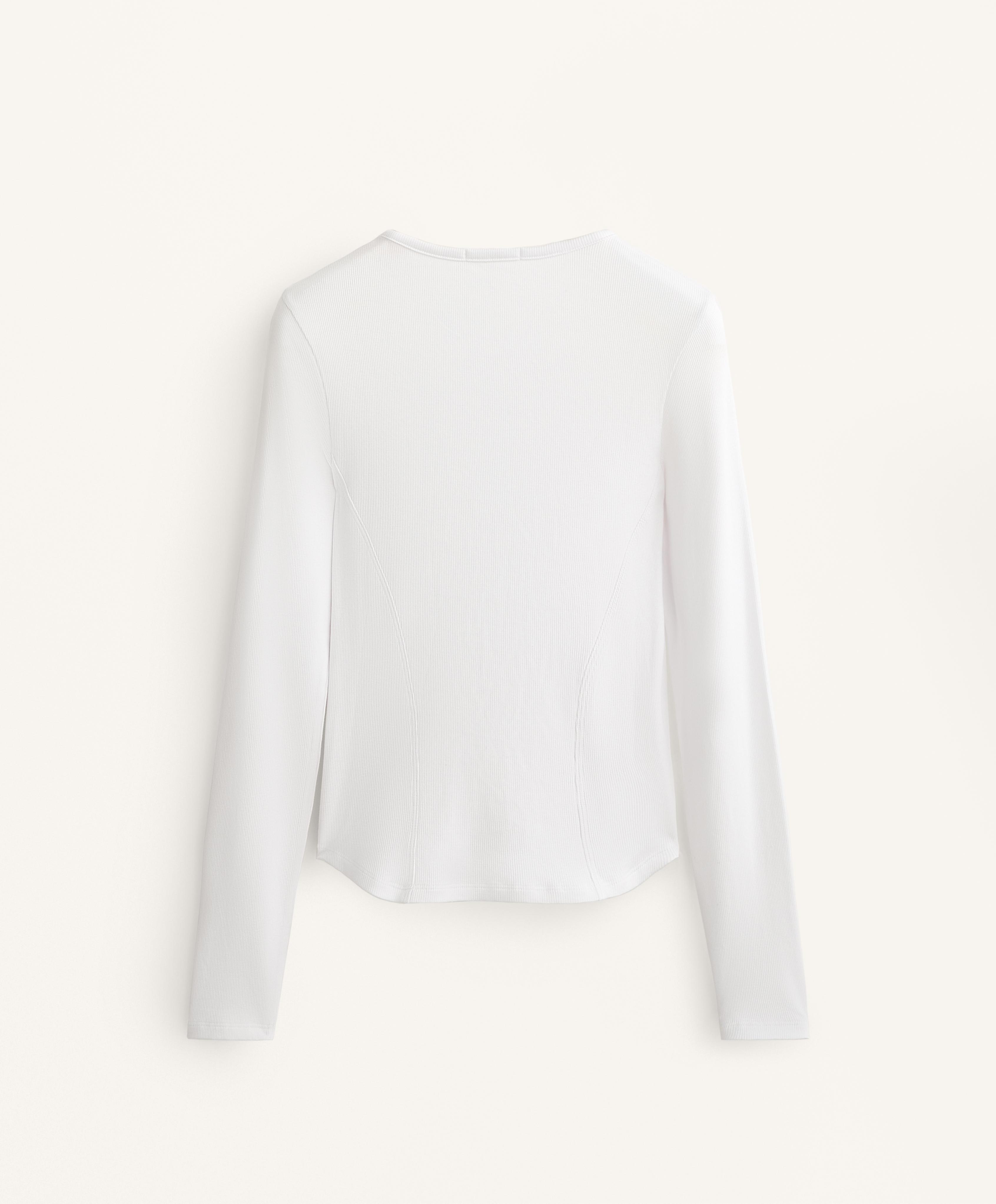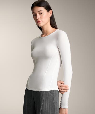 Облегающая футболка с длинными рукавами и круглым вырезом. Деталь швов на боку. Трикотажная ткань в рубчик из хлопка и модала.