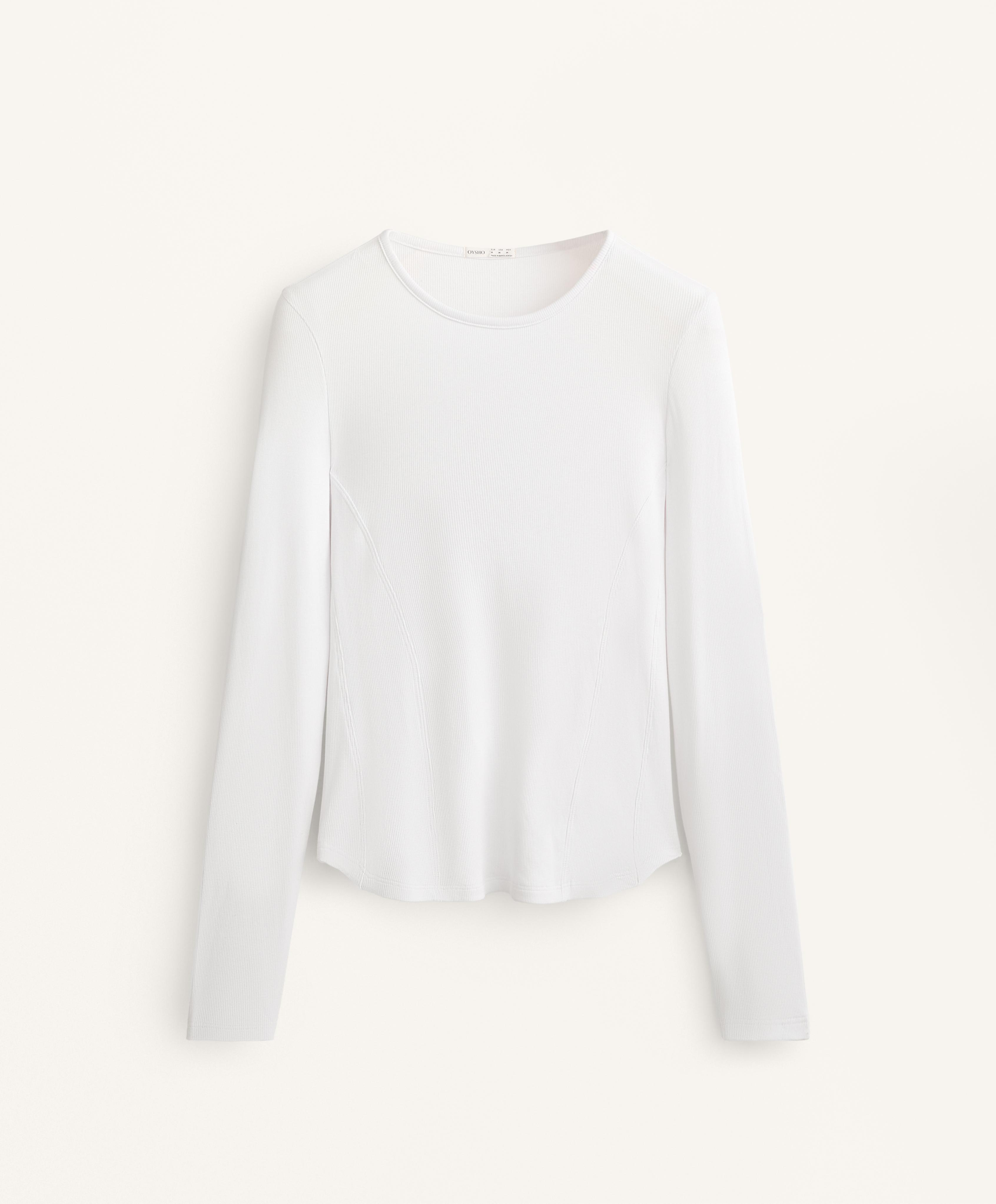 Oysho Футболка в рубчик с длинными рукавами из хлопка и модала, белый