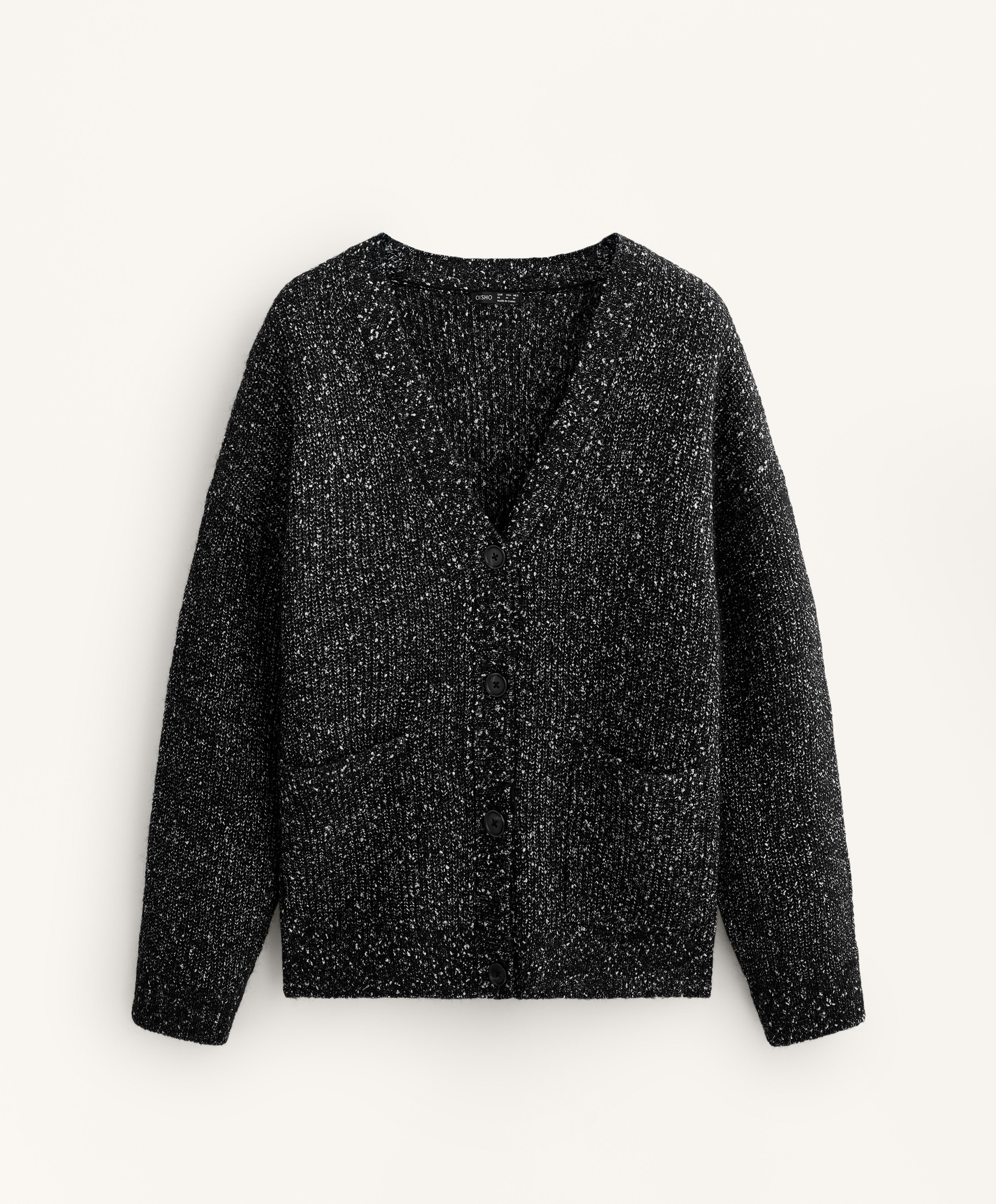 Oysho Кардиган с V-образным вырезом из непсов и 27% шерсти, черный
