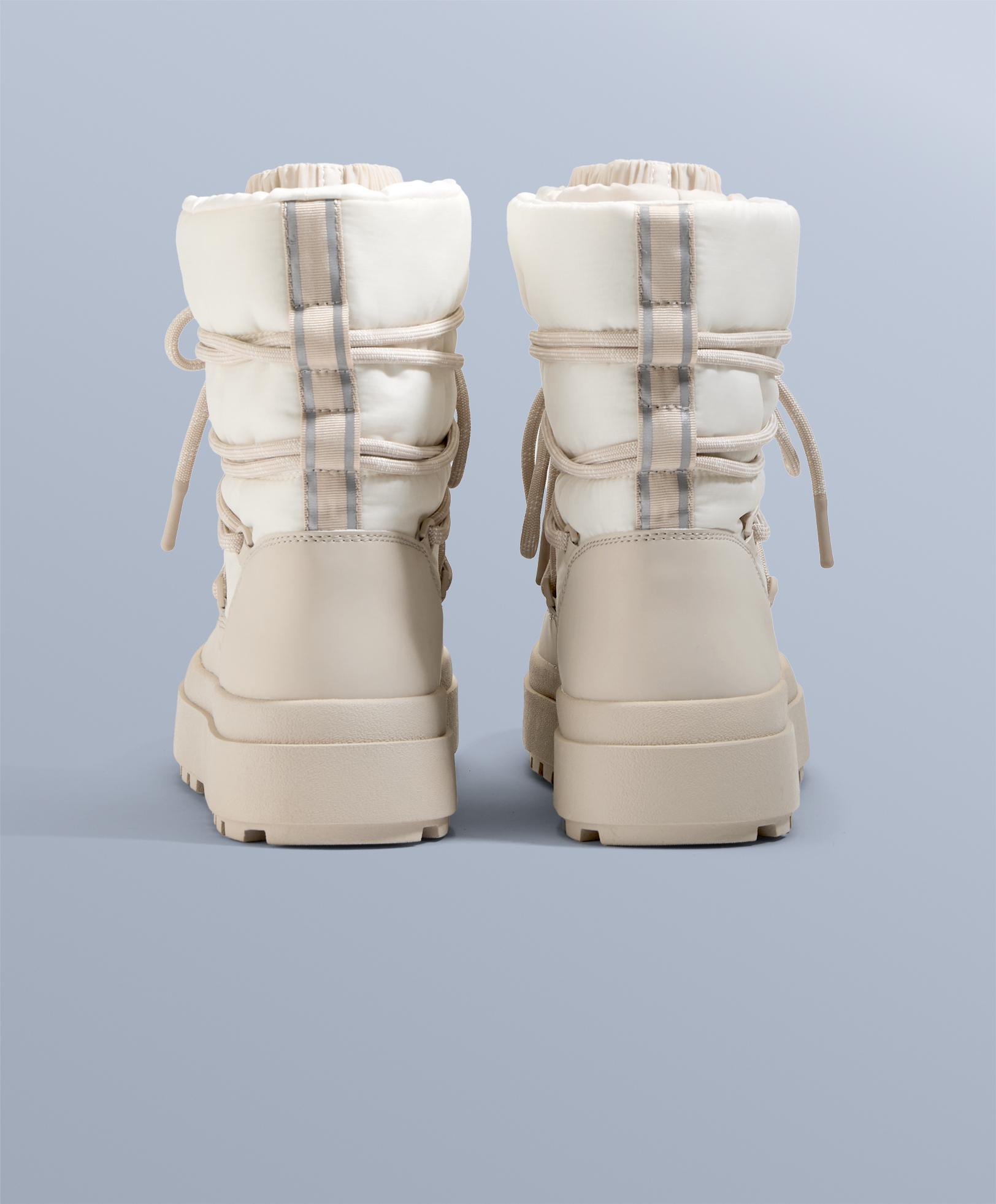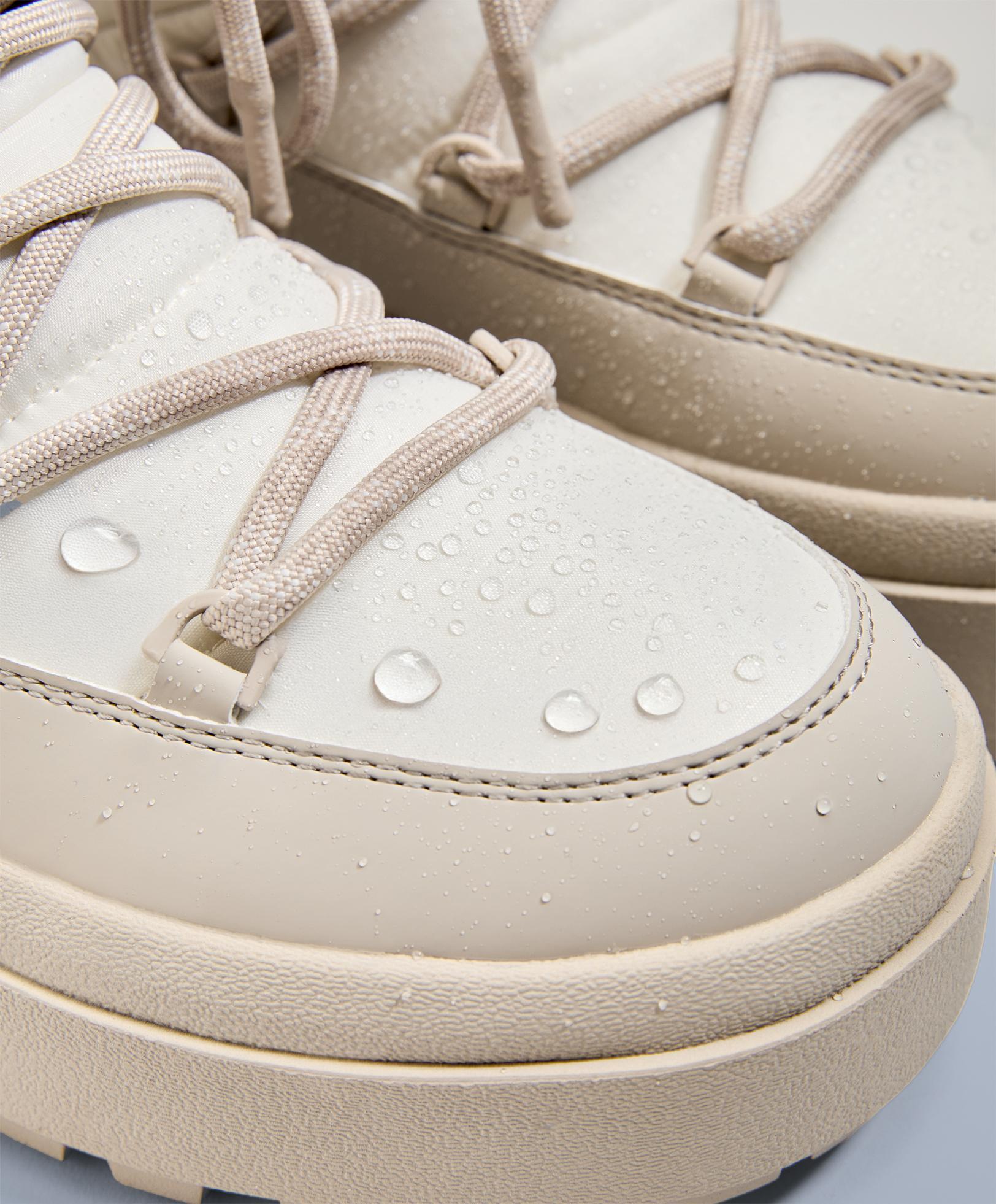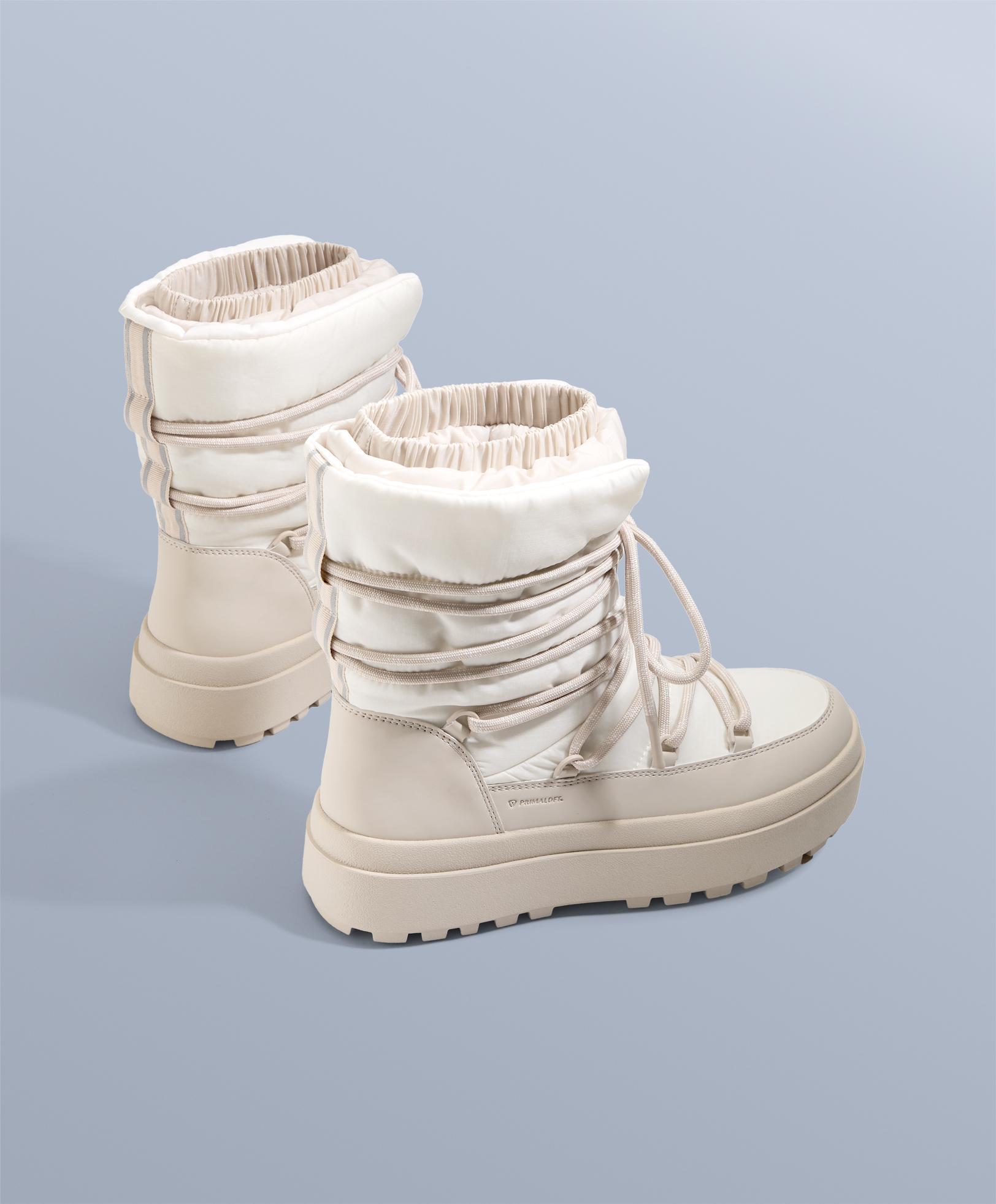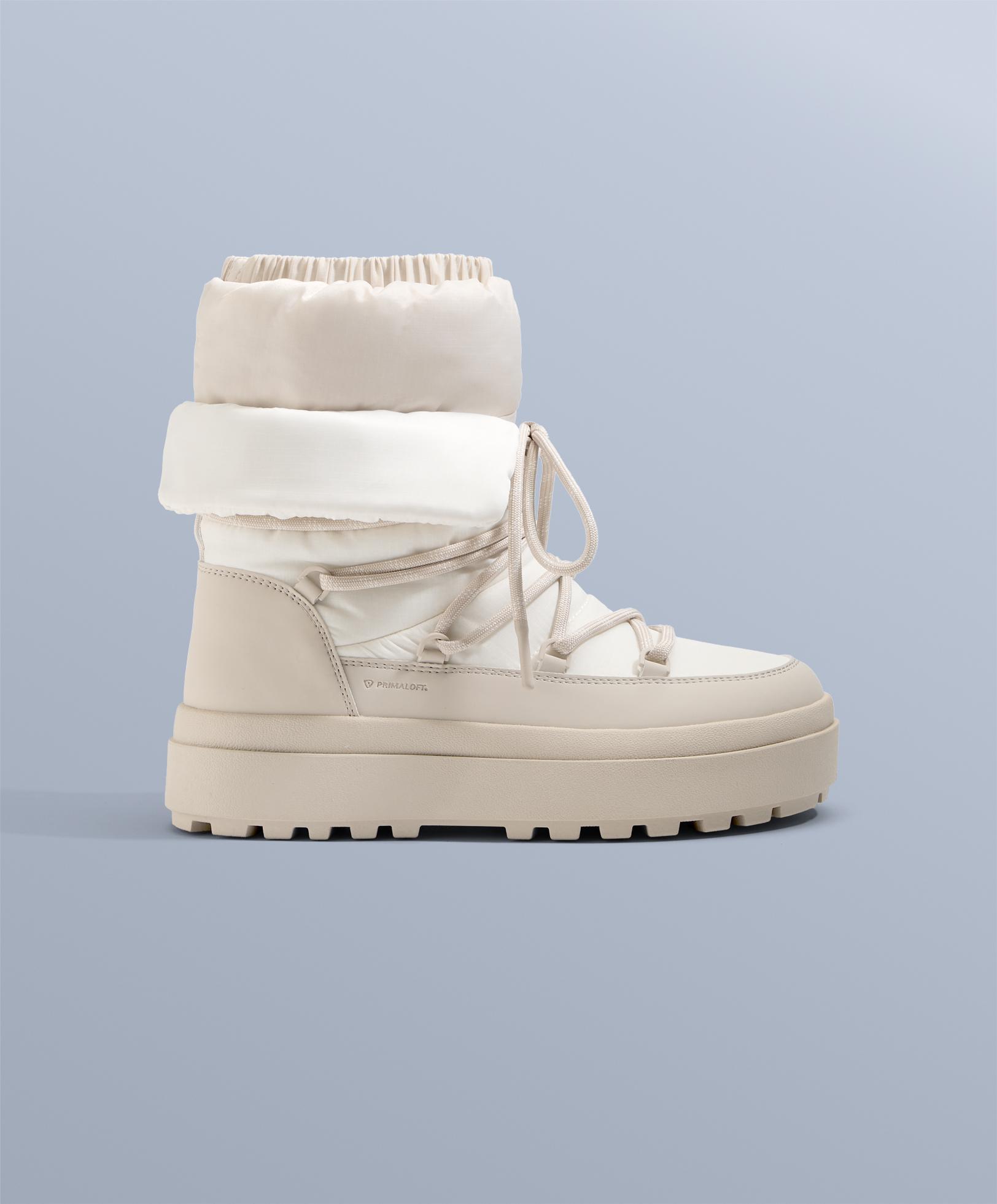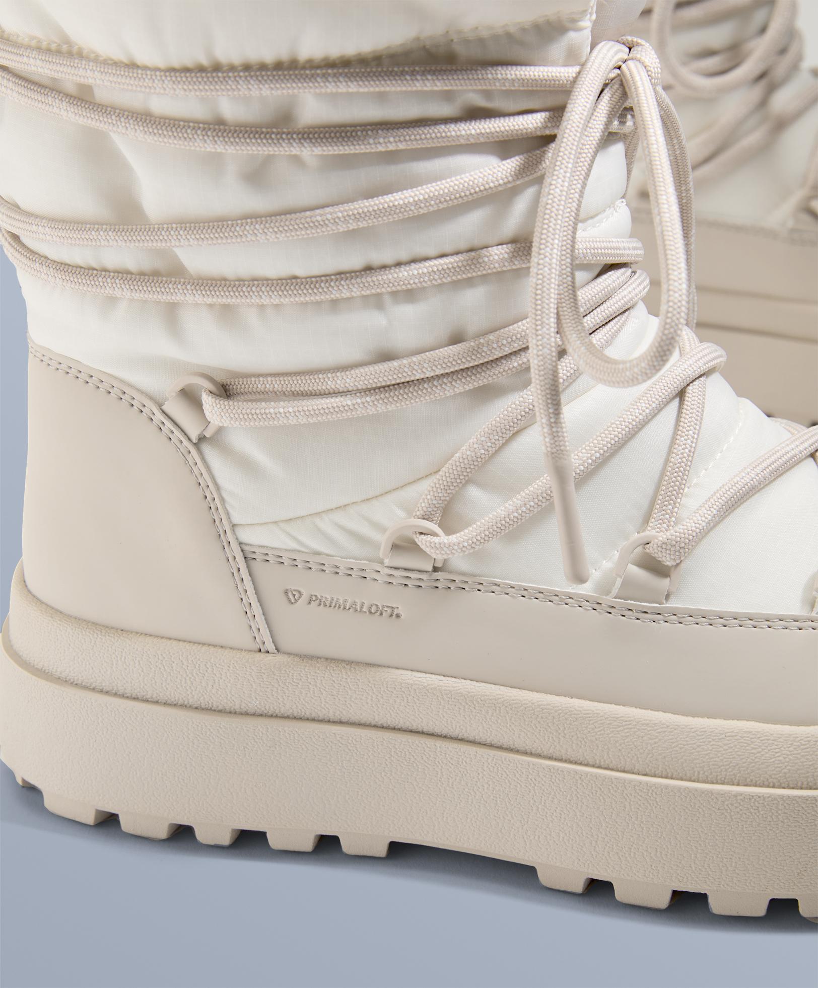 Ботинок с термоизоляцией, протестированной в лаборатории при температуре до -30ºC, гарантирует защиту в экстремально холодных условиях. Водонепроницаемая конструкция, сертифицированная на 15 000 циклов сгибания в воде, сохраняя внутреннюю поверхность сухой. Водоотталкивающее покрытие защищает от поверхностной влаги. Наполнитель Primaloft® Gold. Этот наполнитель легкий, дышащий и обладает высокой теплоизоляцией. Даже во влажном состоянии он сохраняет свои теплоизоляционные свойства, обеспечивая тепло. Разработан для снега, с регулируемой верхней манжетой, ограничивающей попадание снега, и формованной съемной технологичной стелькой для большего комфорта. Изготовлен из легких материалов для оптимизации подвижности и разнонаправленной подошвы с высоким сцеплением, обеспечивающей максимальное сцепление на скользких поверхностях. Высота подошвы: 3 см.