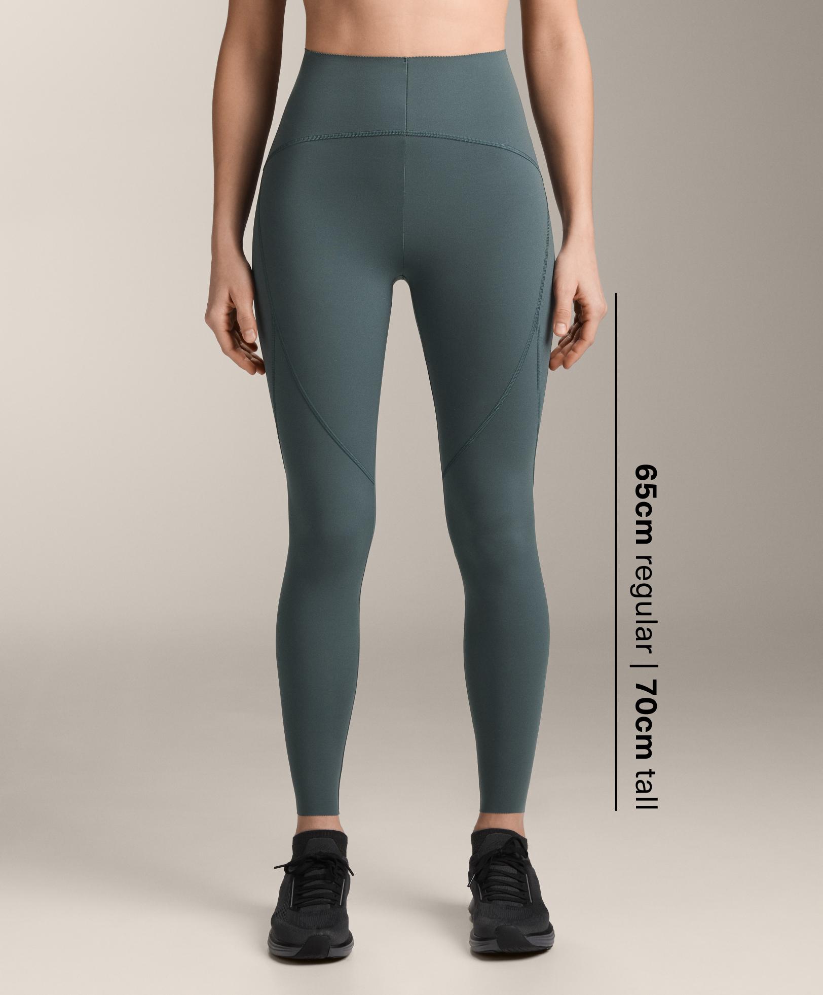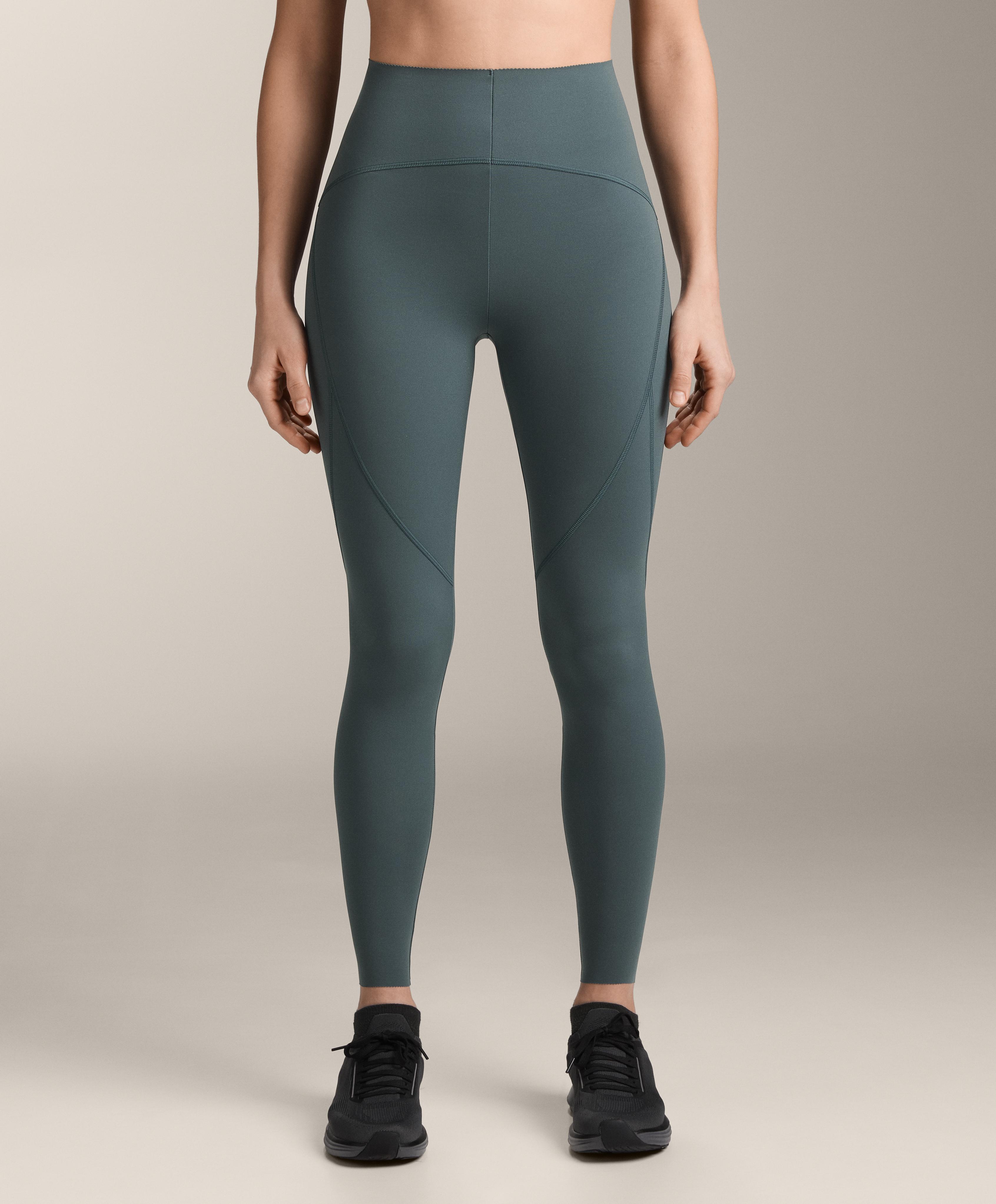 Компрессионные леггинсы с высокой талией и длиной до щиколотки, обеспечивающие поддержку во время самых интенсивных тренировок, с силиконовым поясом для более плоского силуэта. Ткань, имитирующая корректирующее белье, подчеркивает фигуру и моделирует ее, не стесняя движений. Дышащая и очень прочная ткань.
