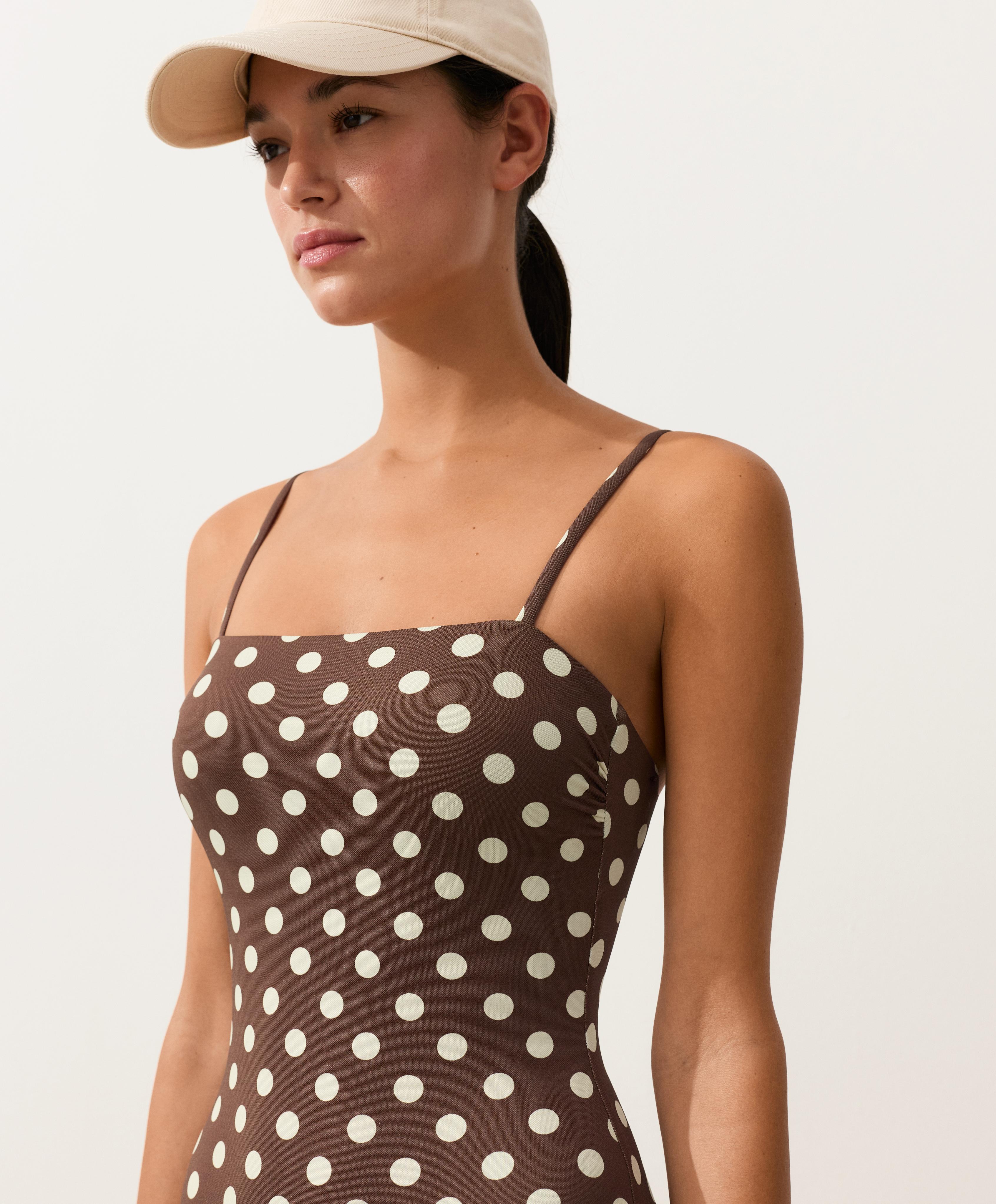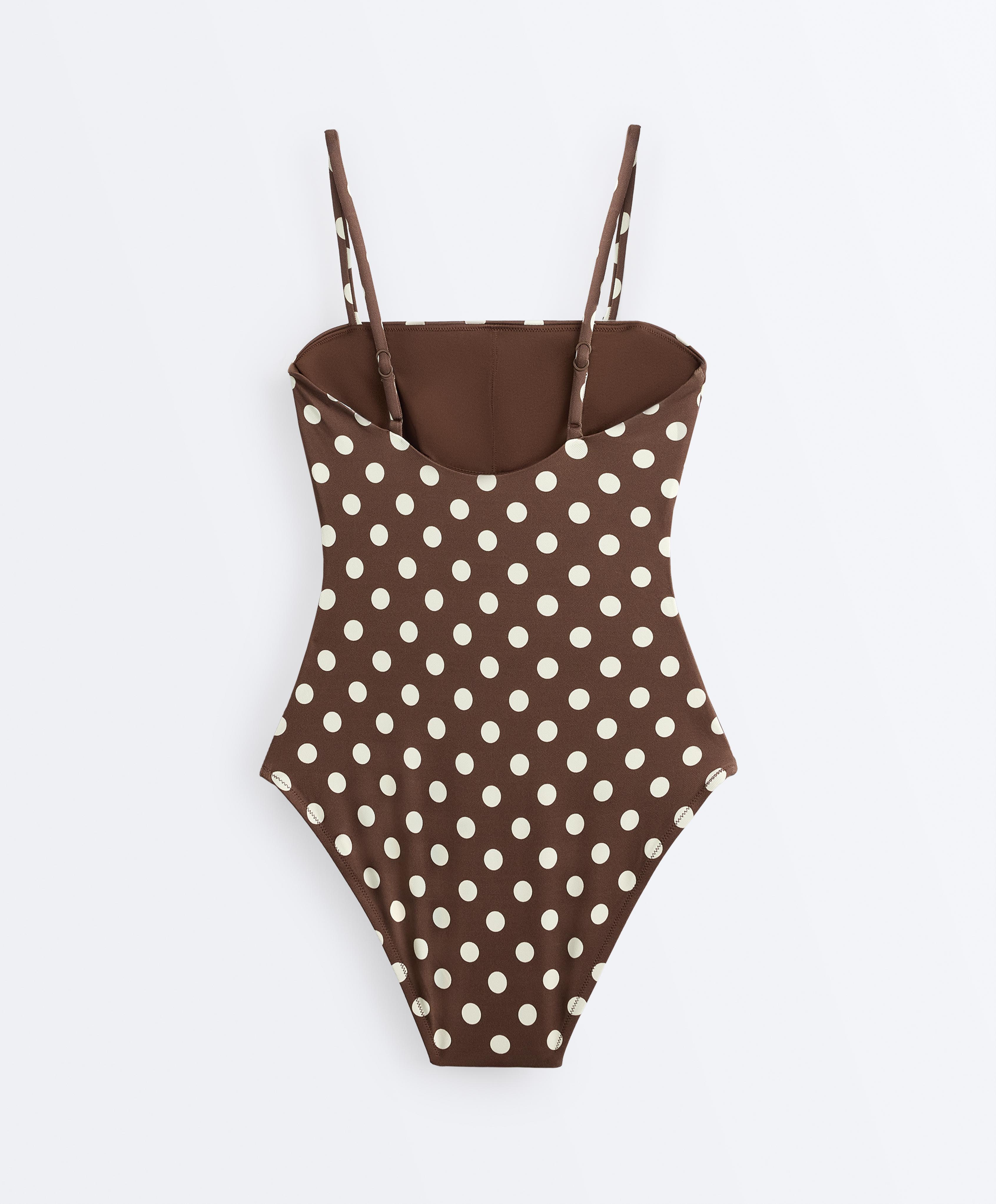 OYSHO Купальник-бандо из пике в горошек, коричневый