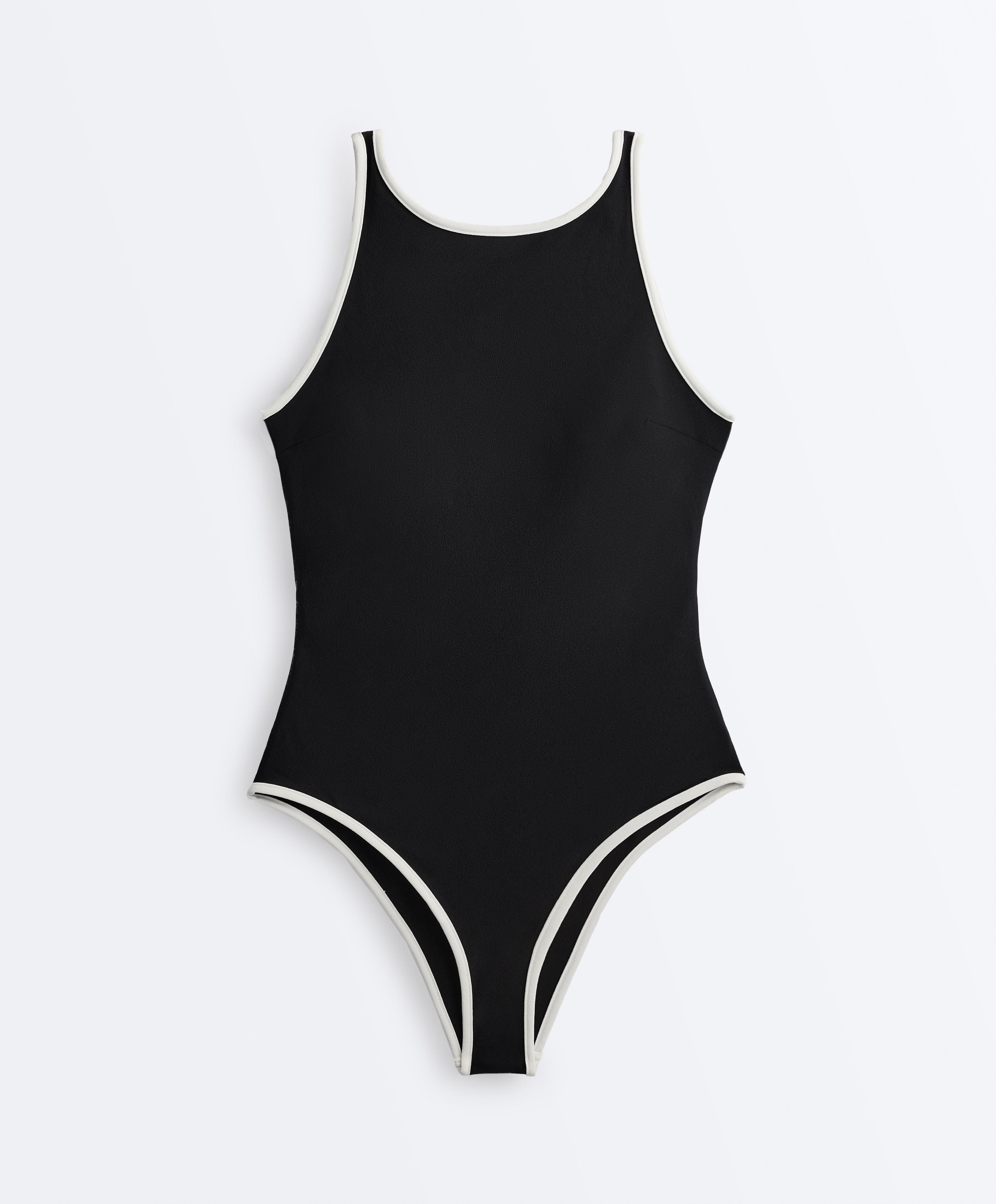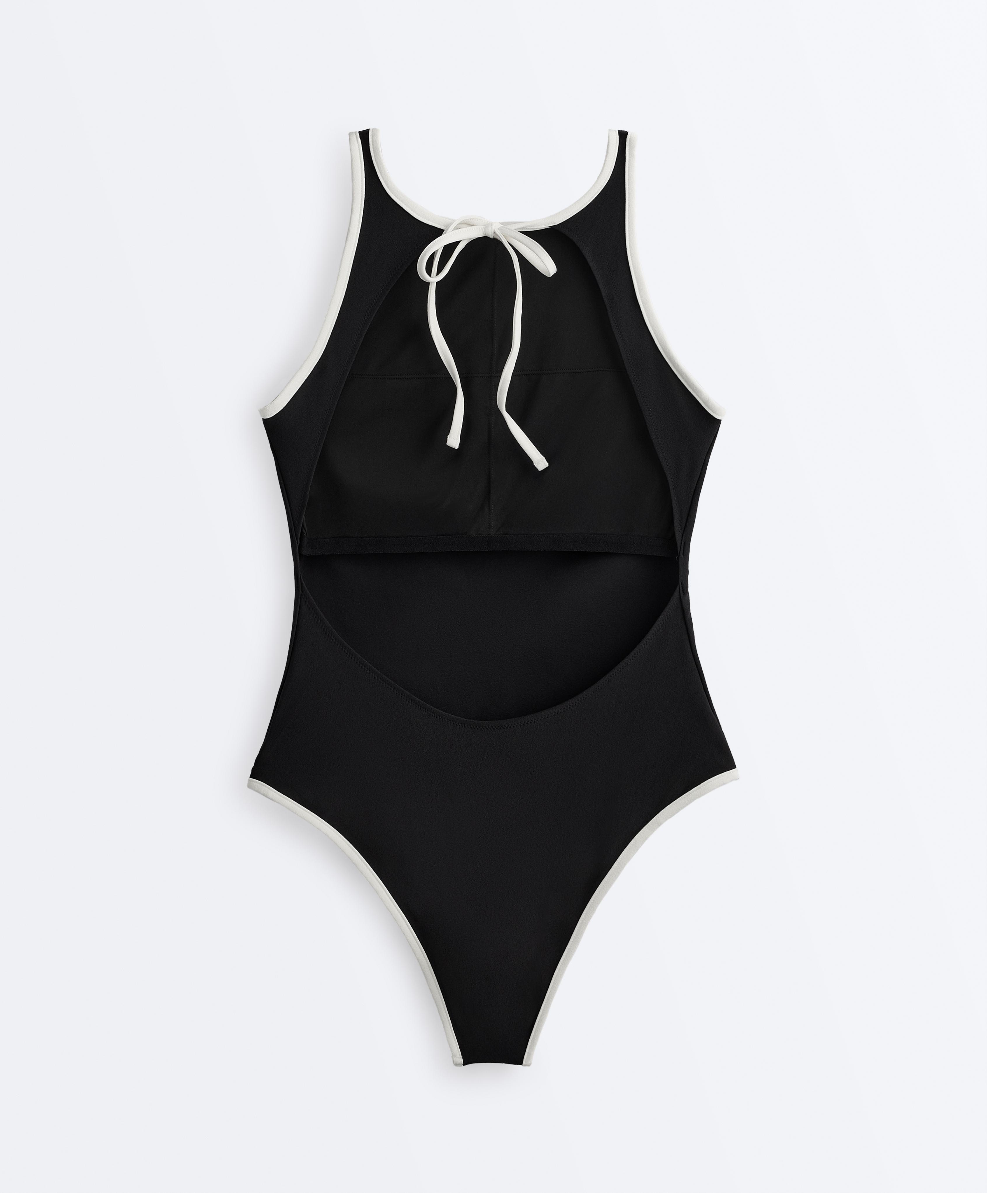 OYSHO Купальник халтер с контрастной окантовкой, черный