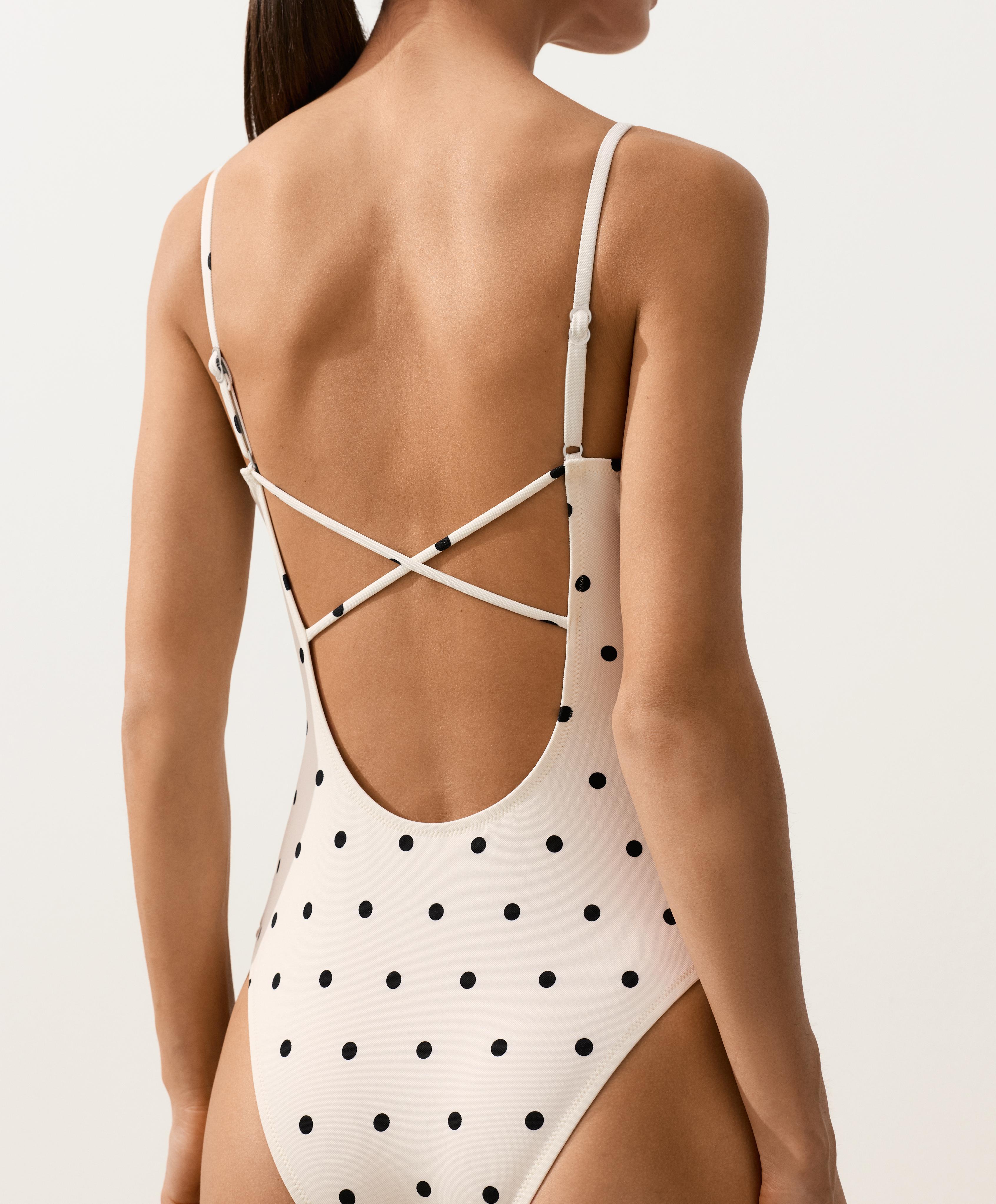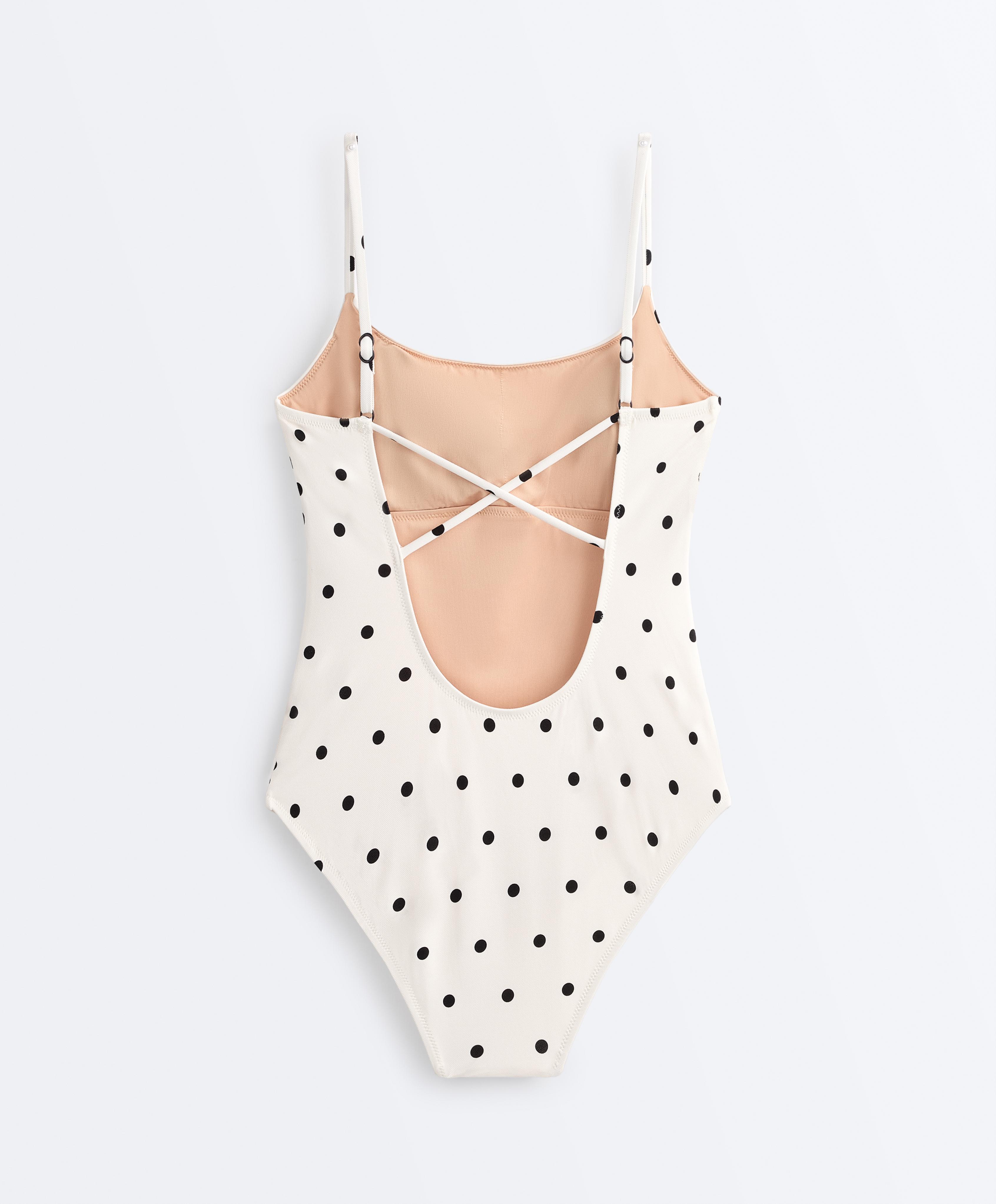 OYSHO Купальник пике в горошек с треугольными чашками, светлый экрю
