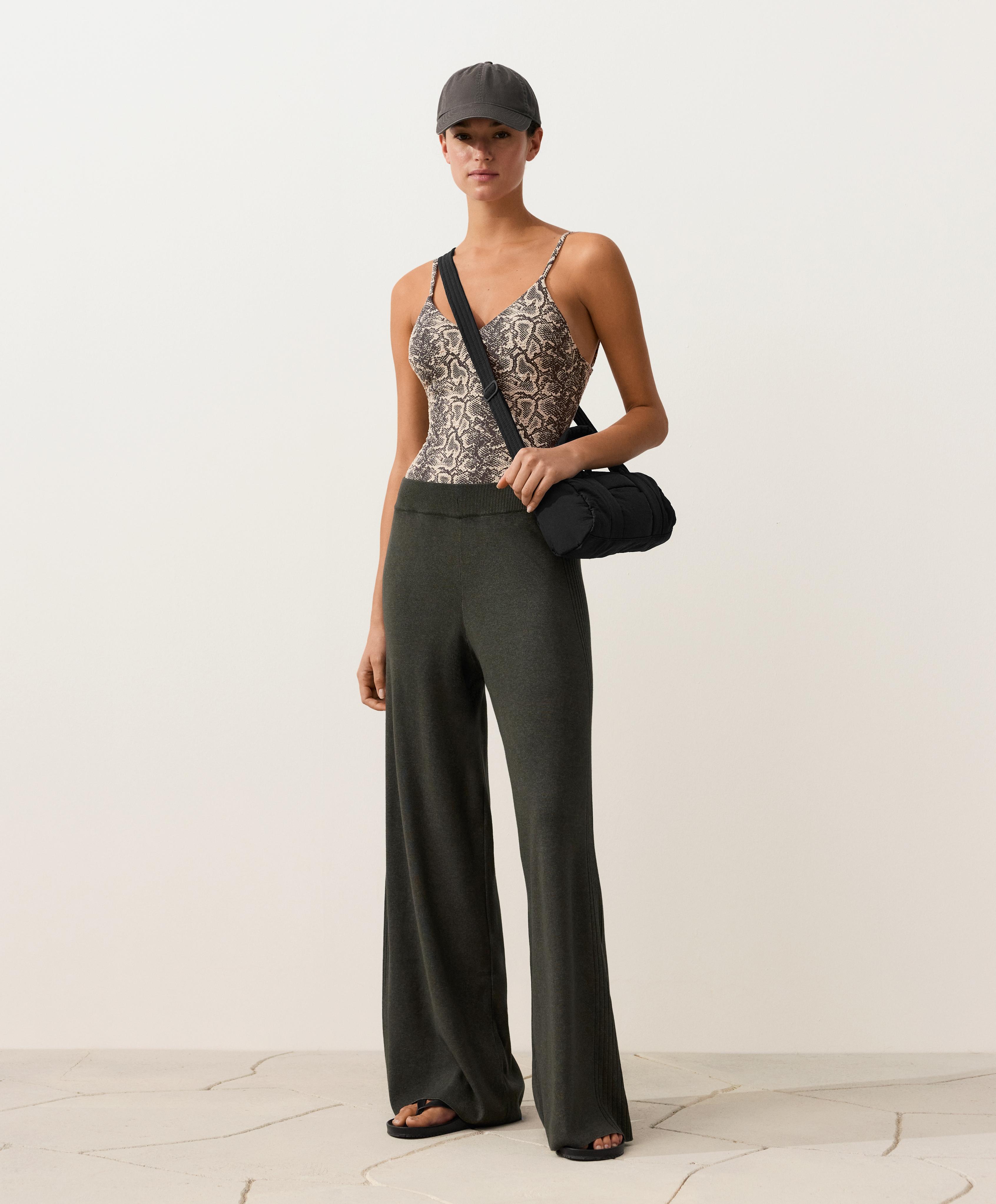 OYSHO Купальник с анималистическим принтом, черный
