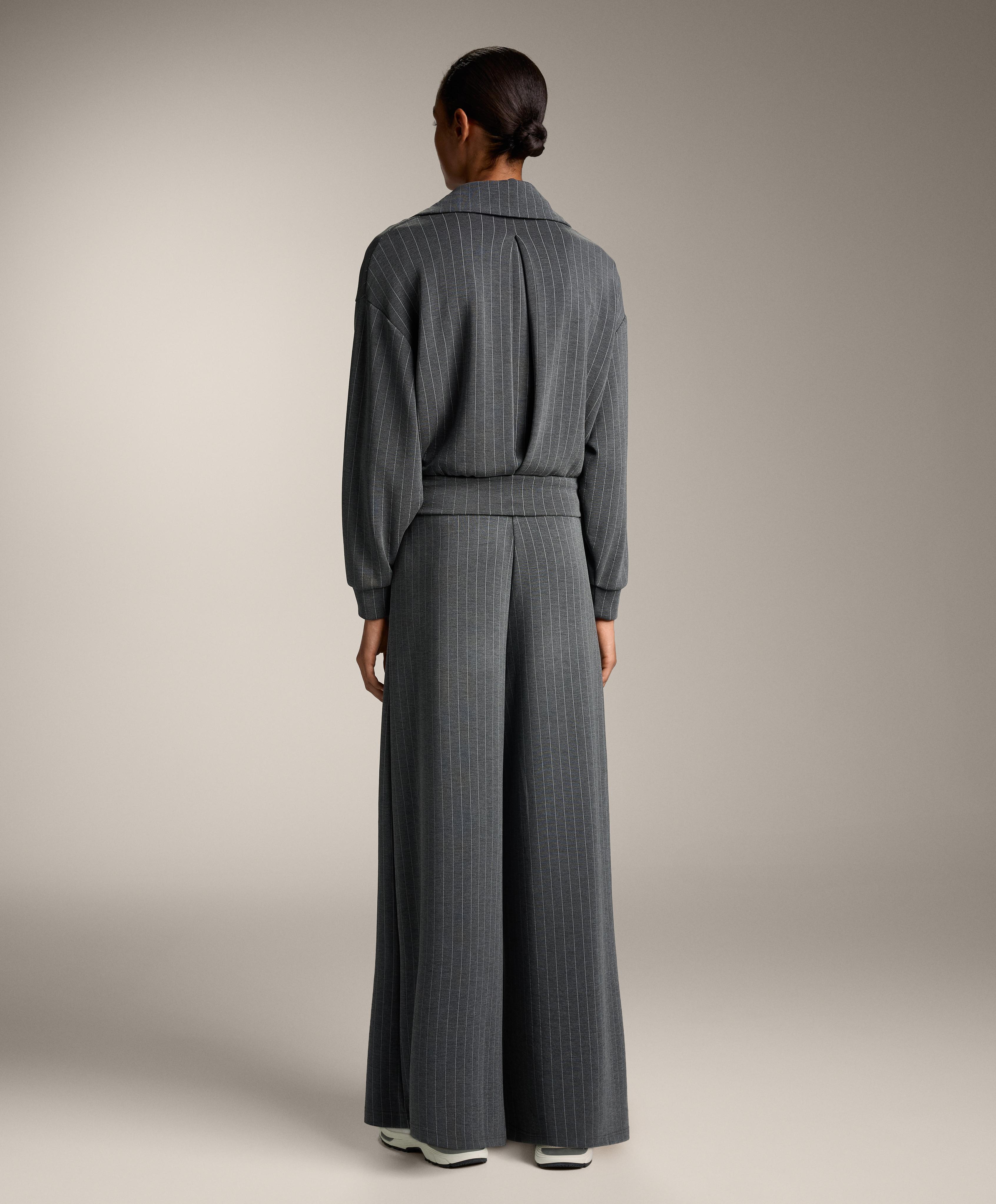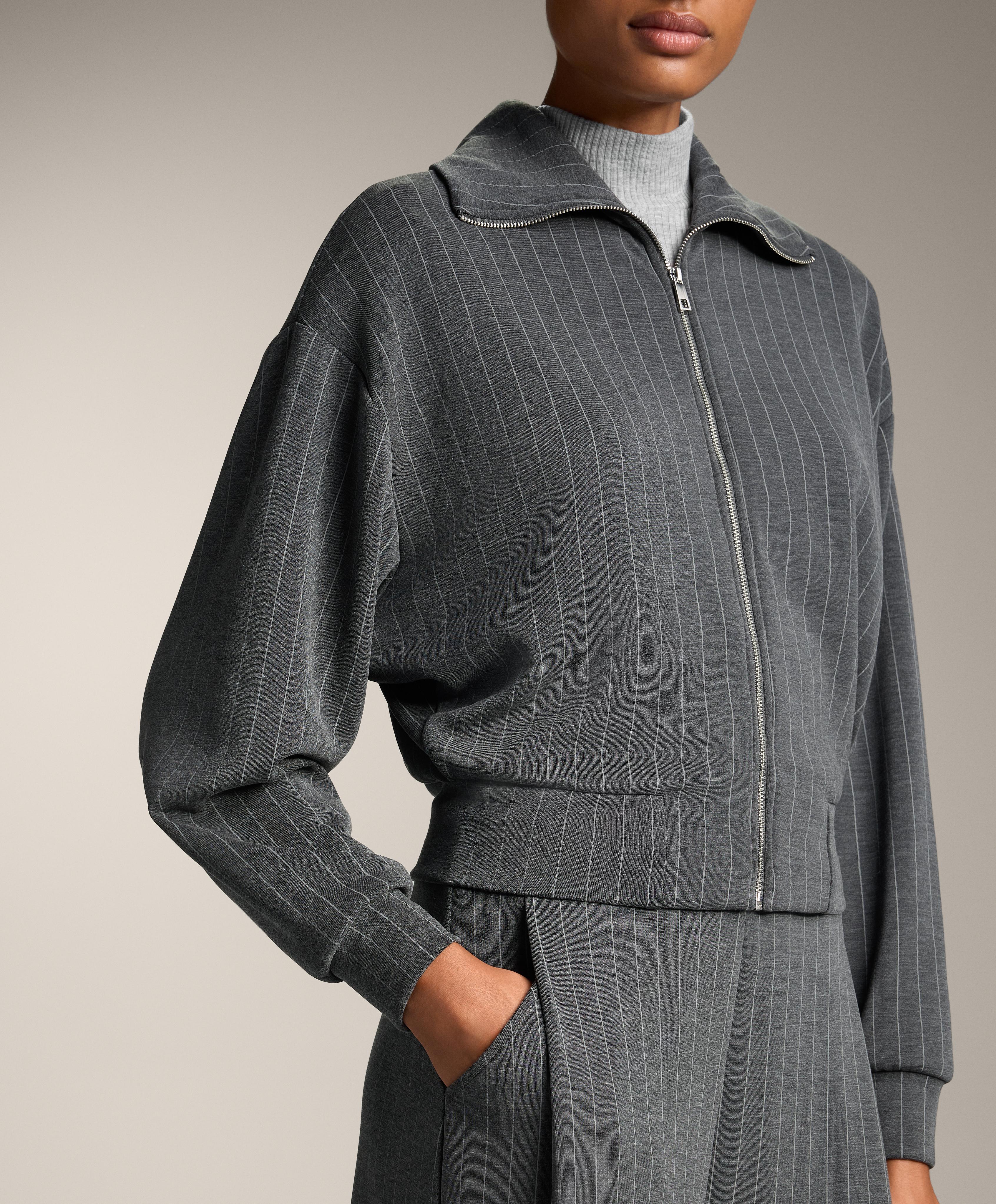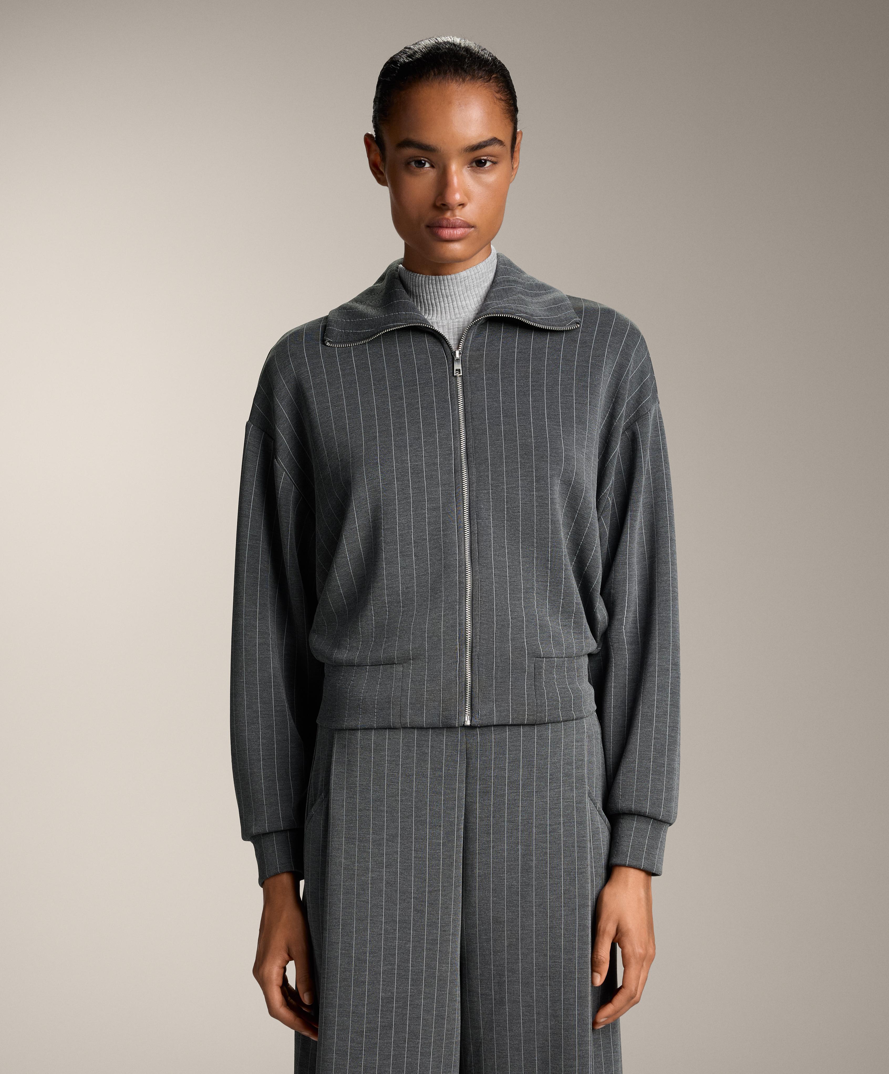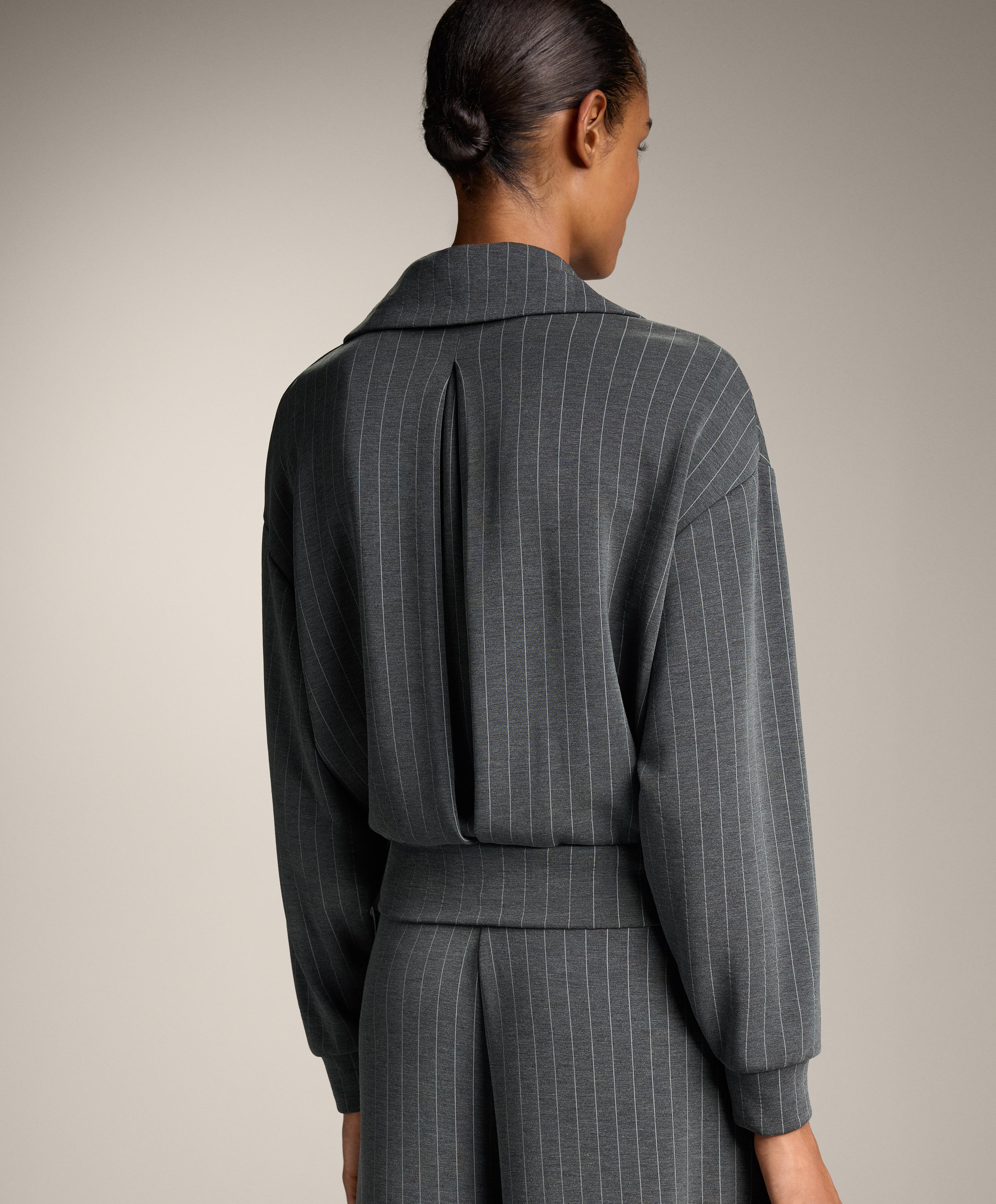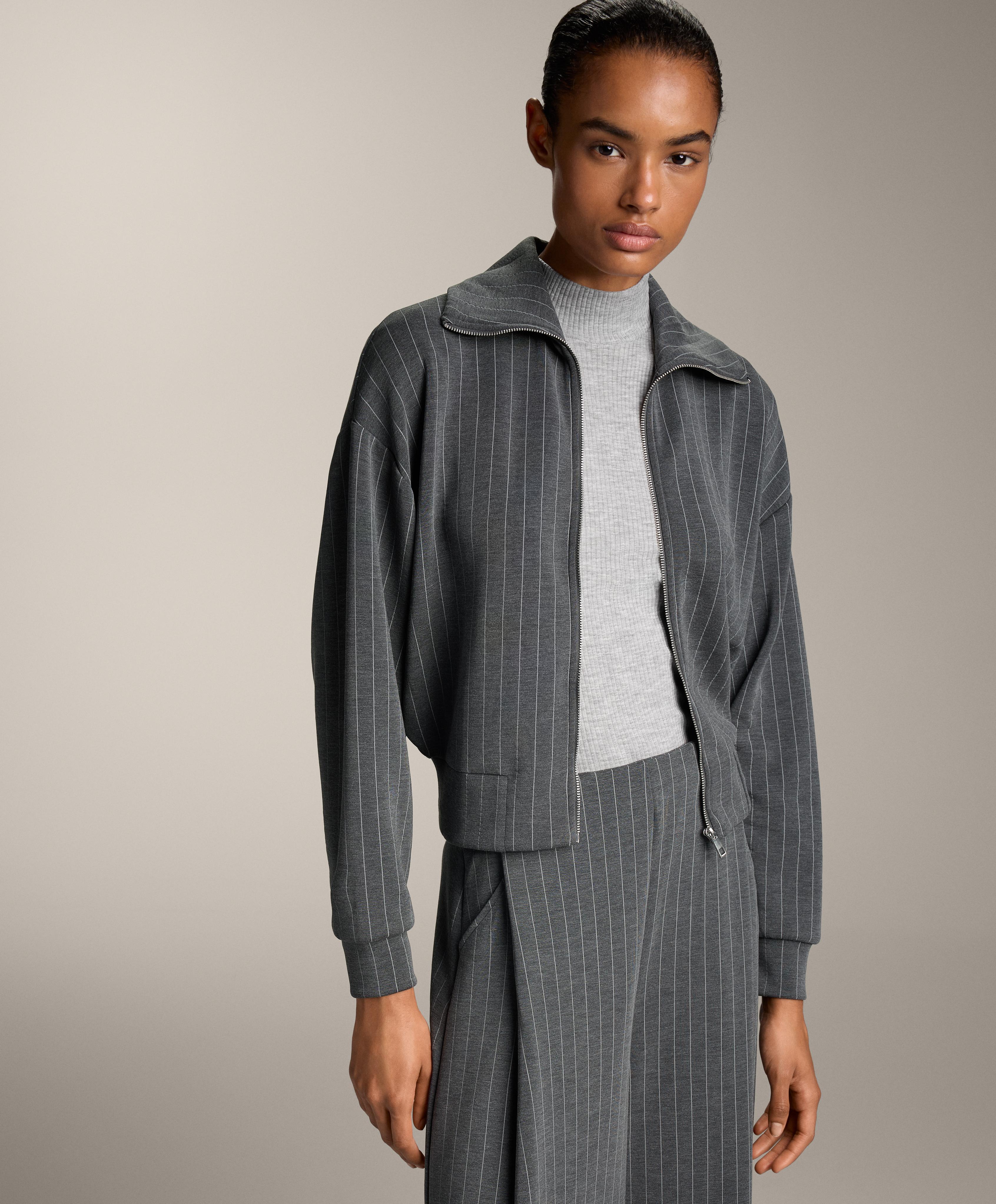 Куртка boxy в полоску с застежкой-молнией спереди. Складка сзади и манжеты на рукавах. Дышащая ткань из модала, очень мягкая на ощупь.
