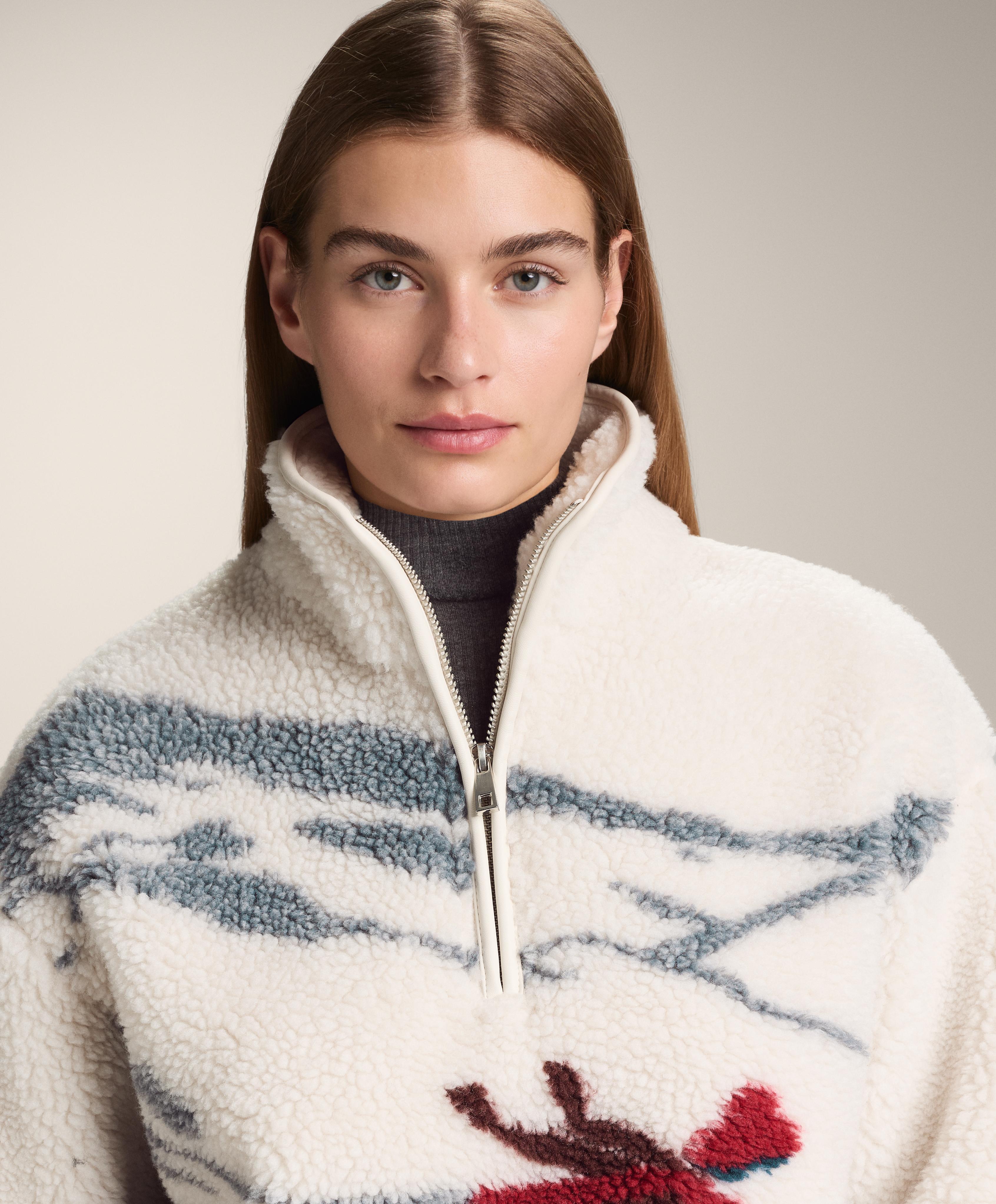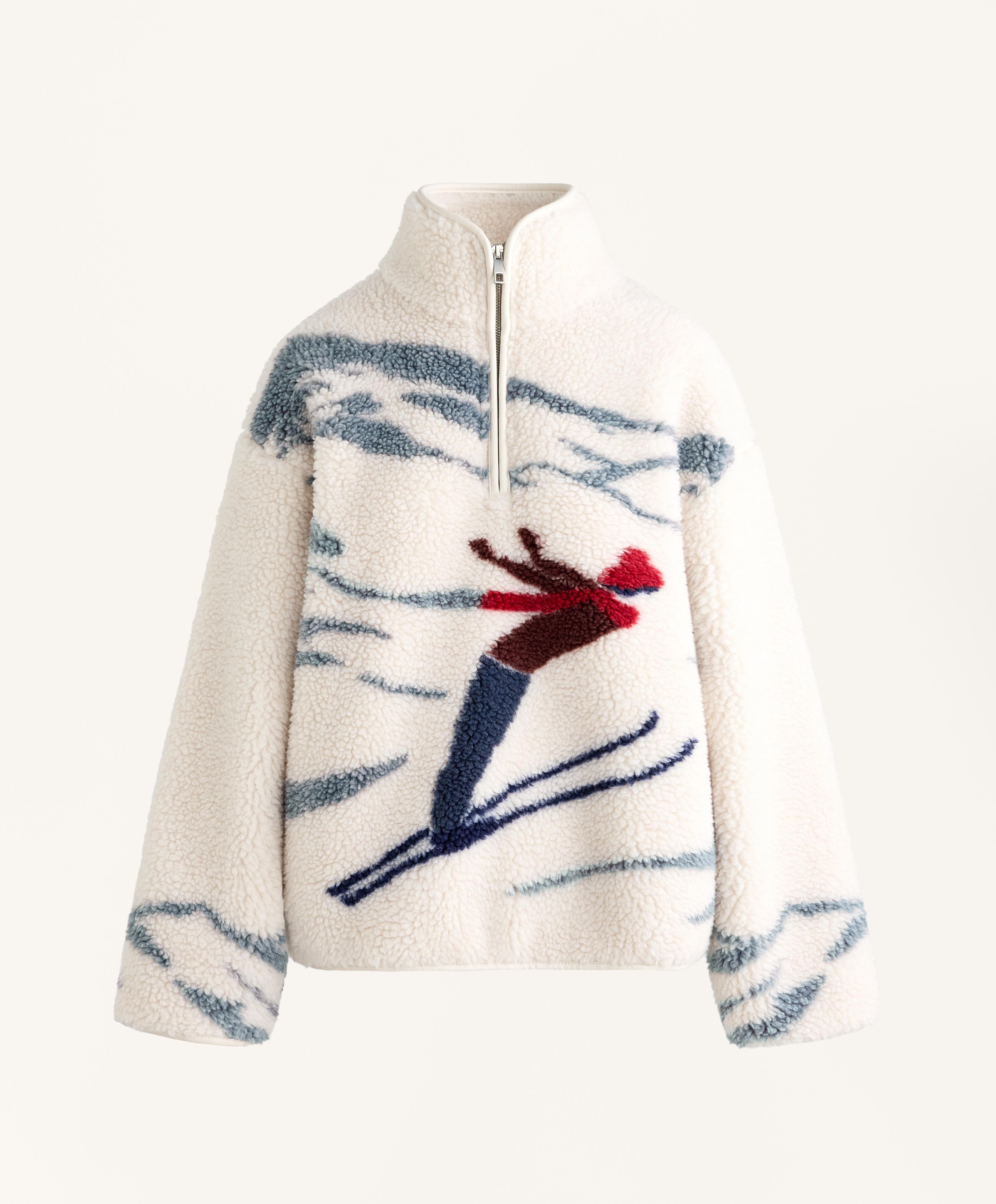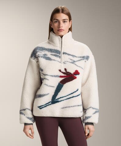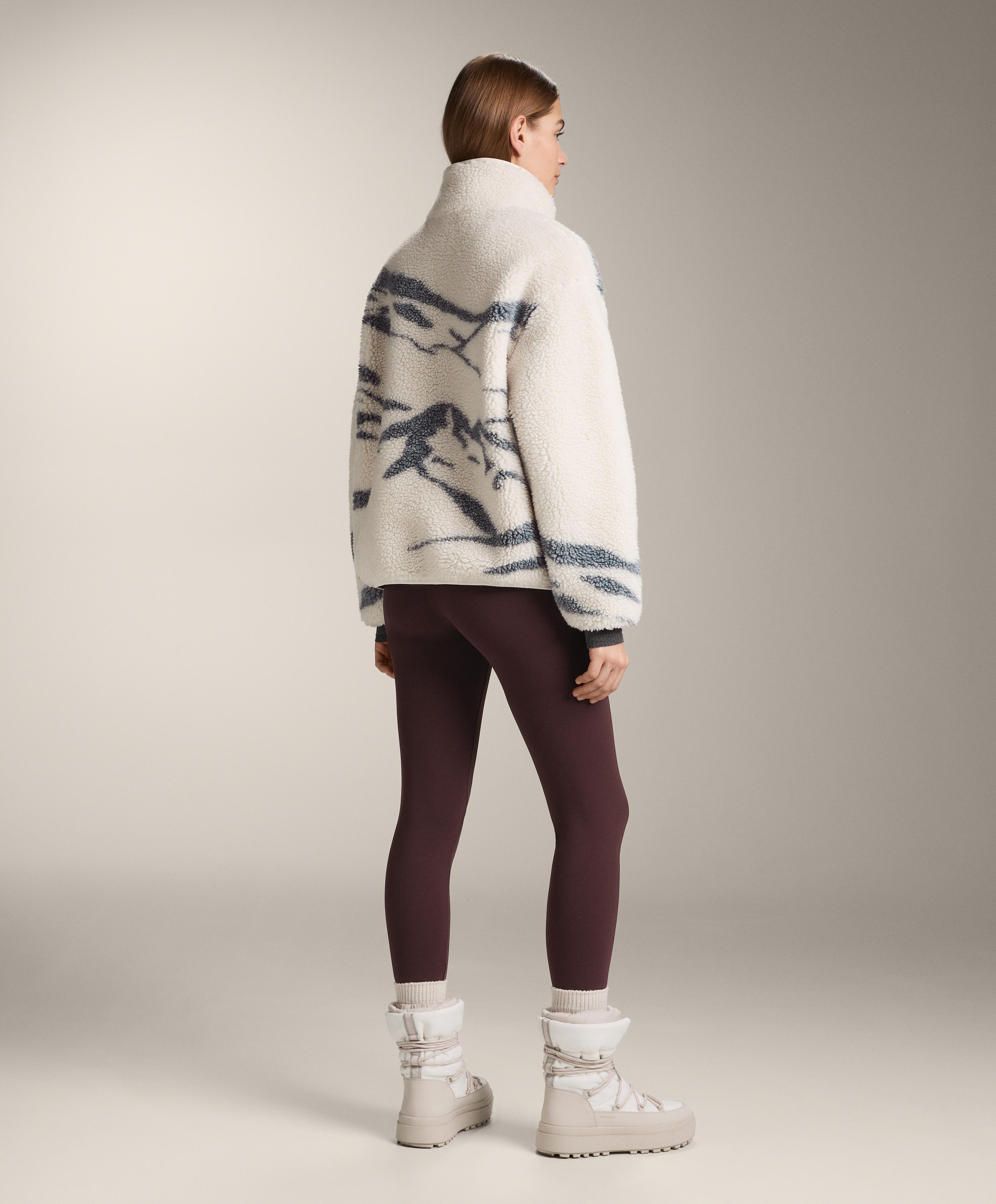 Куртка из искусственной овчины для лыжников с флисовой подкладкой. Застежка-молния спереди до середины.