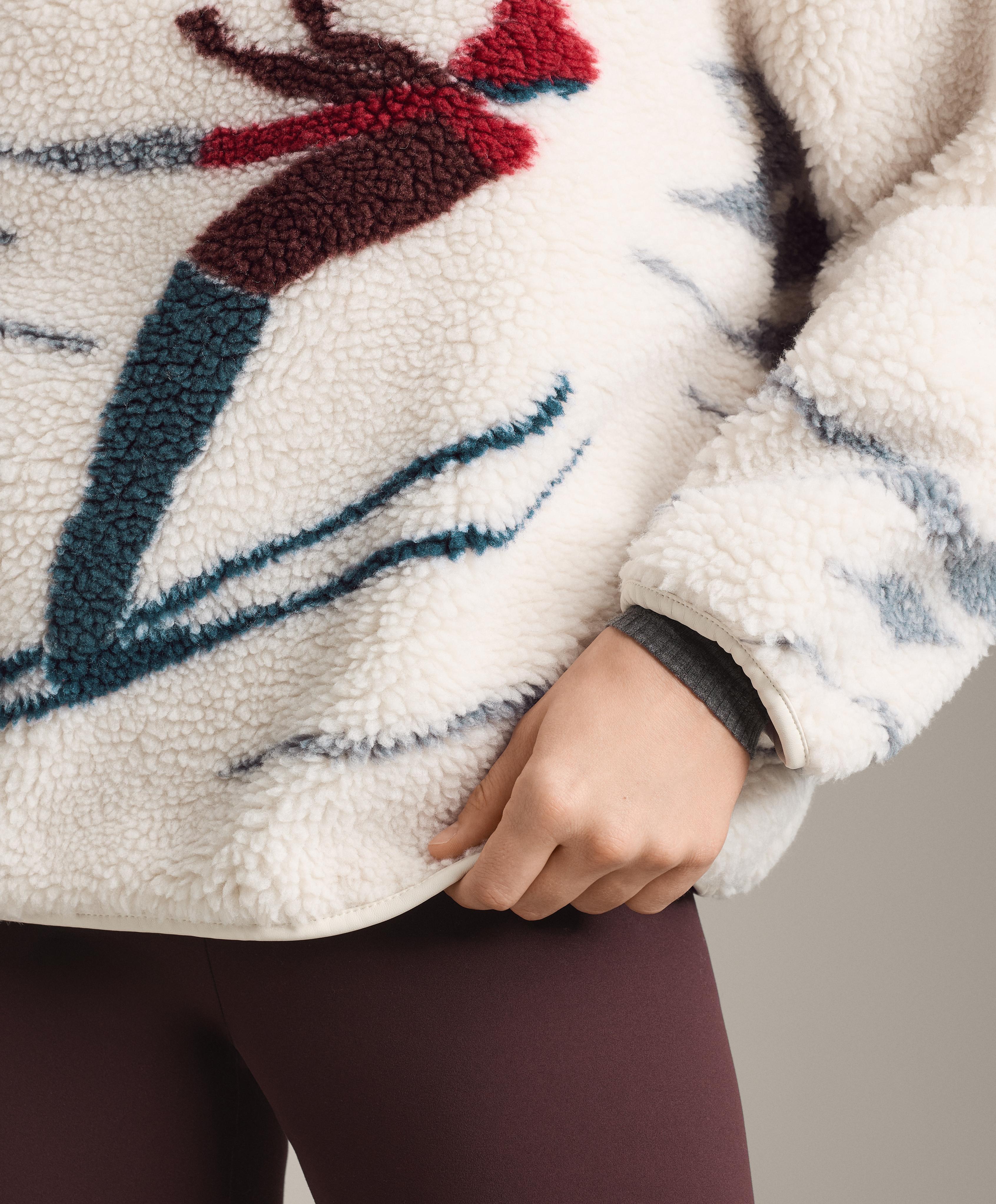 Oysho Куртка из искусственной овчины для лыжников с короткой молнией, экрю
